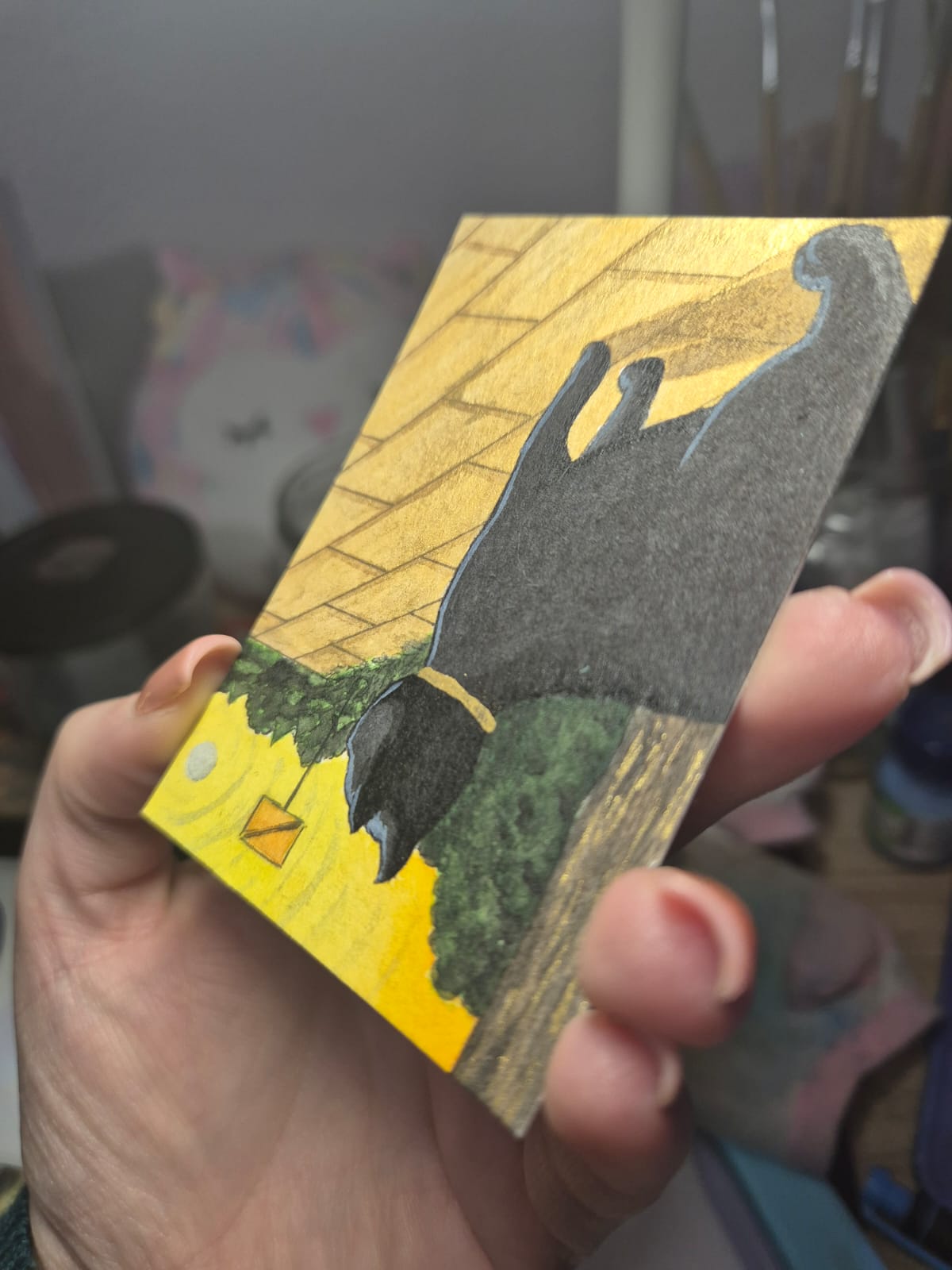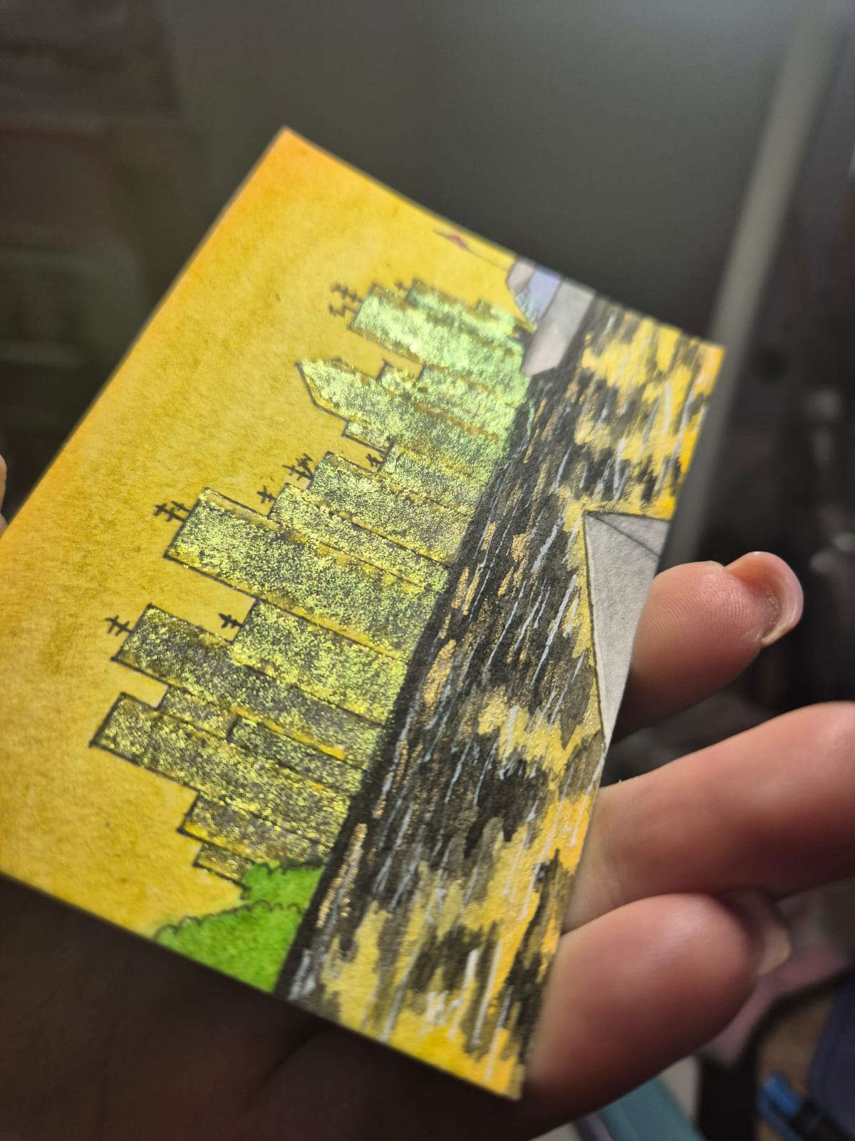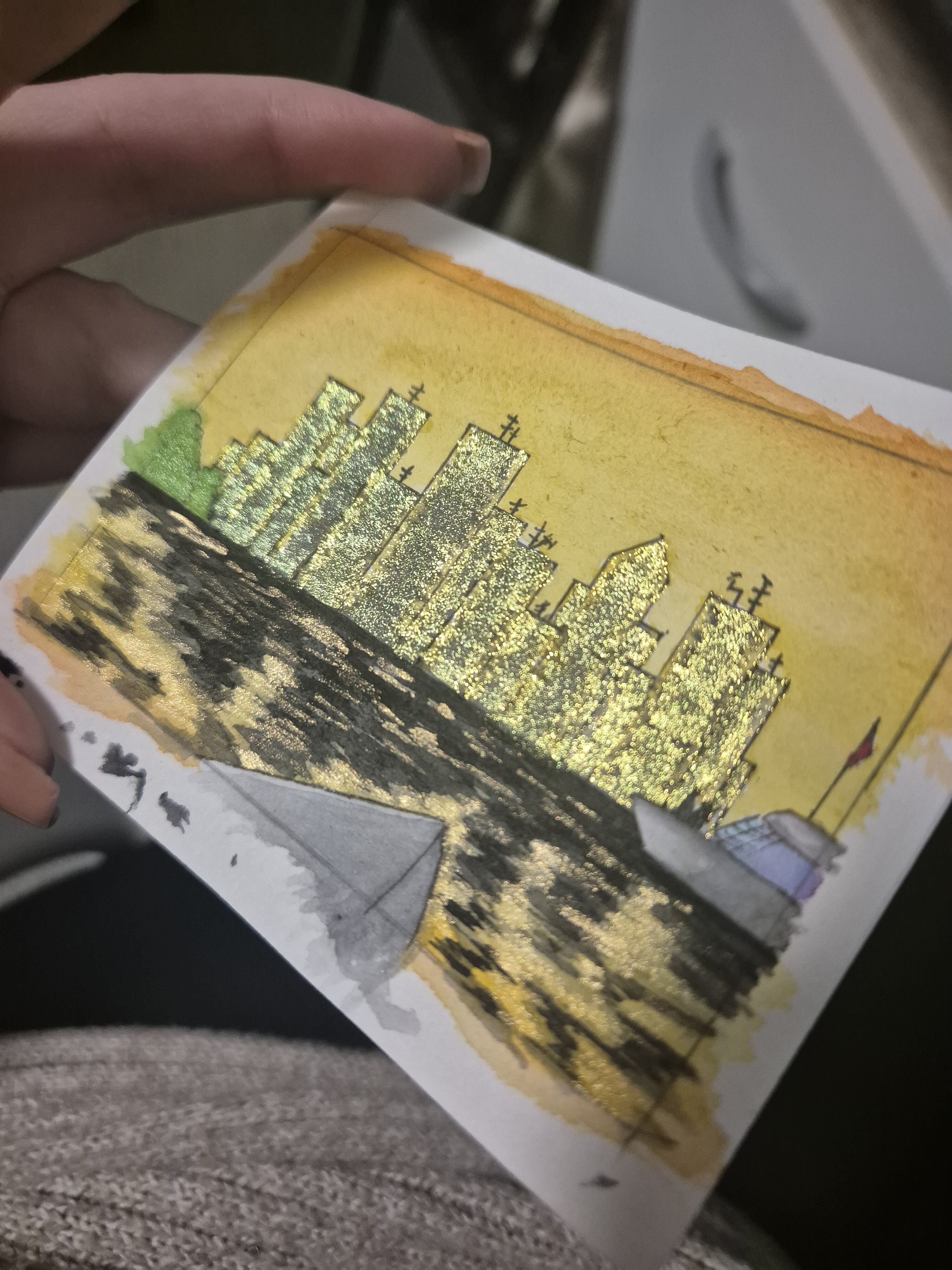 Zwischenstand meiner zweiten Karte. Eigentlich wollte ich ja eine Reihe mit eher nicht so glamourösen Szenen machen, aber ich dachte mir dass sich das Thema total für sowas eher grafisches anbietet. Und da hab ich mehr Spaß dran als mit dem Lineal ran zu gehen.