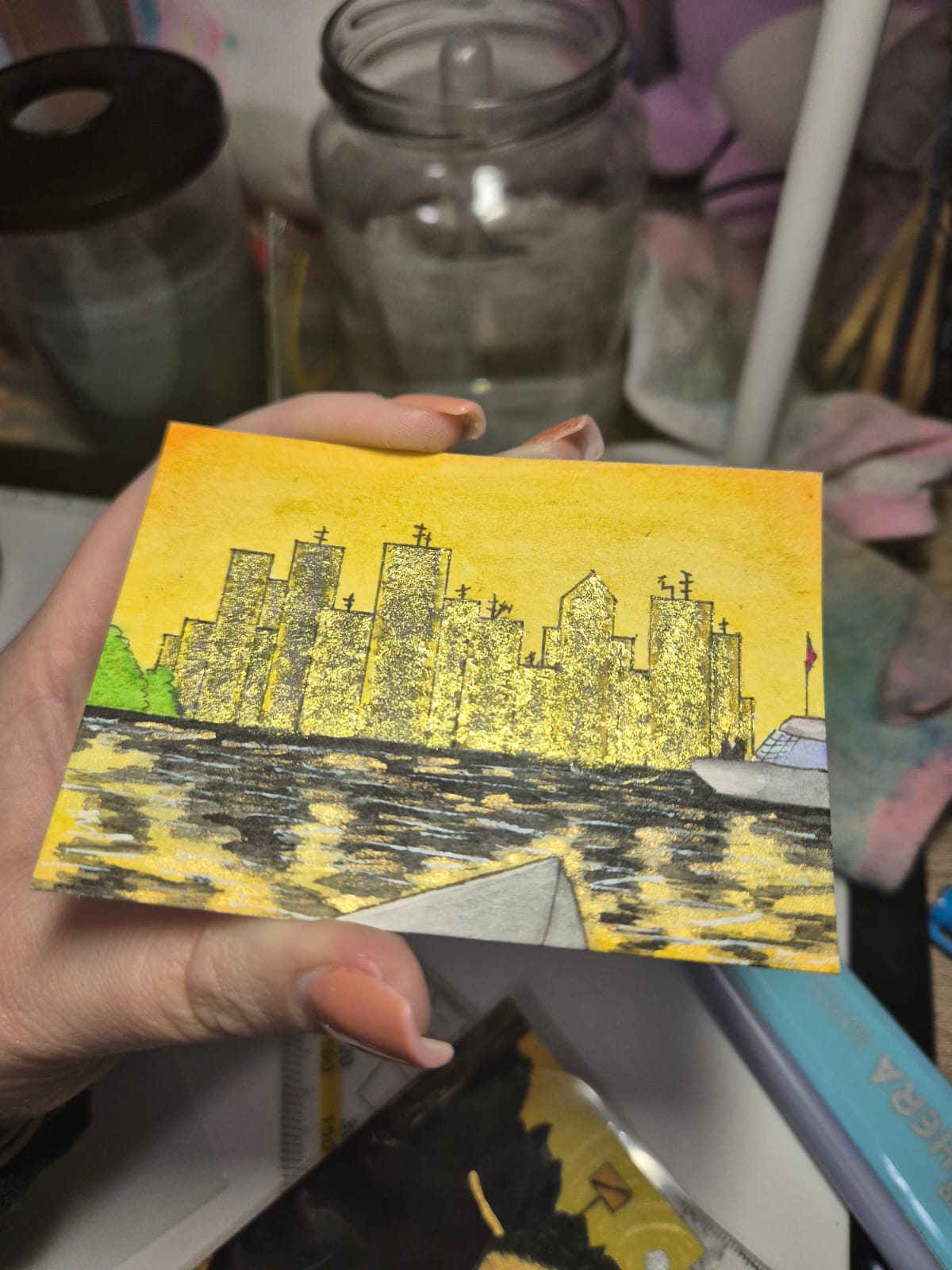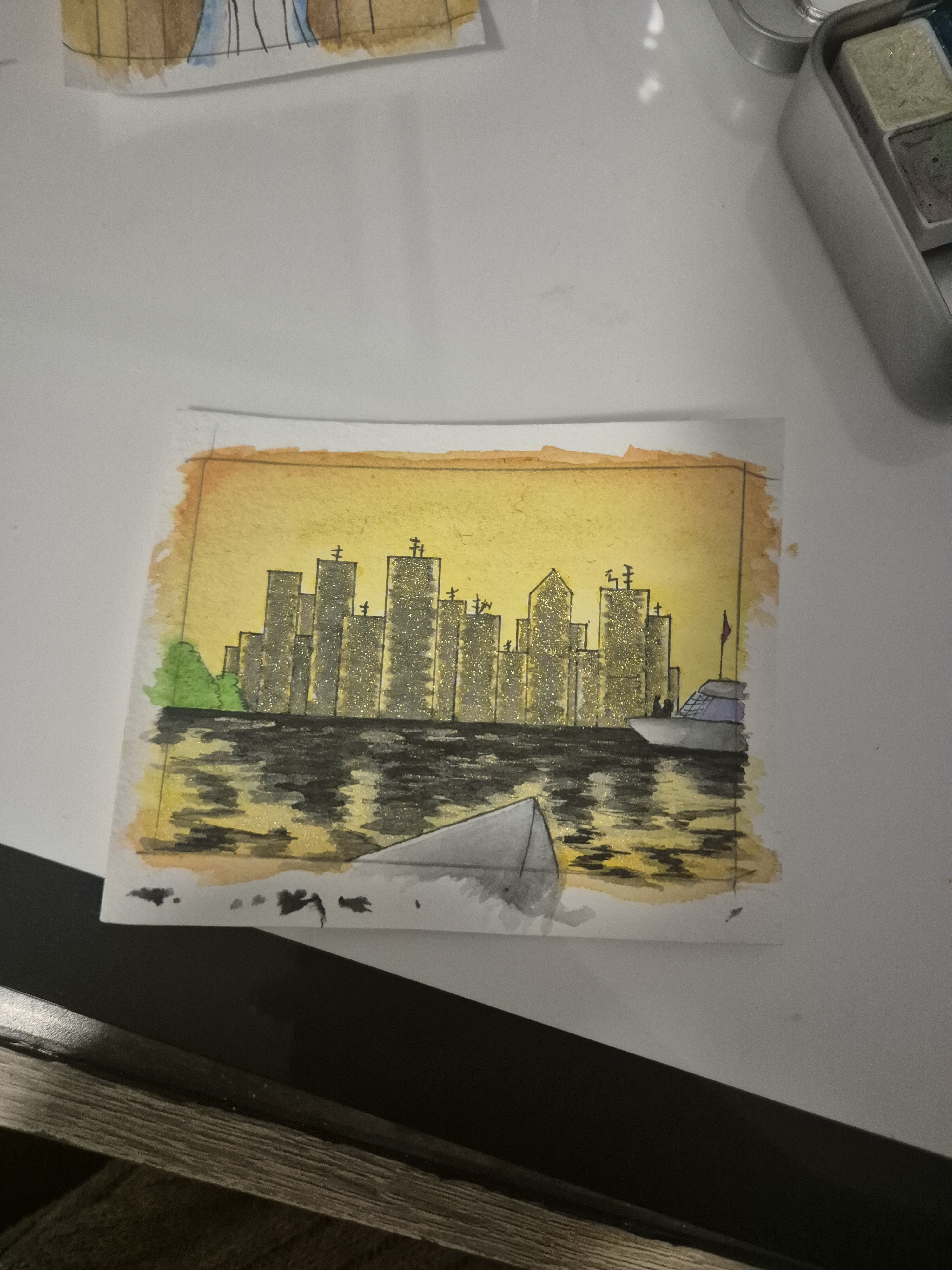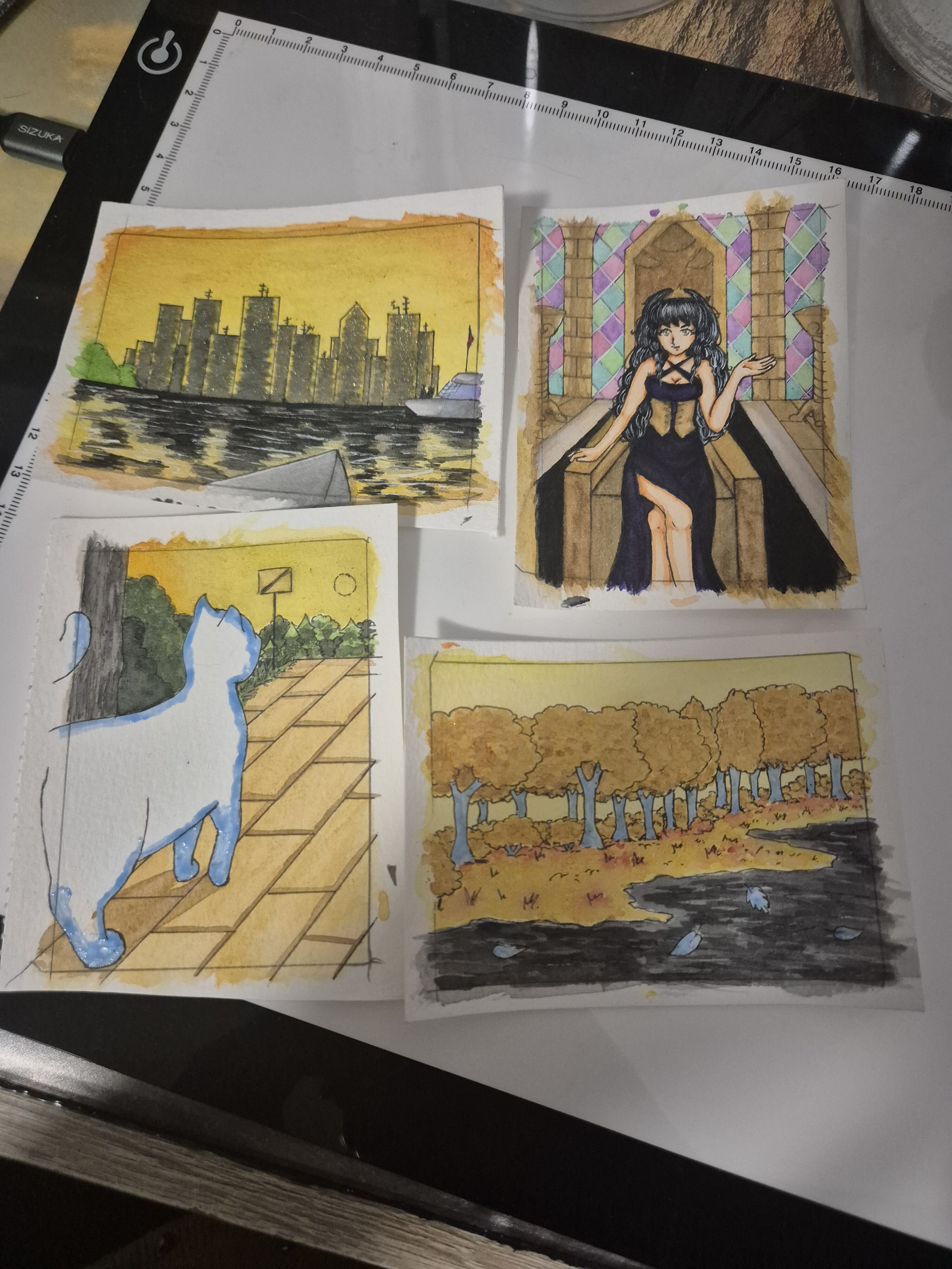 Zwischenstand meiner zweiten Karte. Eigentlich wollte ich ja eine Reihe mit eher nicht so glamourösen Szenen machen, aber ich dachte mir dass sich das Thema total für sowas eher grafisches anbietet. Und da hab ich mehr Spaß dran als mit dem Lineal ran zu gehen.