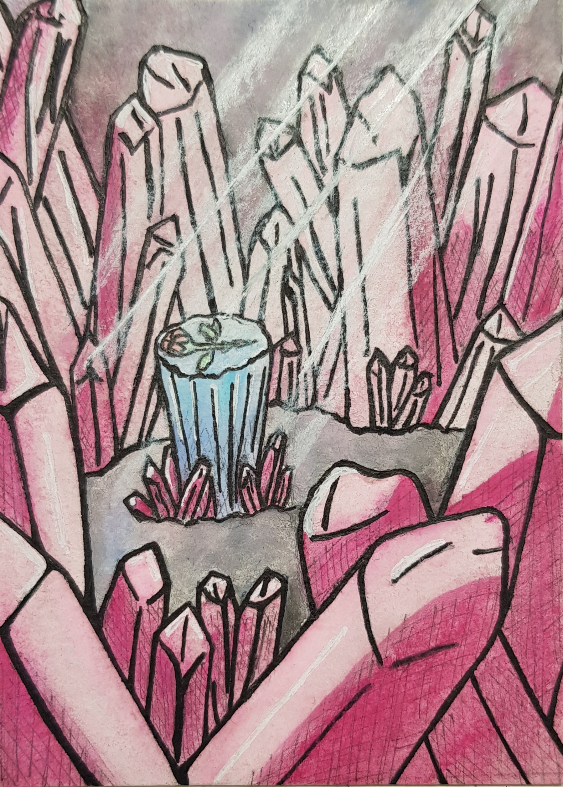 Vielen Dank für dein Feedback. Ich Versuche mal die Linien bei den Kristallen besser auszuarbeiten und sie noch etwas sauberer zu gestalten. Beim Zentaur ist das letzte Wort Nass. Er steht quasi vorne in einem Fluss, dessen Wasser durch den Sturm aufgeschäumt wird. Das Gras siehst du hinten unter den Tannen. Die Idee mit den Blättern finde ich super und werde das noch mit einbauen.