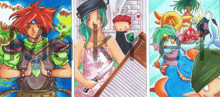 - Karte zur Hälfte fertig :) Musste die Skizzen echt verwerfen und nochmal komplett von vorne anfangen. Das erste Motiv ist aber trotzdem zu Secret of Mana, allerdings kein Mensch :'D Markus wollte halt nicht, der Sack OTL