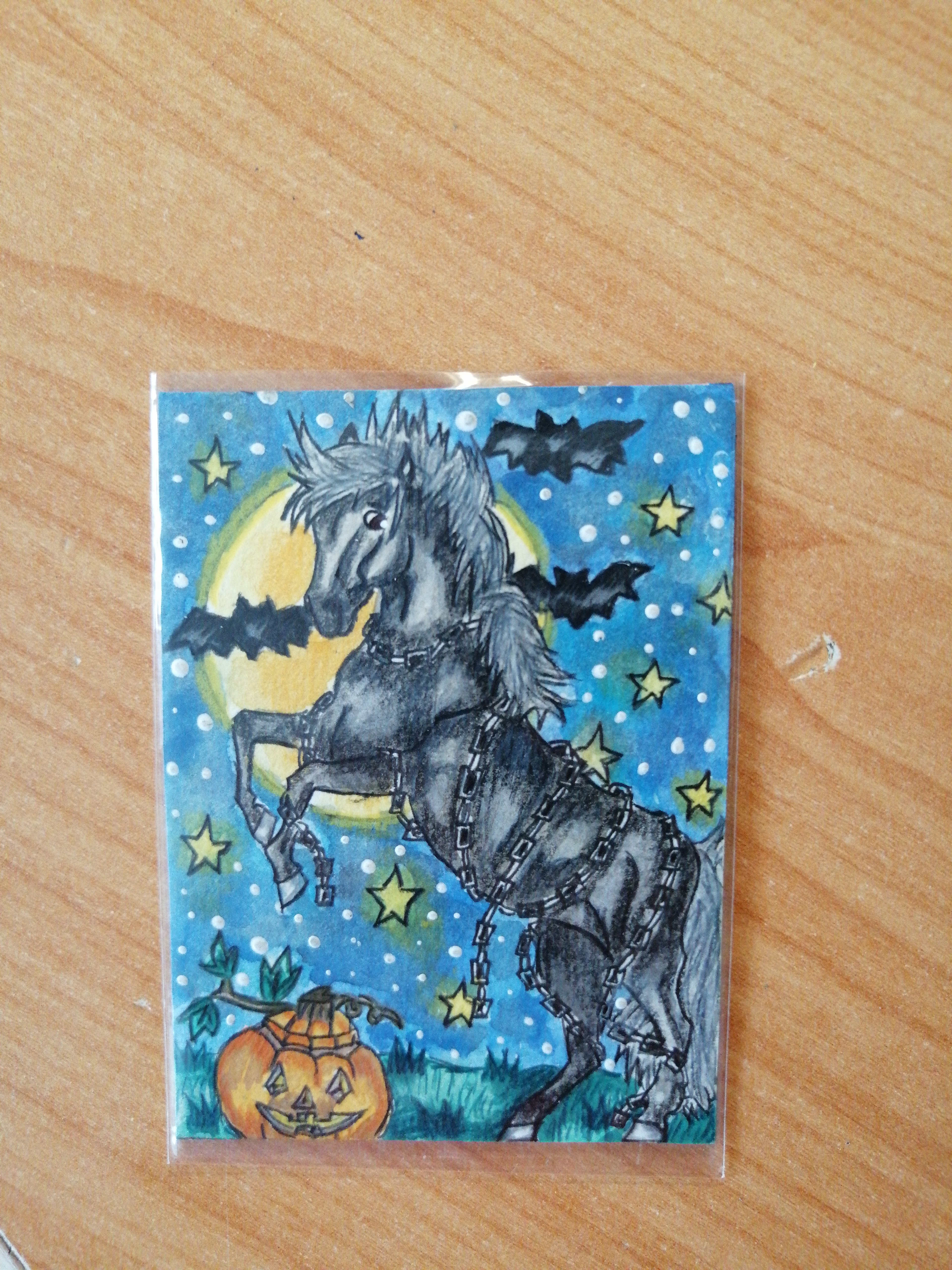 Ich hab ein bißchen gestöbert und habe eine Halloween Legende gefunden von einem geister Pferd in ketten. Genaueres werde ich später in der galarie unter der karte hochladen.
