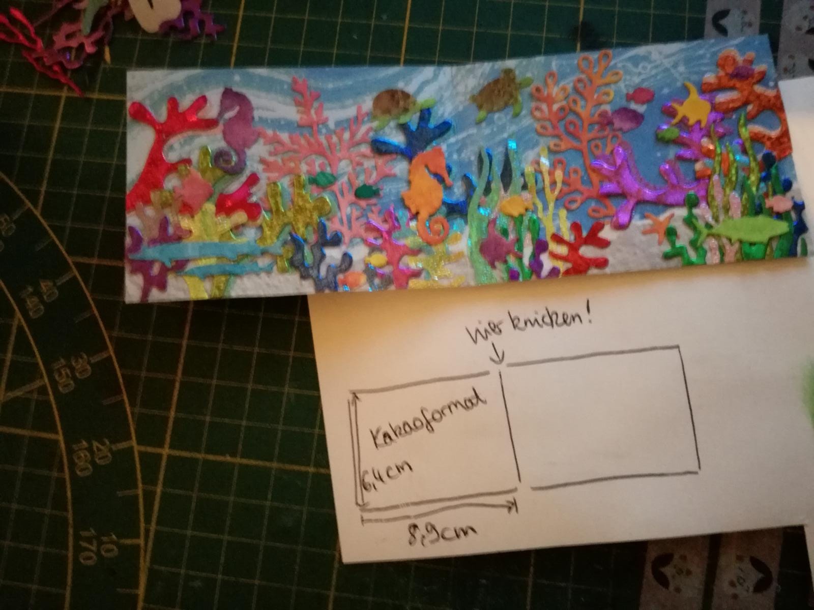 Einfach wie eine Grußkarte, die man aufklappen kann quasi. Also ich hab erst das normale Kakaoformat auf mein Mixed Media Papier aufgezeichnet und dann daran direkt noch einmal, sodass man es aufklappen kann. Die Vorderseite muss ich auch noch basteln. :)
