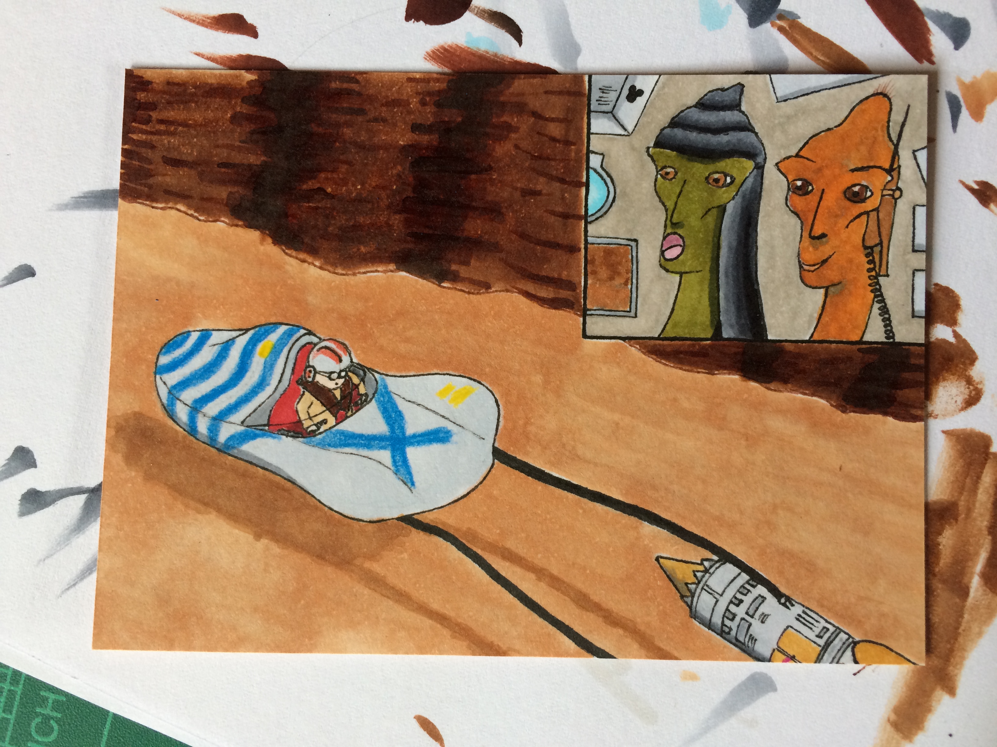Die Karte ist super geworden, Lily! Am Pod-Racer selbst könnten aber noch ein paar mehr Schattierungen nicht schaden. Zumindest dort, wo die Vertiefungen sind.