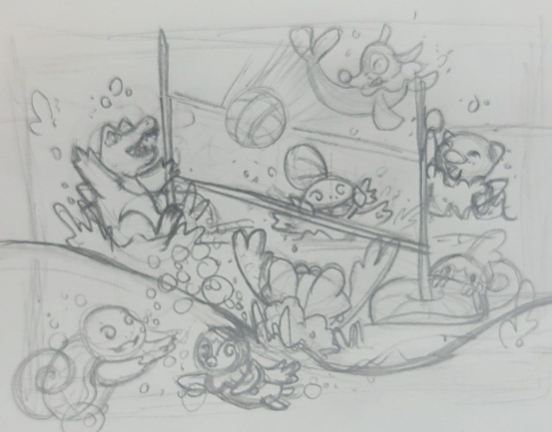 Auch ich: versucht alle Wasserstarter in ein Wasservolleyball-Motiv zu integrieren