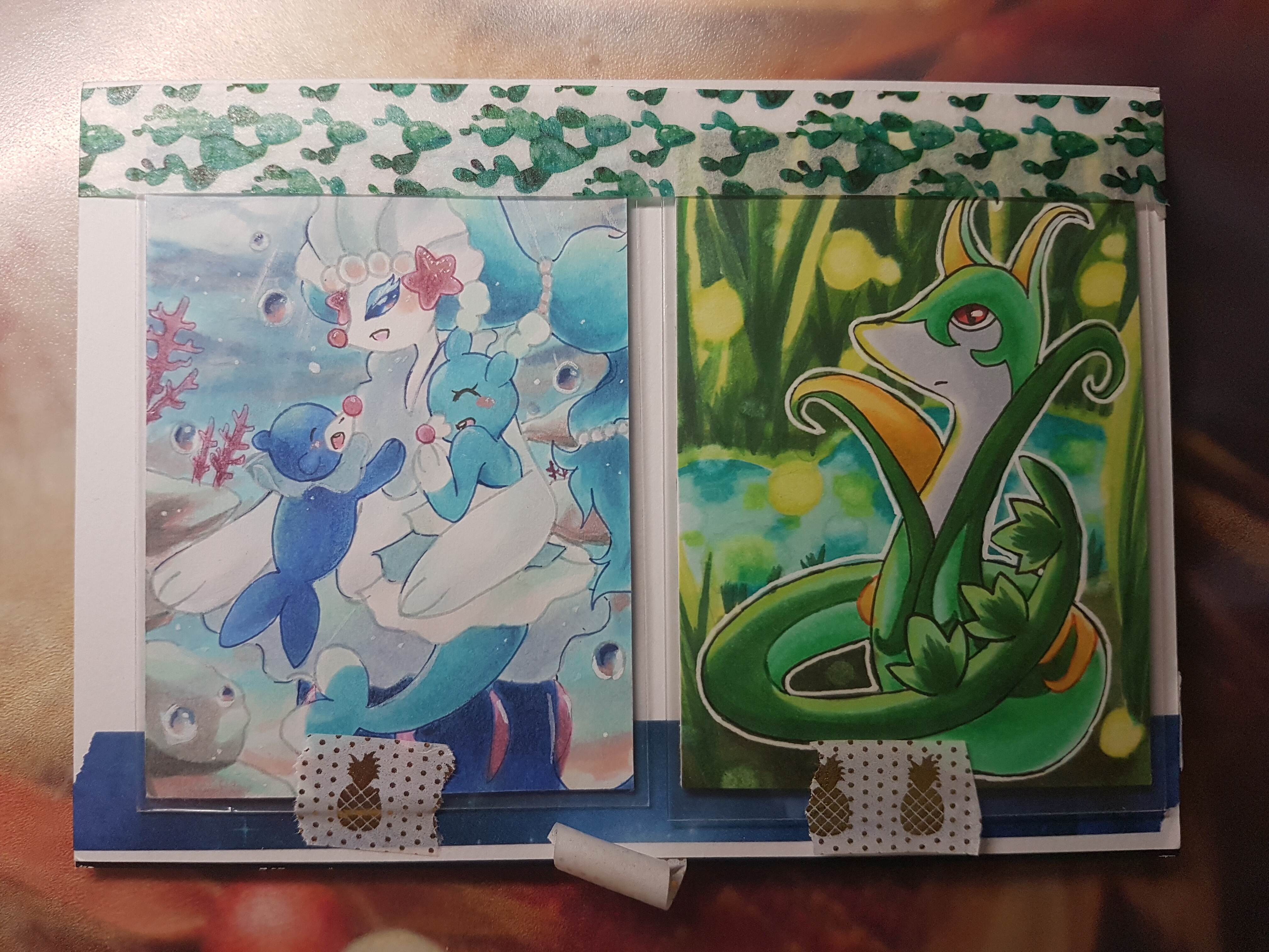 Wow. Diese Karte platzt vor liebevoller Details aus allen Nähten und man weiß gar nicht, wo man zuerst hinschauen soll! Du hast dich damit wirklich selbst übertroffen und hast jedem Pokemon einen eigenen Charakter mit viel Charme gegeben! Du hast es einfach drauf, alle gekonnt in Szene zu setzen! Diese Karte ist ein wahrer Schatz und ich freue mich überirdisch, dass ich sie nun verwahren darf! ;U;