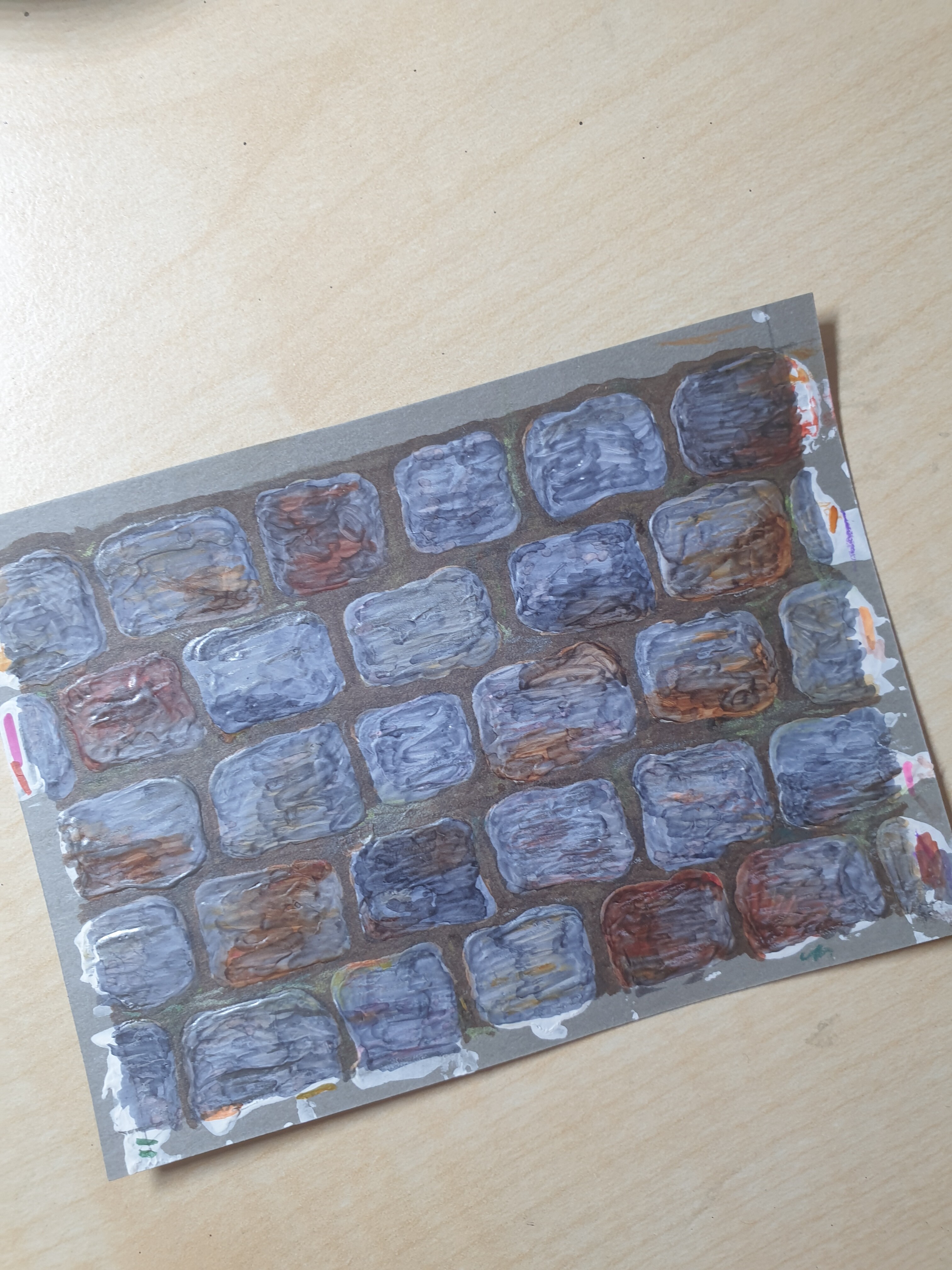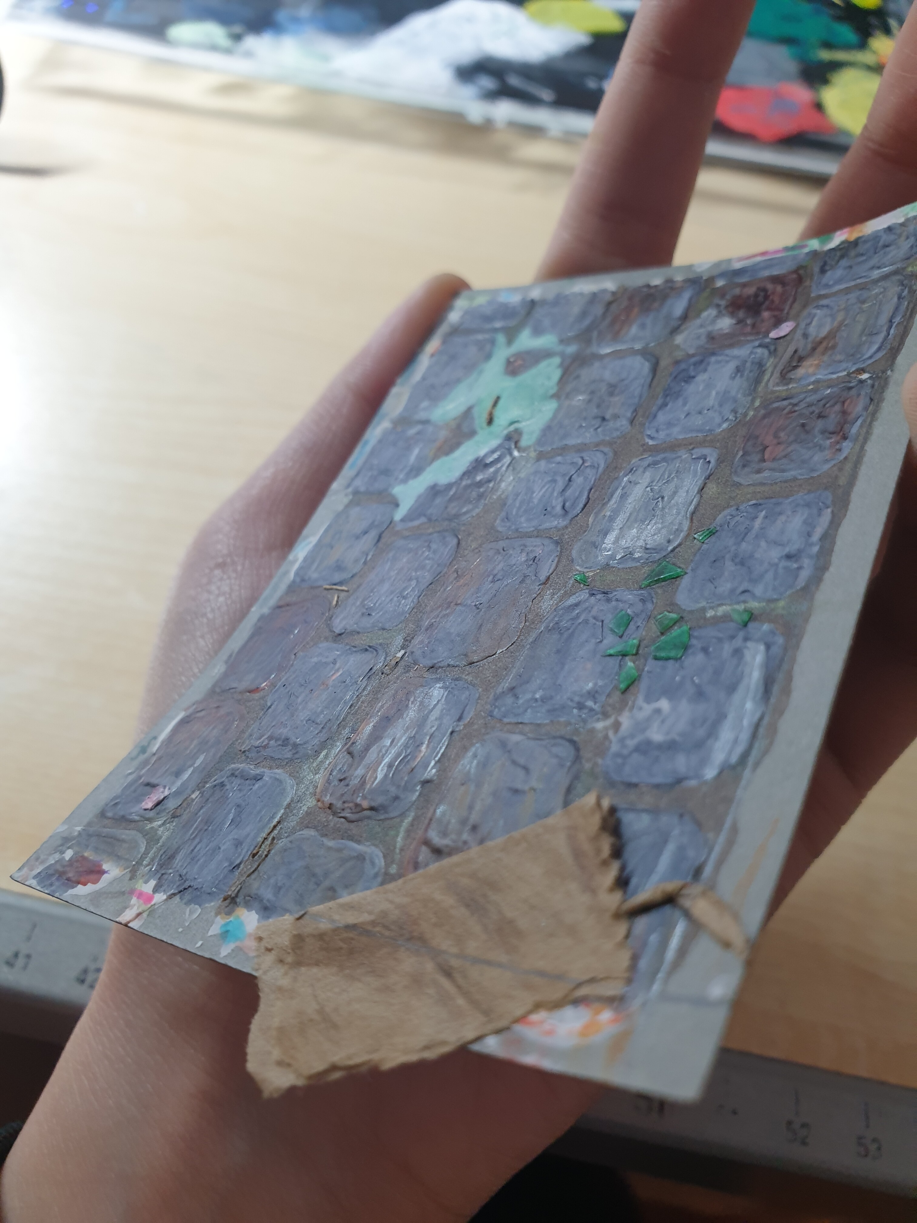 Die Steine sind mit Spachtelmasse modelliert und dann bemalt.