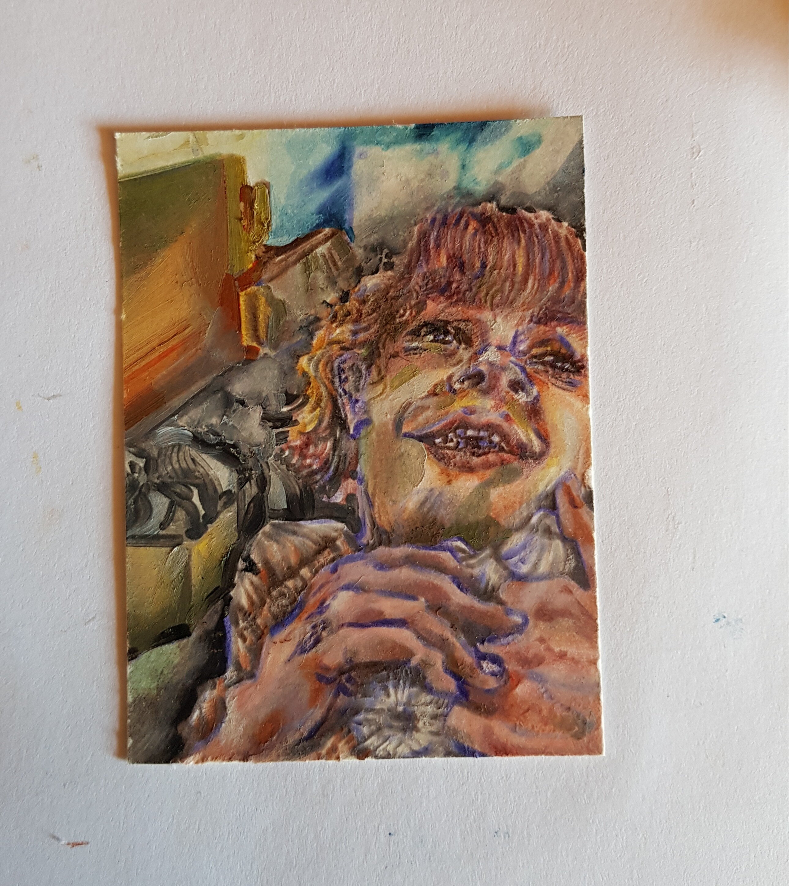 Die Karte wurde mit Ölfarben und noch anderen Mischtechniken gemalt.
