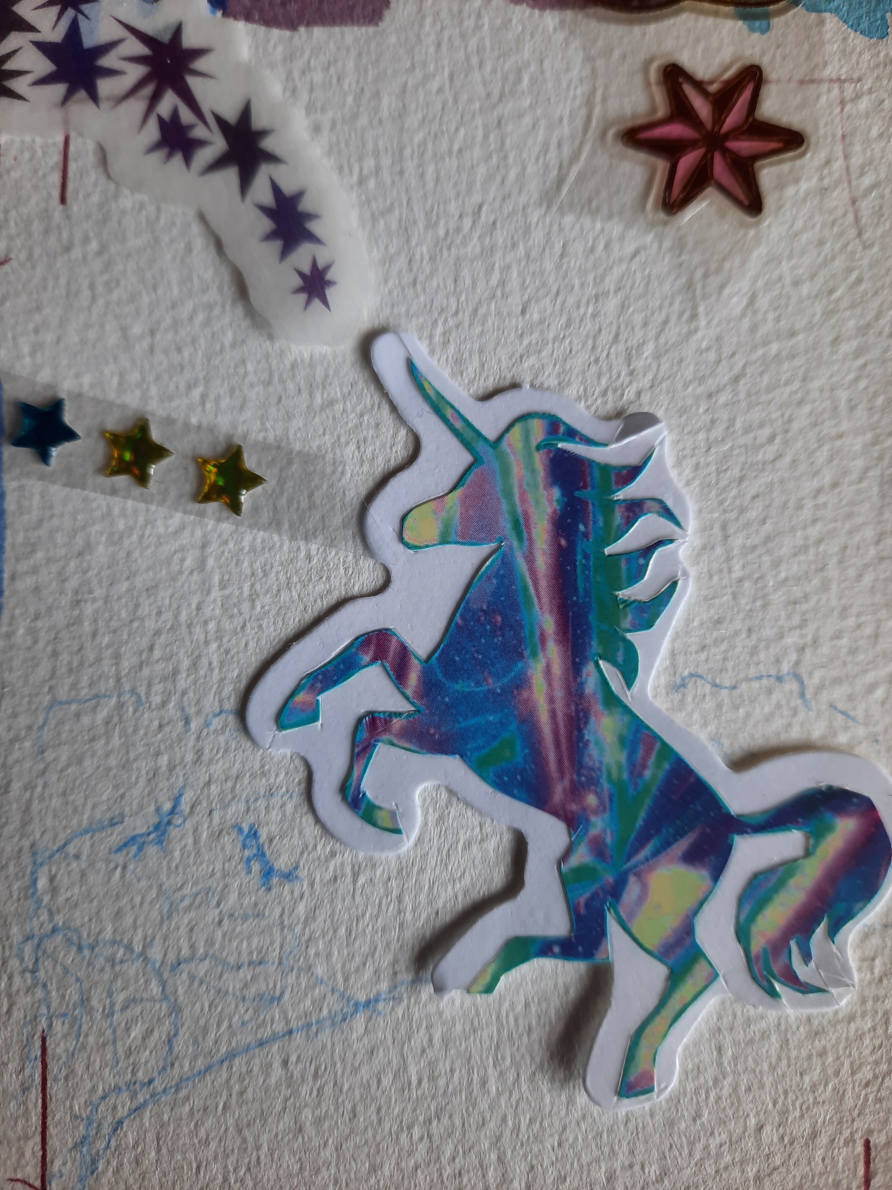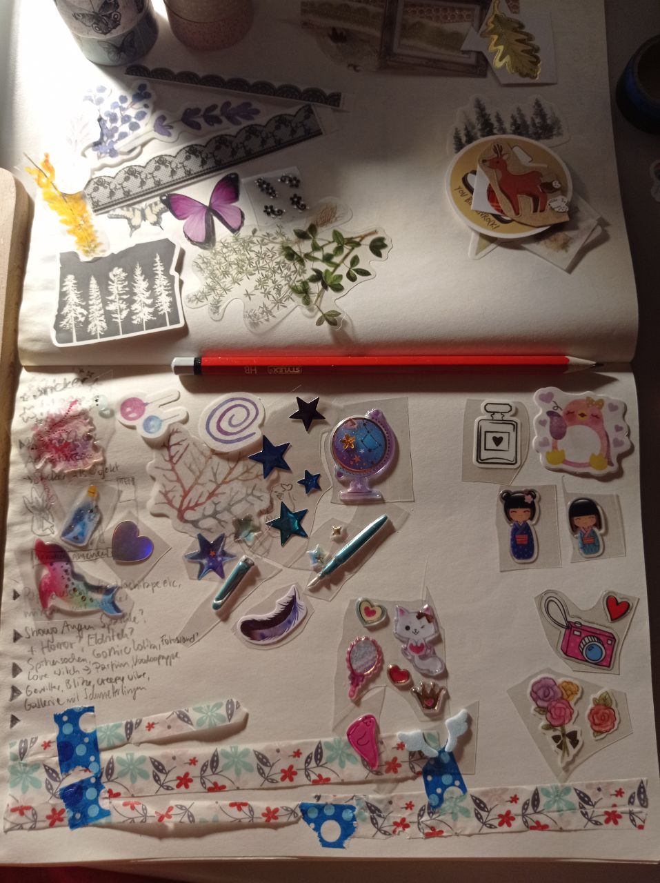 4) Etwas galaktisch-magisches mit den vielen Sternen, ich habe schon den Füller und den Globus zerlegt um daraus einen Zauberstab zu basteln. Ich weiß nur noch nicht wie ich die vielen Sticker alle unterbringe auf dem kleinen Format, denn am Liebsten würde ich die alle nutzen. xD
