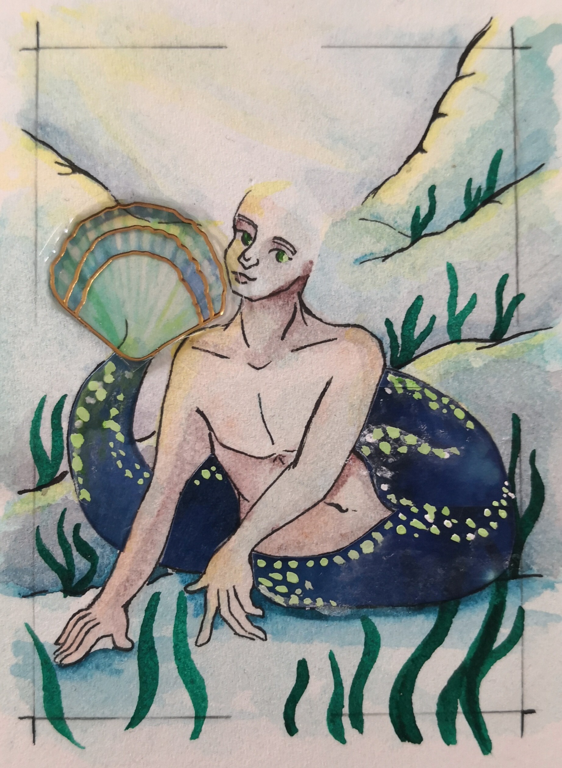 Fundament ist aber schonmal fertig. Die Muschel klebt nochnicht, dafür ist das Washi nun fest drauf.