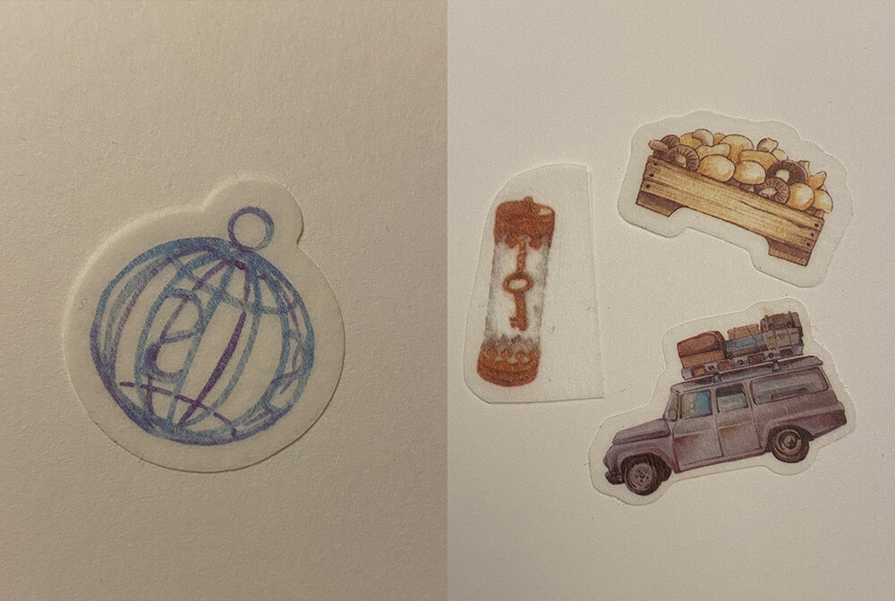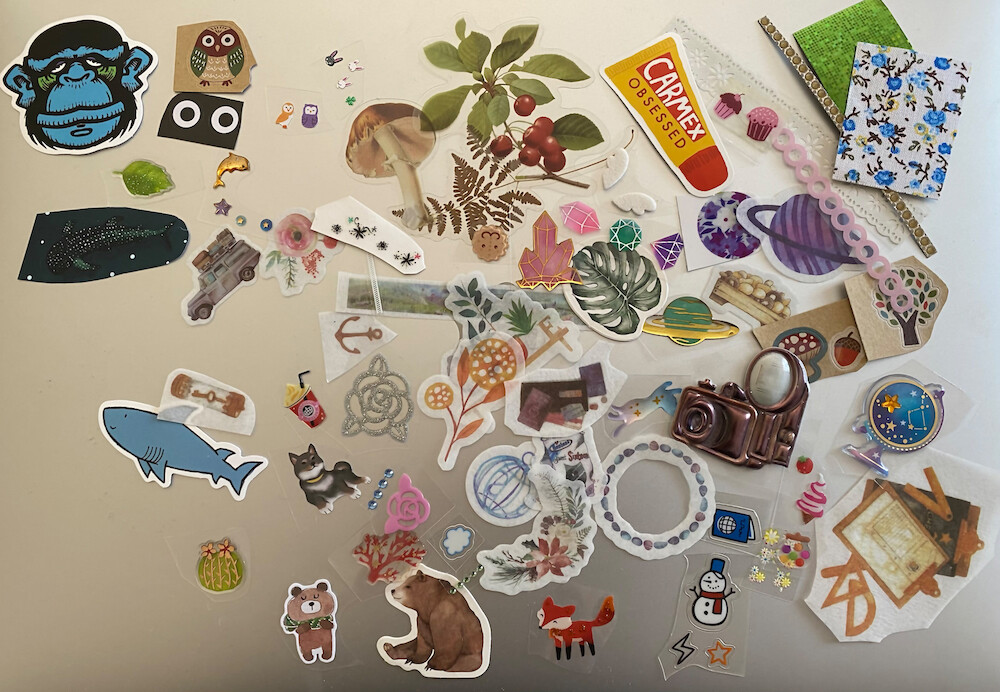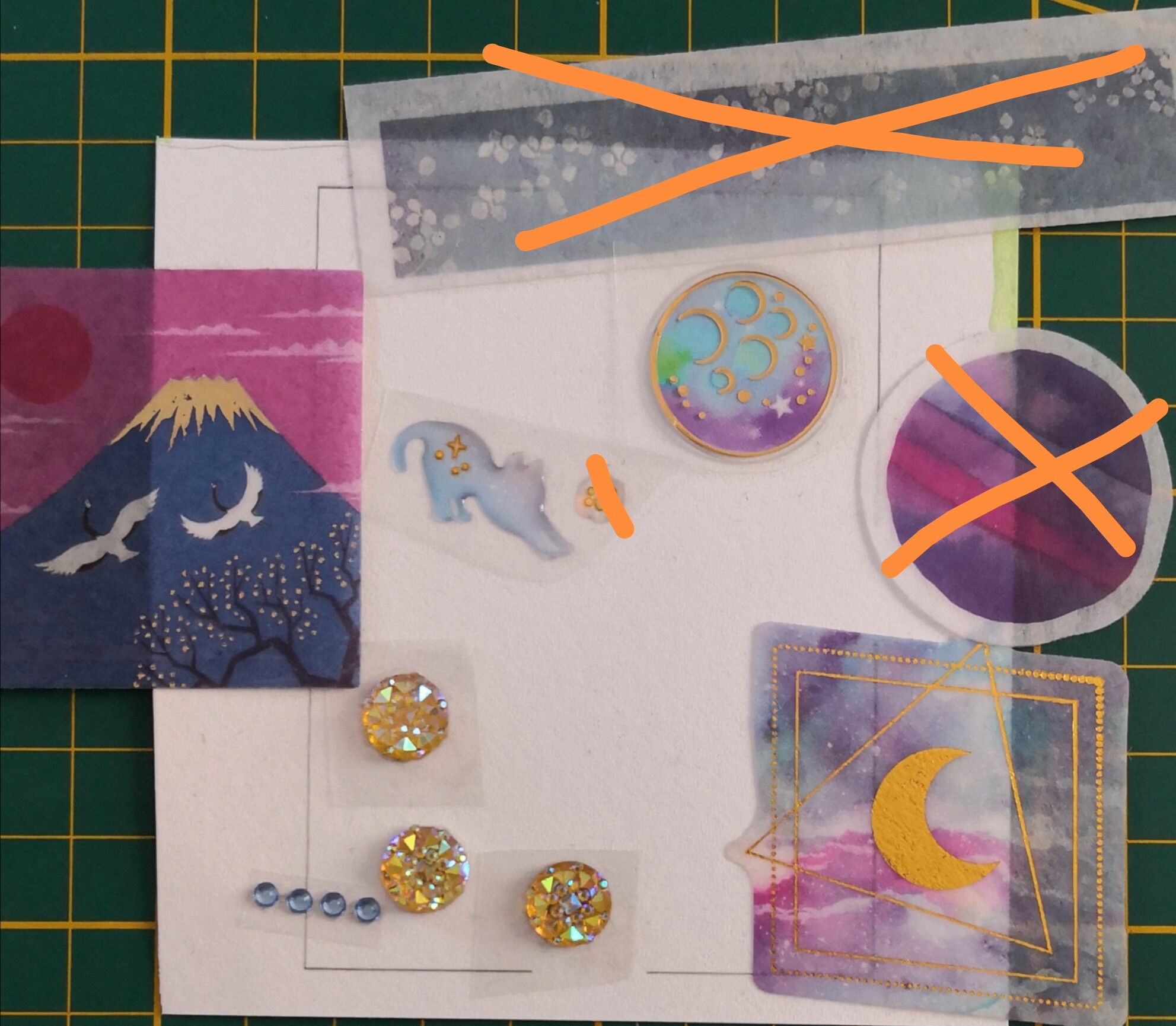 Die verwendeten Sticker (die durchgestrichenen habe ich dann doch nicht mehr benutzt.)