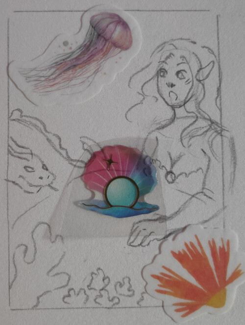 Ich überlege das Schiff aus Aquarellpapier auszuschneiden und so aufzukleben, dass man das kleine Alien wahlweise auch einfach herausnehmen kann :D