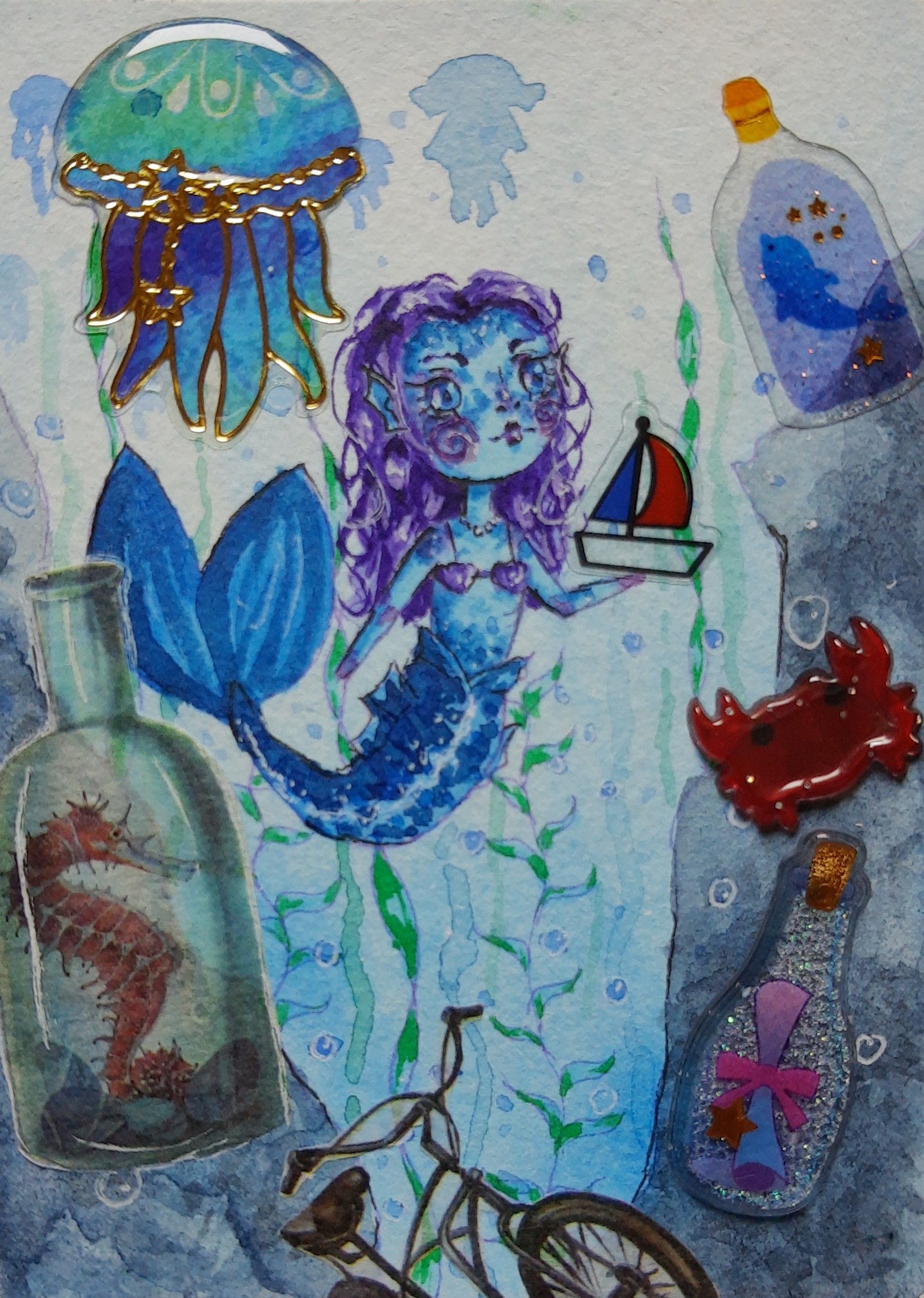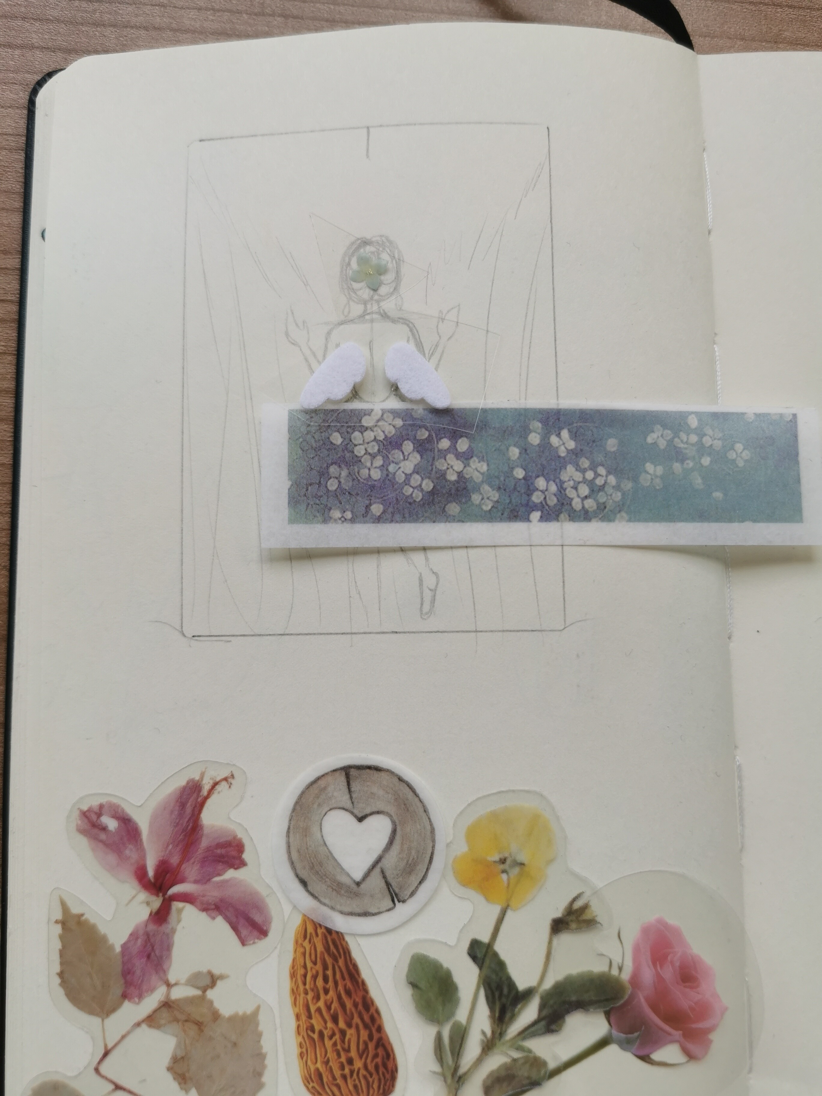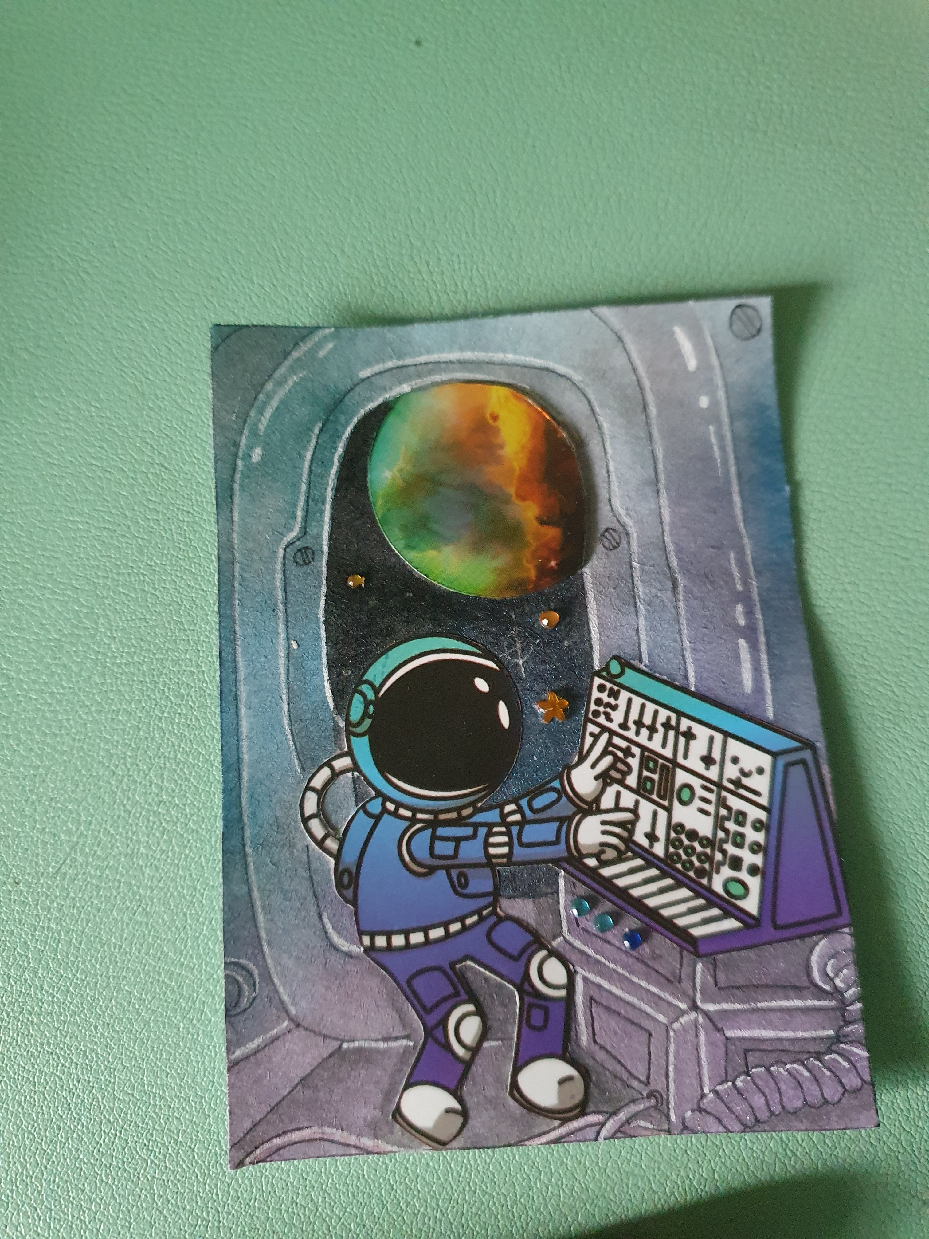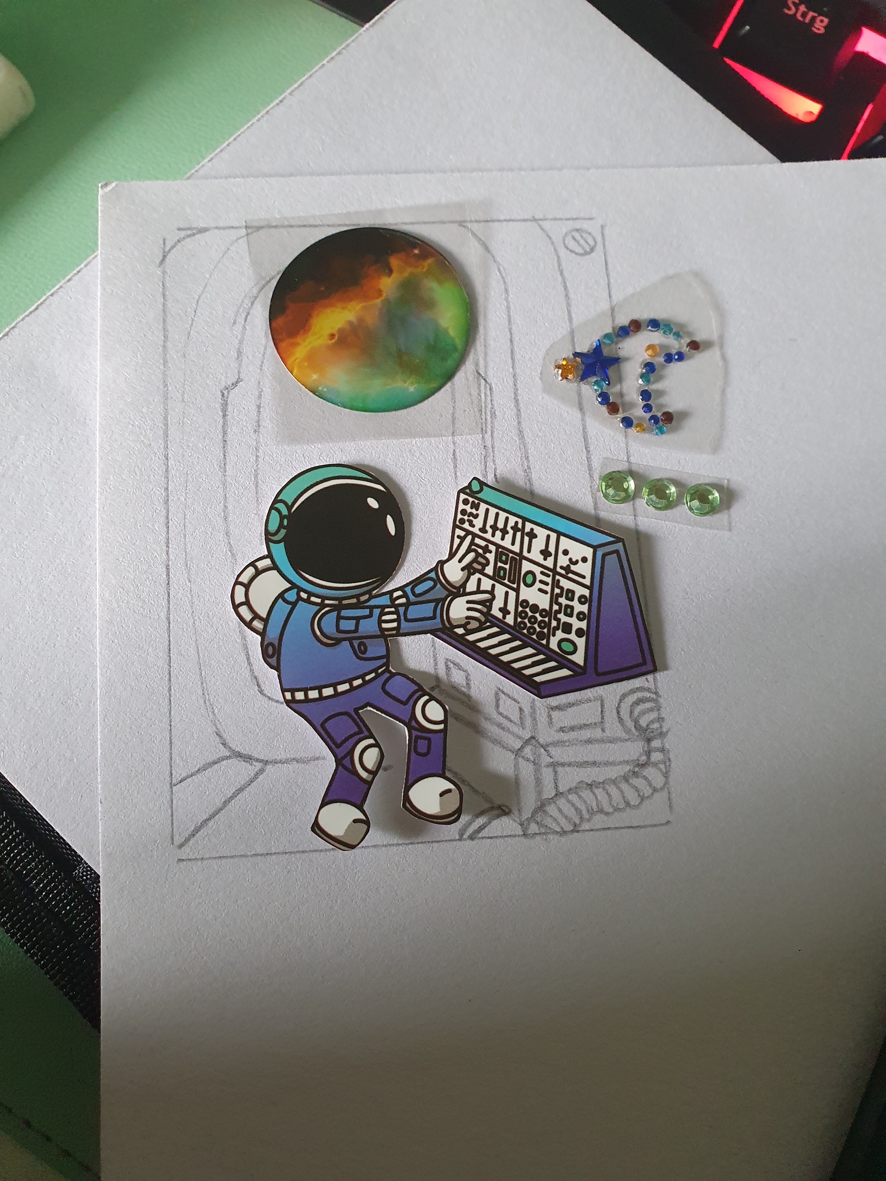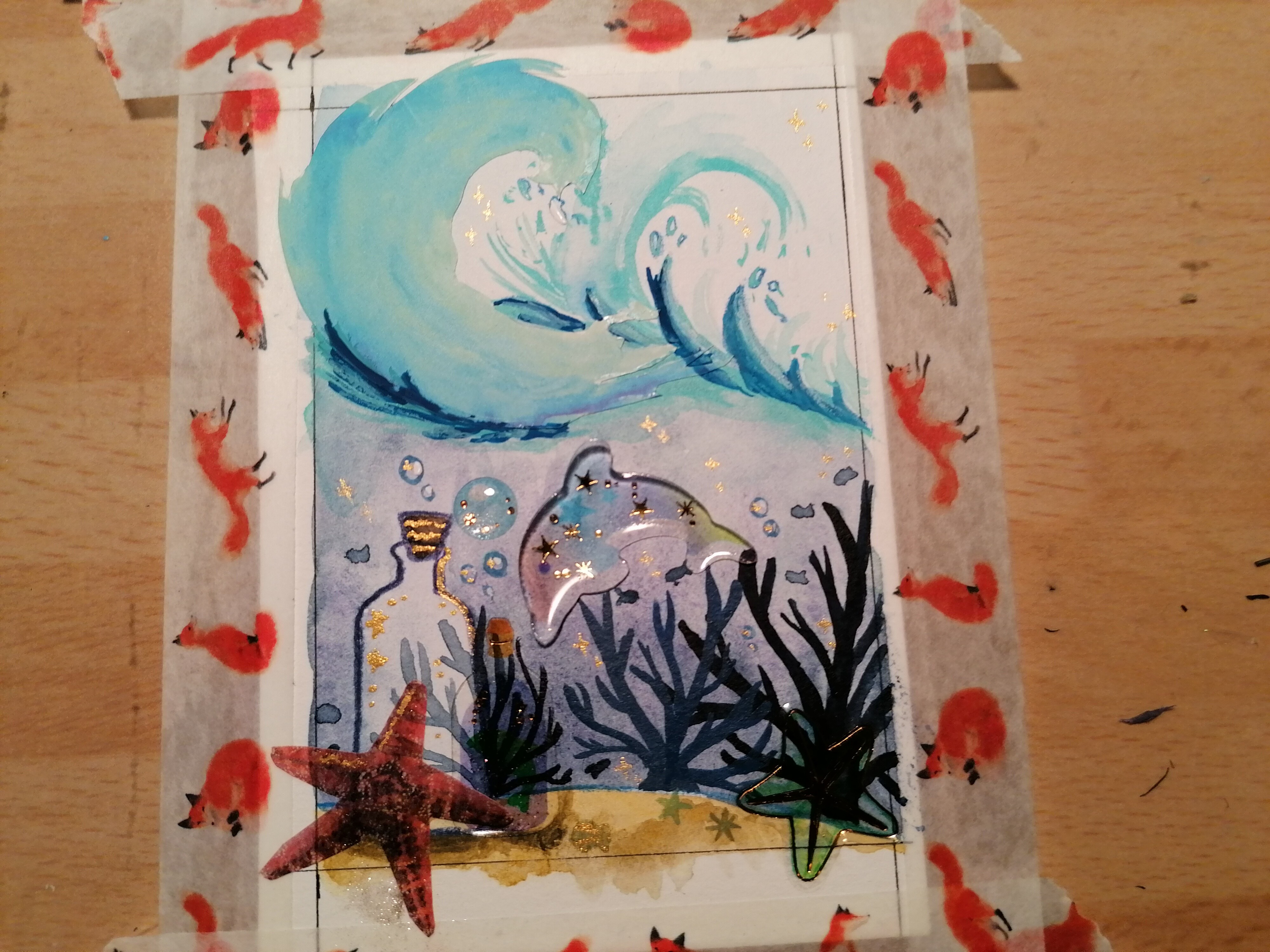 Ich hab dann auch schonmal mit der ersten Karte begonnen /v\ (Das Washitape außenrum gehört nicht zur Karte, nur weil sie gerade noch befestigt ist)