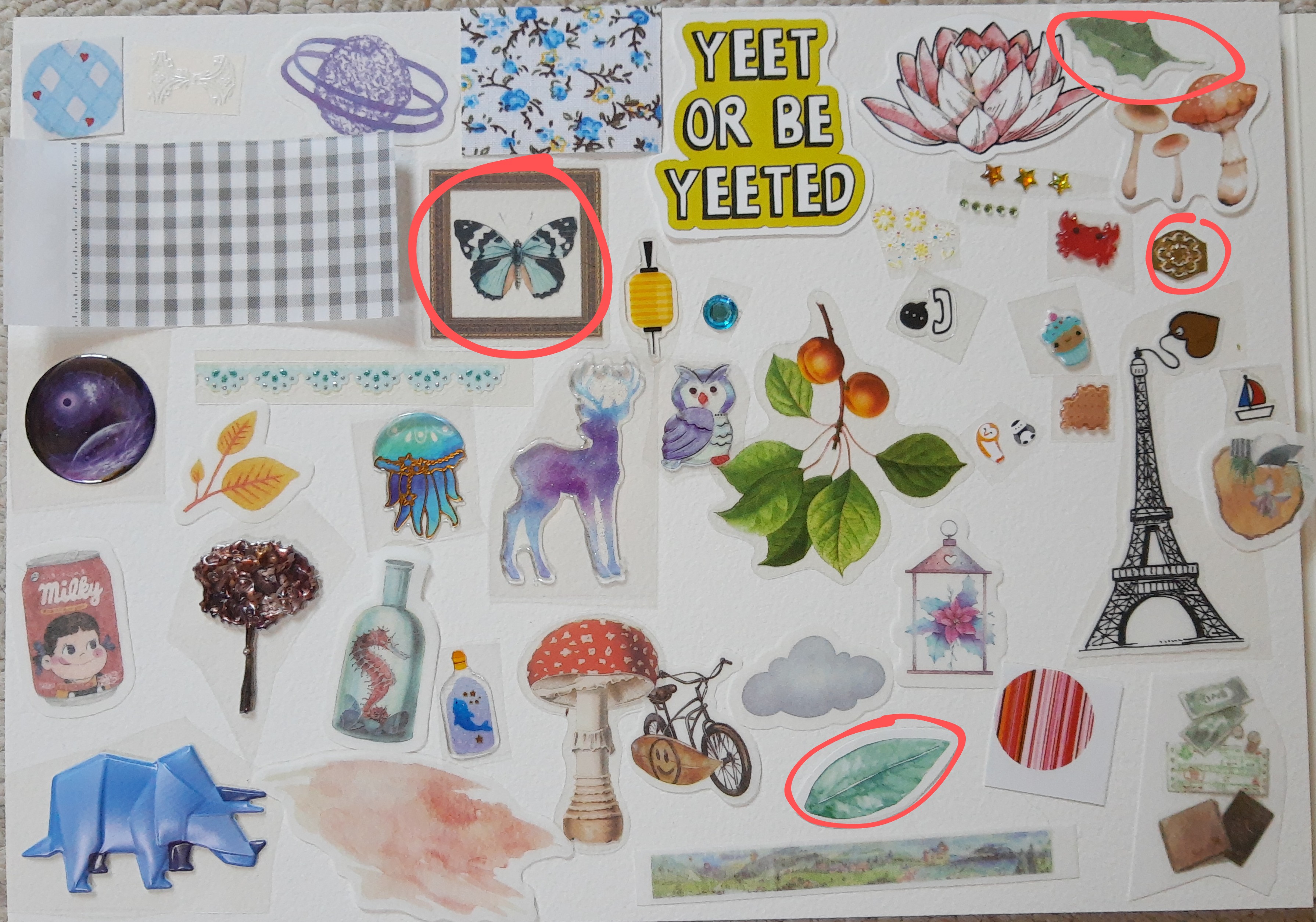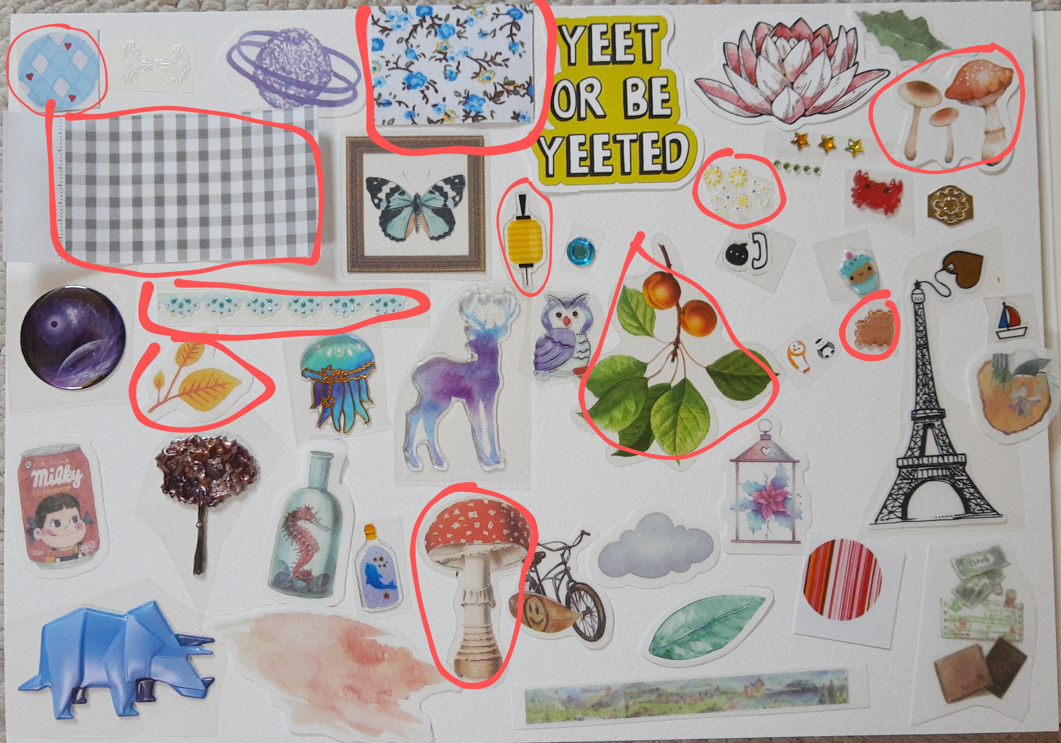 Bei den Pilzen würde ich versuchen den Rand ein wenig enger zu schneiden (Damit man nicht so sieht das es Sticker sind), aber der linke Pilz kommt mir trotzdem etwas schwach vor