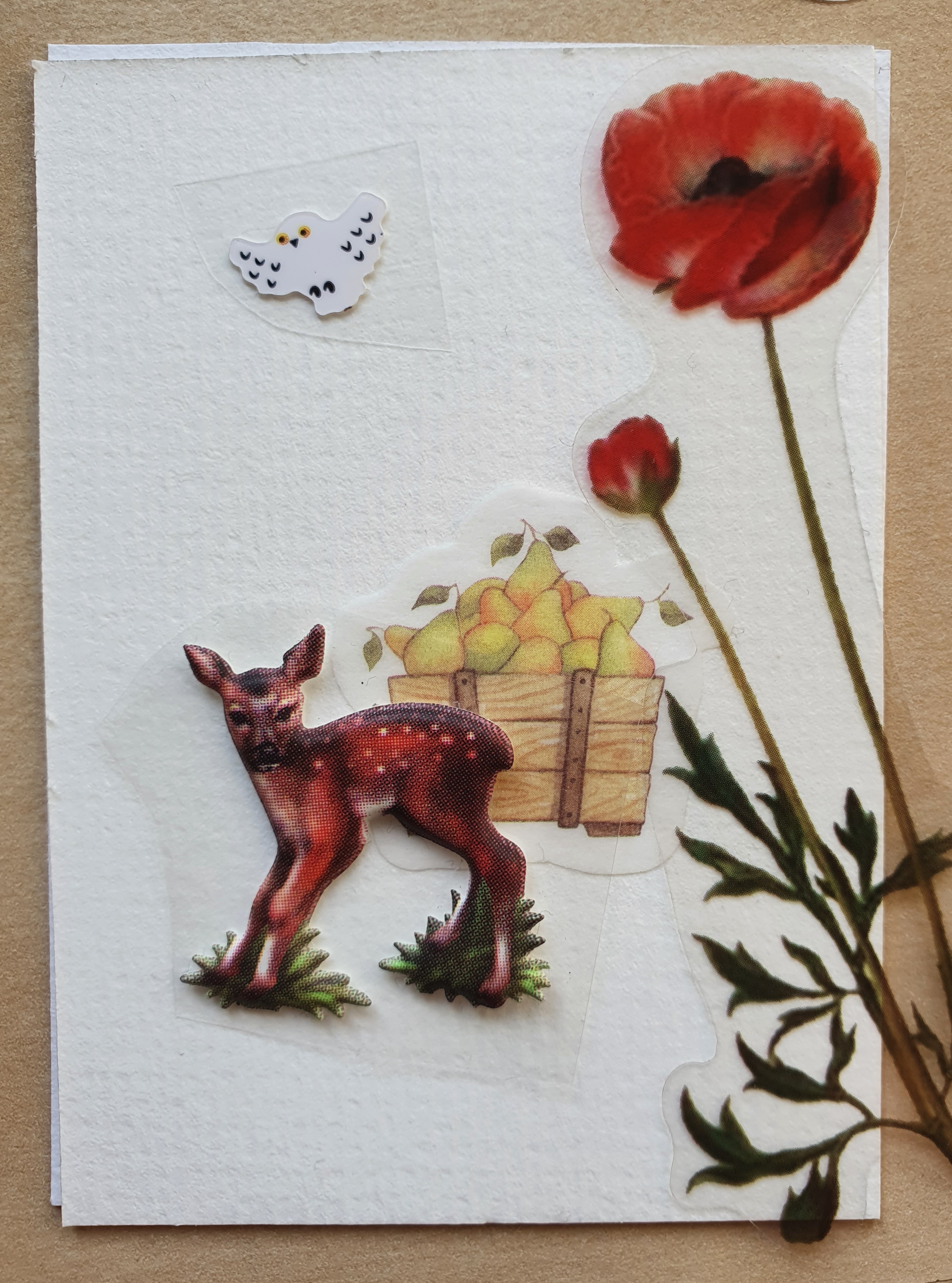Und bei der rechten Eule werde ich wohl mit einem weißen Posca den Hintergrund bearbeiten, sodass man den Sticker besser sieht oder gibt es da vlt auch eine elegantere Weiße damit umzugehen? (z.B. auf extra Papier kleben und das dann erst auf die Karte?)