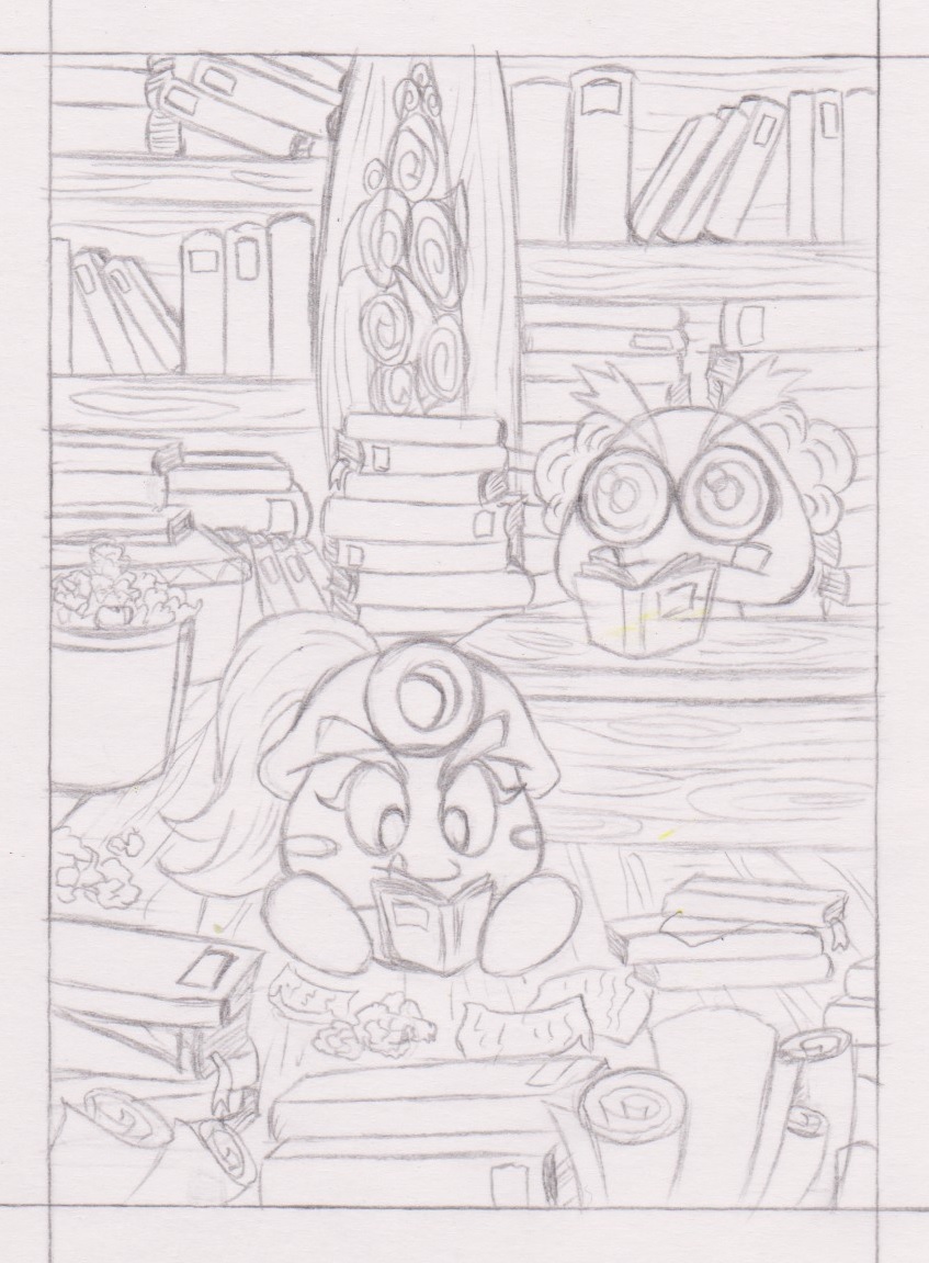 Gumbrina und Professor Gumbarth aus Paper Mario 2 - Die Legende vom Äonentor. Ich habe versucht mich so gut wie möglich am Paper Mario Stil zu halten und nur bei den Haaren ein paar Strähnen angedeutet (damit es ein bisschen lebendiger wirkt, die könnte ich bei Wunsch aber auch wieder wegmachen). Ich habe mir gedacht, dass Gumbrina und Gumbarth Nachforschungen über das Äonentor sowie über die Sternjuwelen machen, weil das im Spiel erwähnt wurde, dass sie öfters danach geforscht haben ^^. Für die Leute, die sich wundern: Das ist normal so, dass die Bücher bei den Charakteren “schweben”, das ist im Spiel auch schon so XD. Weil die Gumbas keine Hände haben, haben die Entwickler die Bücher einfach schweben lassen :’). Ich fand es als Gag jetzt auch ganz witzig, daher hab ich das auch so gezeichnet. Der Hintergrund soll Professor Gumbarths “Büro” aus dem Spiel darstellen.