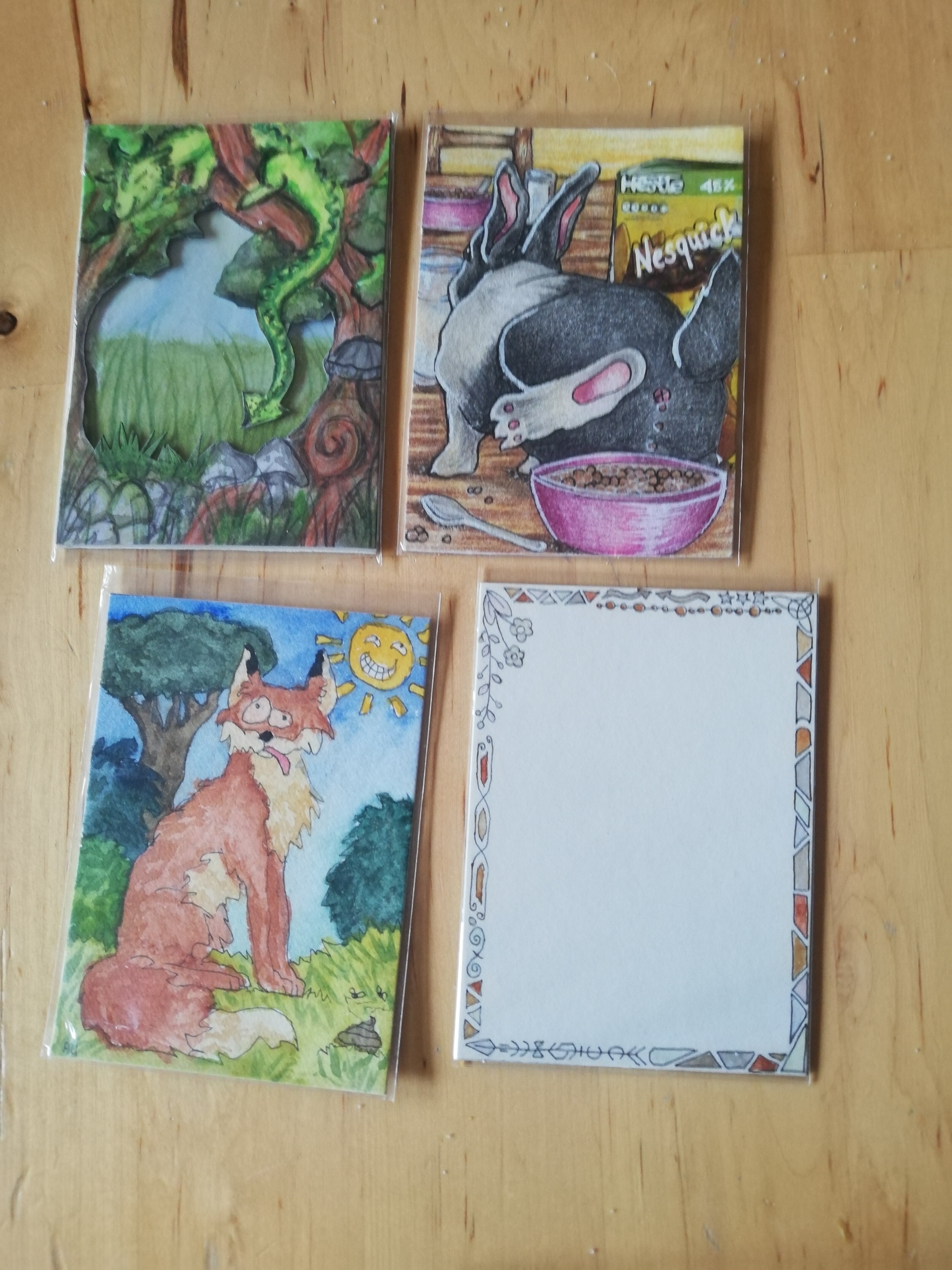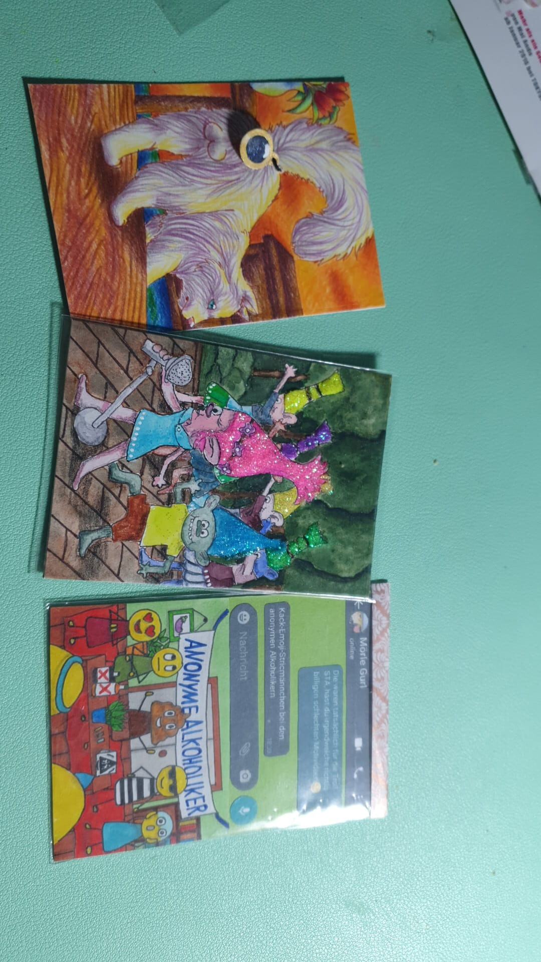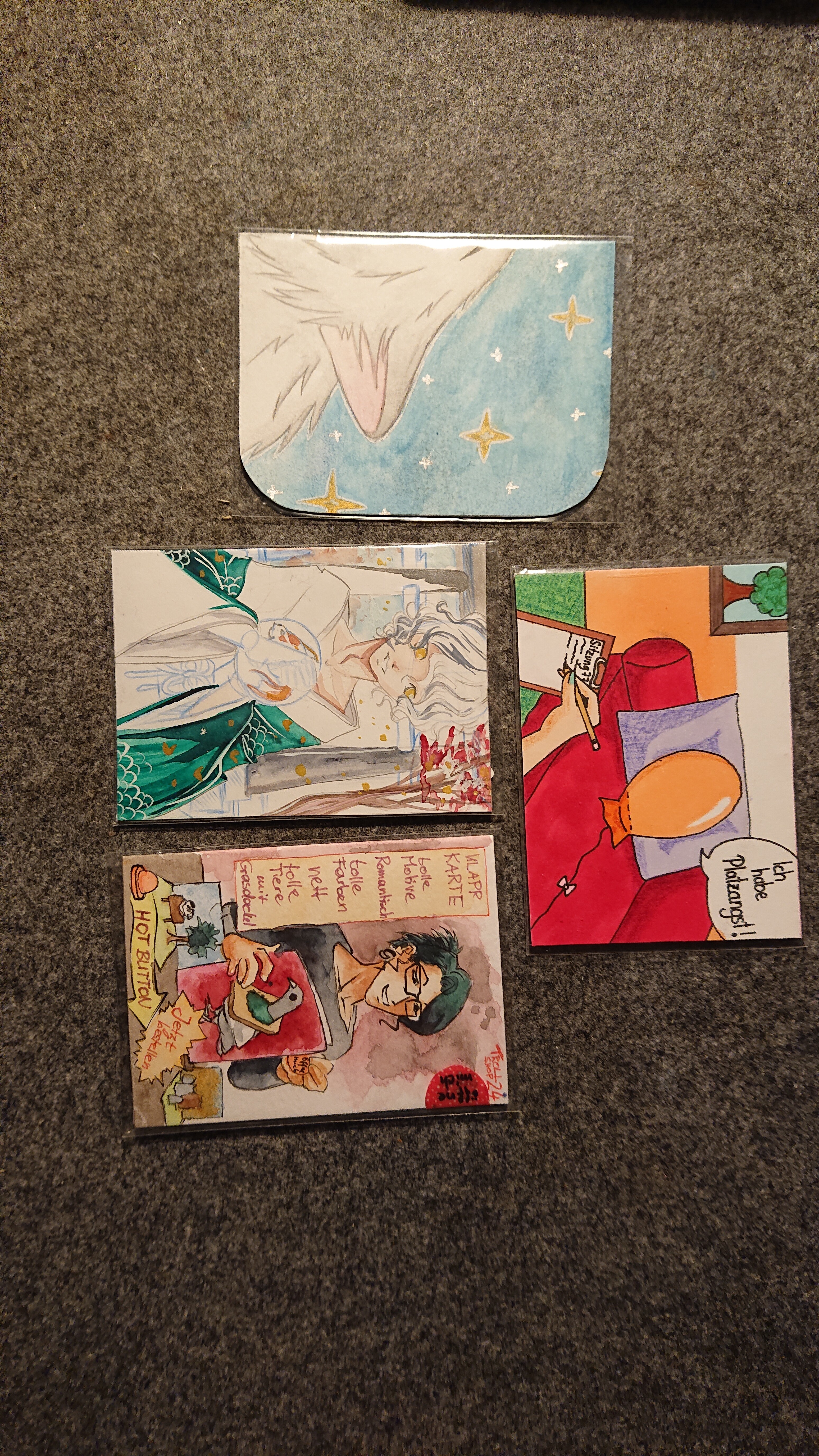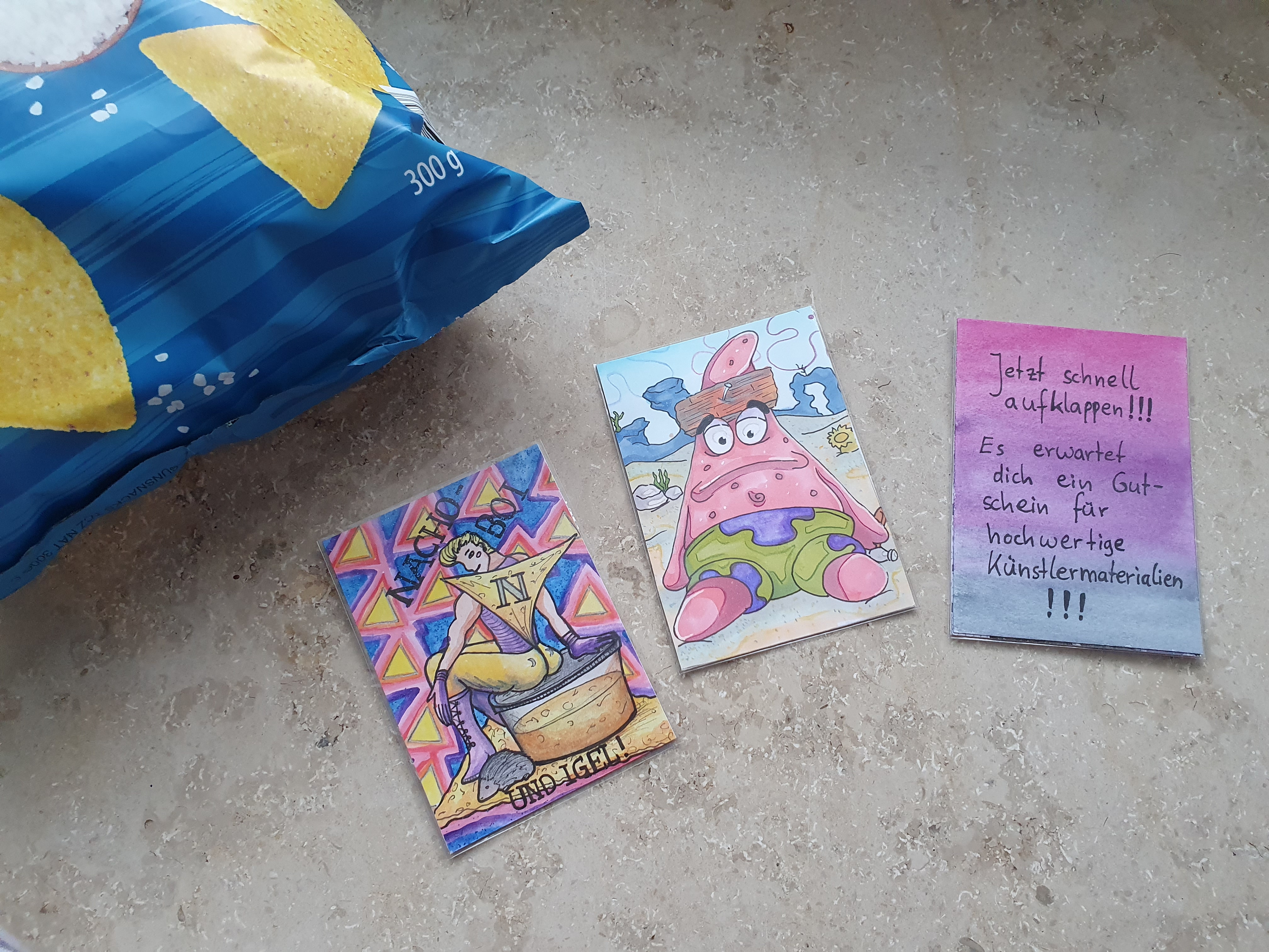 Die Briefe sollten ab heute bei euch eintrudeln. Ich hoffe, die Karten gefallen euch oder bringen euch wenigstens zum Lachen.