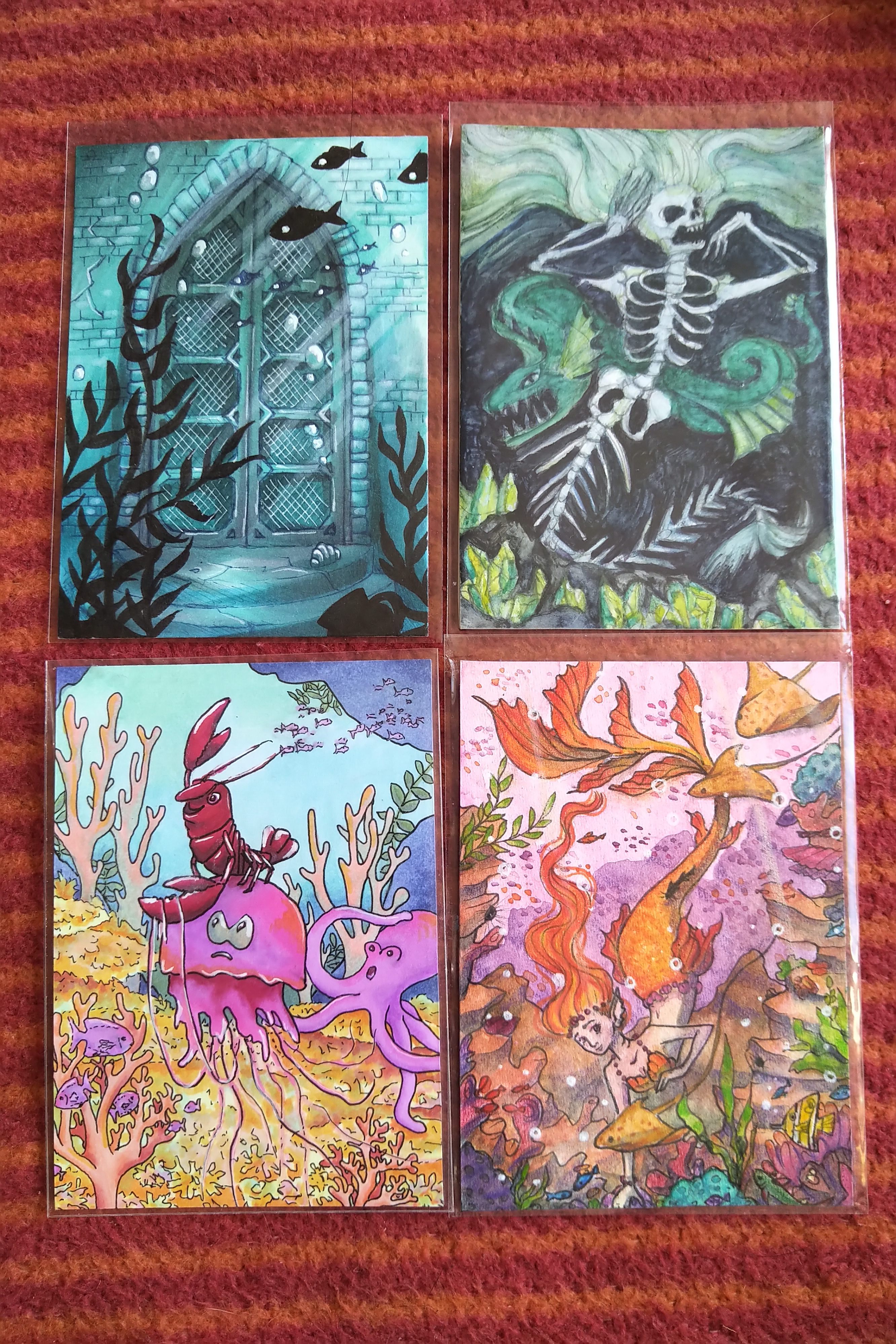 Ein sonniges Plätzchen von @Mahyra - …hab ich grad was gegen Meerjungfrauen gesagt? Dieses Exemplar hat mich trotzdem überzeugt, weil ich diese mehrteilige Schwanzflosse ultra schick finde! Ich liebe es, dass auf der Karte so viel los ist, und die Farben sind toll, ein wundervolles Gesamtbild <3