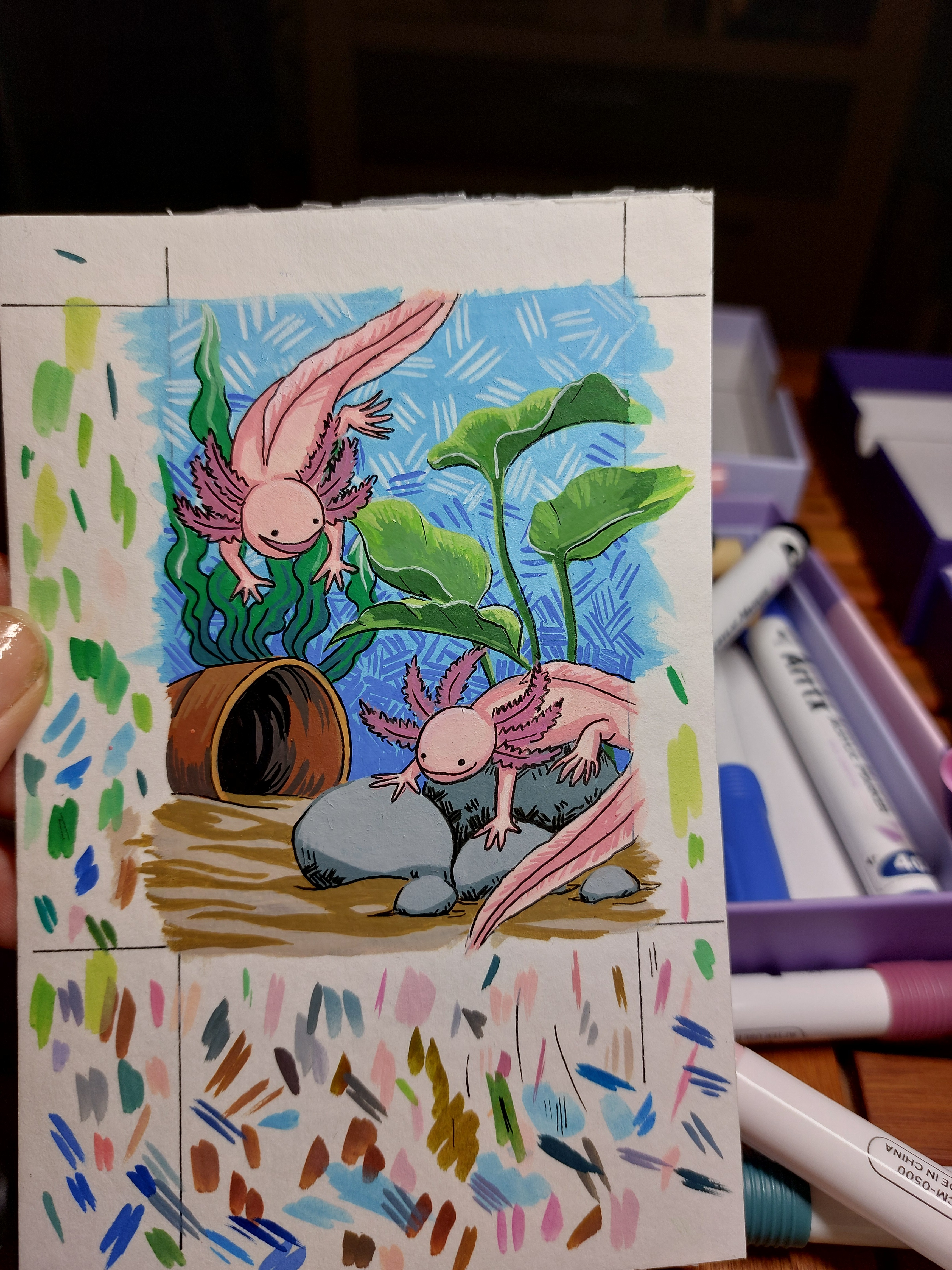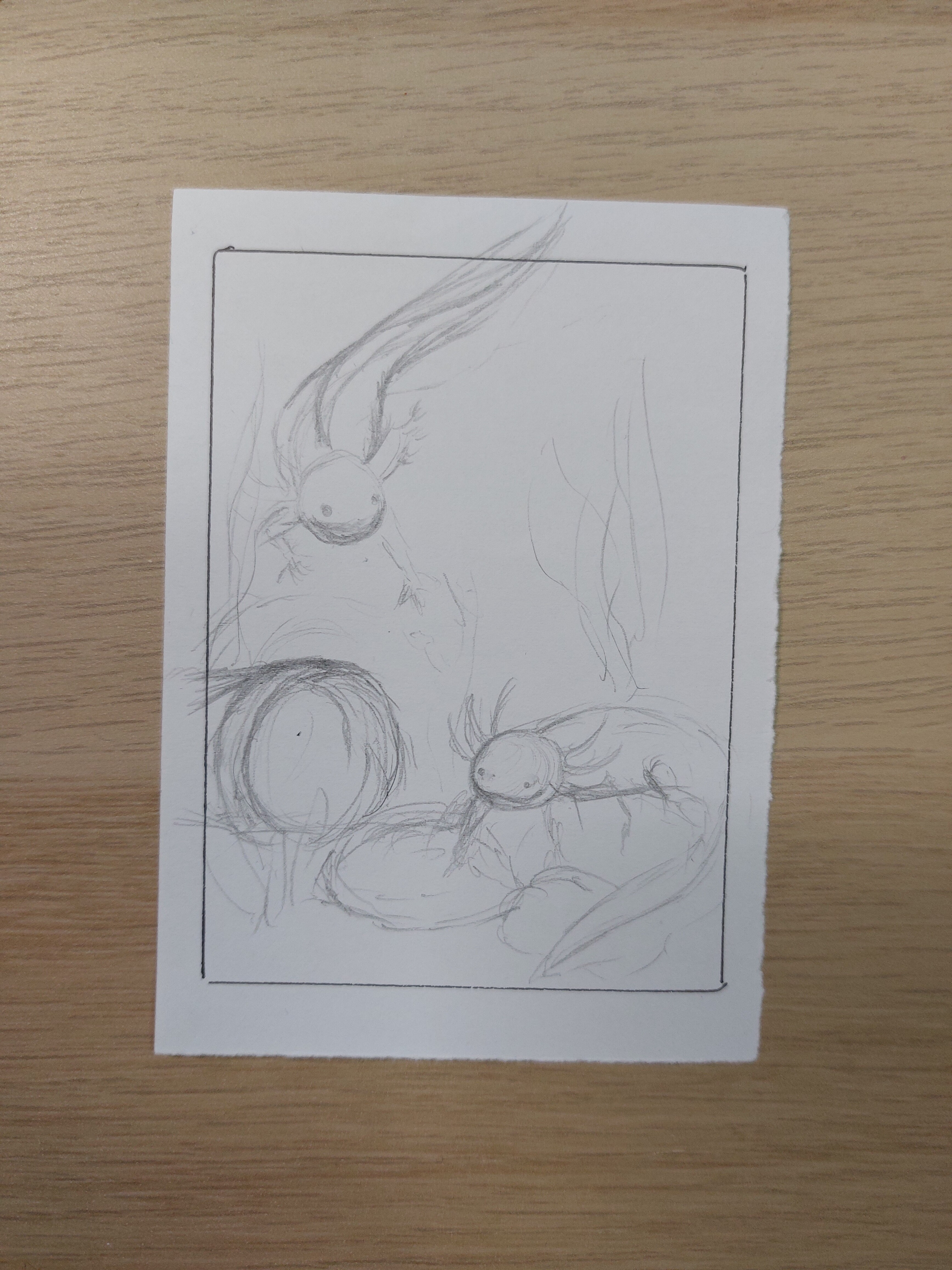 Noch habe ich mein Ziel nicht aufgegeben, noch eine zweite Karte fertig zu bekommen. Meine aktuelle Vorzeichnung (Hintergrund kommt noch, wird ein Korallenriff):