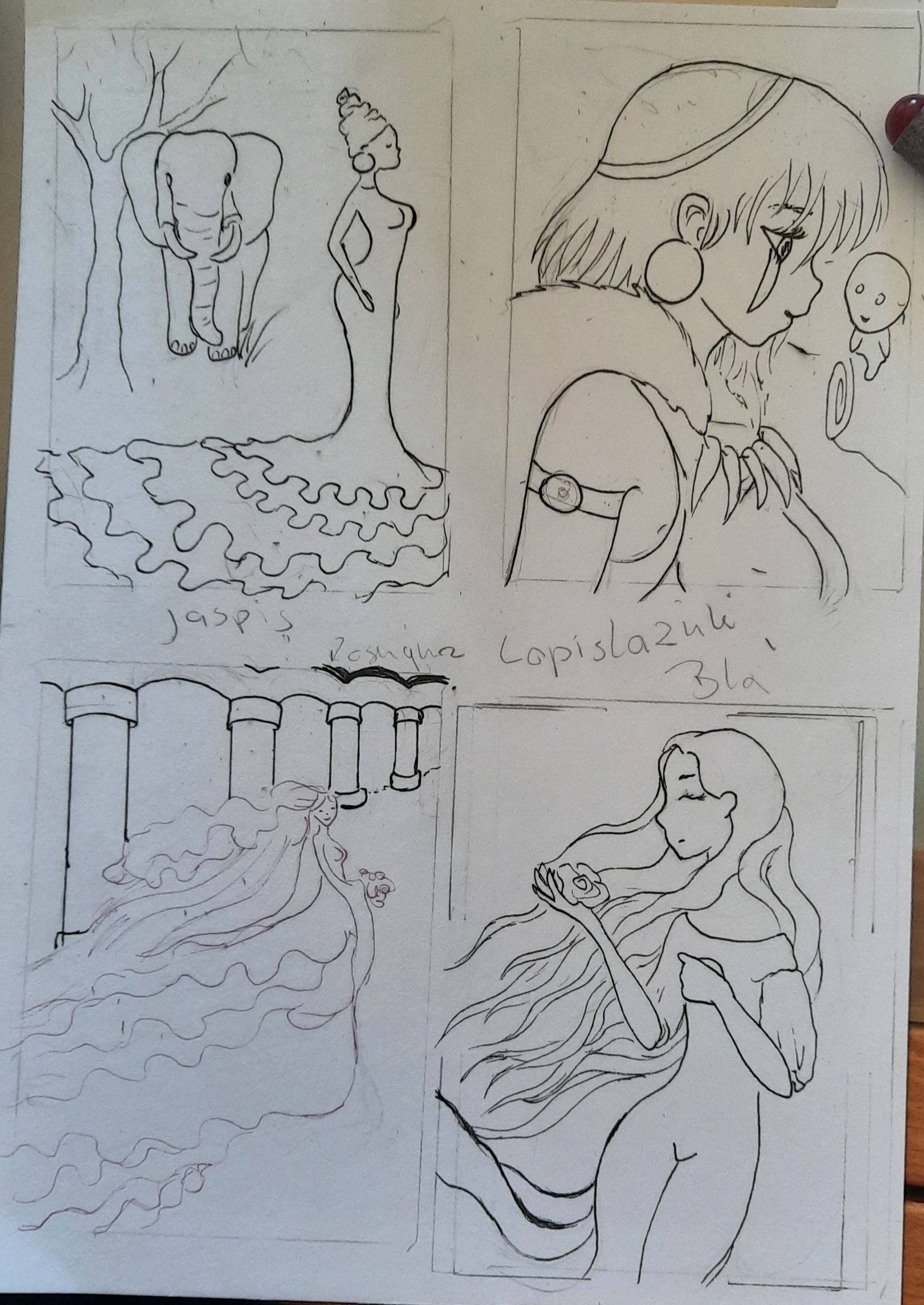 Ich hab mich an eine Skizze für Jade gesetzt.