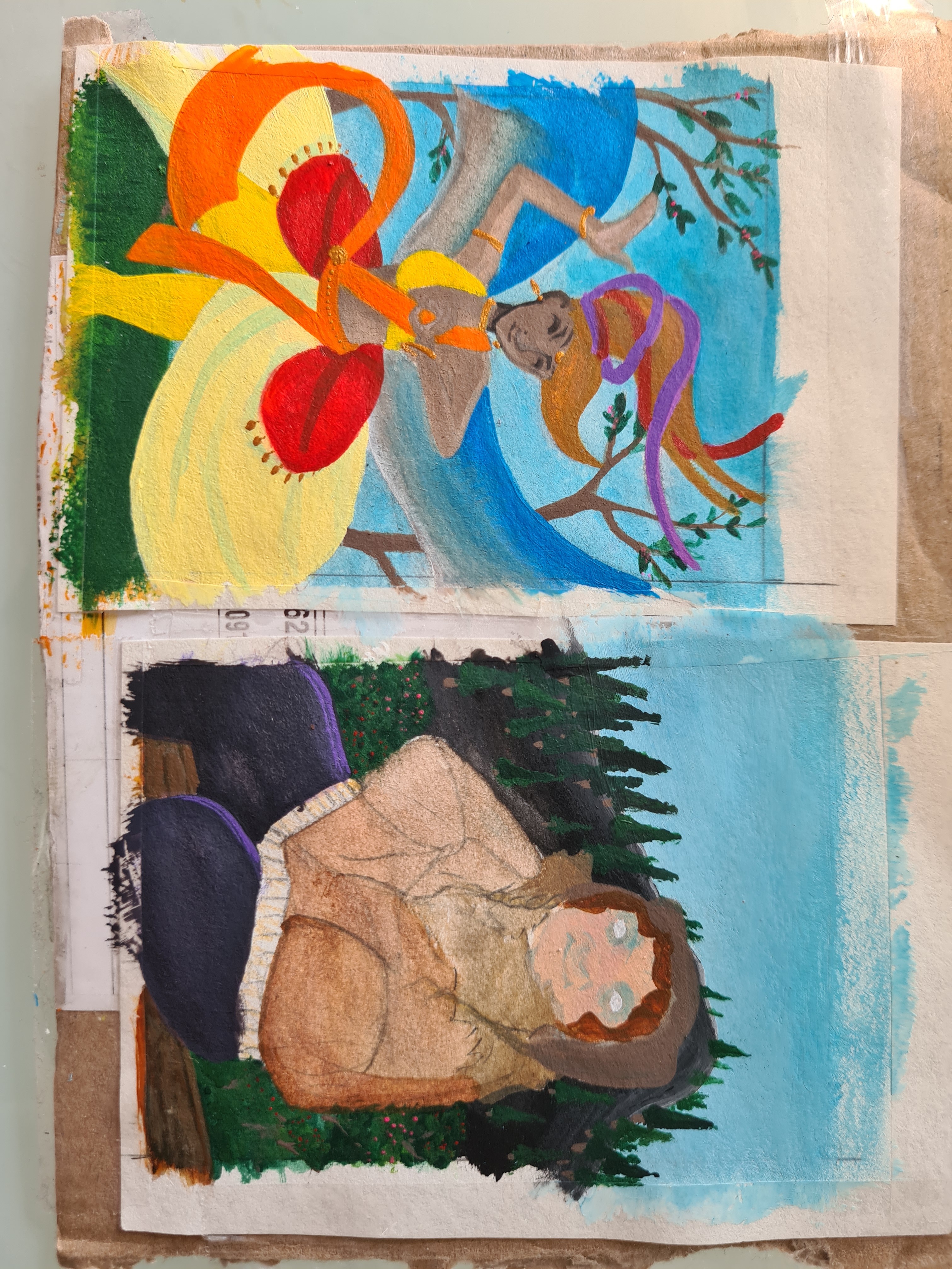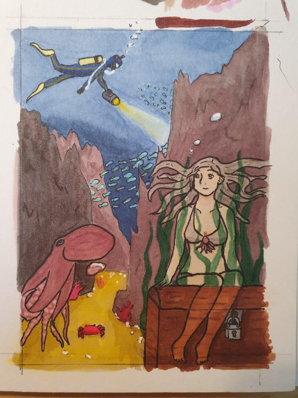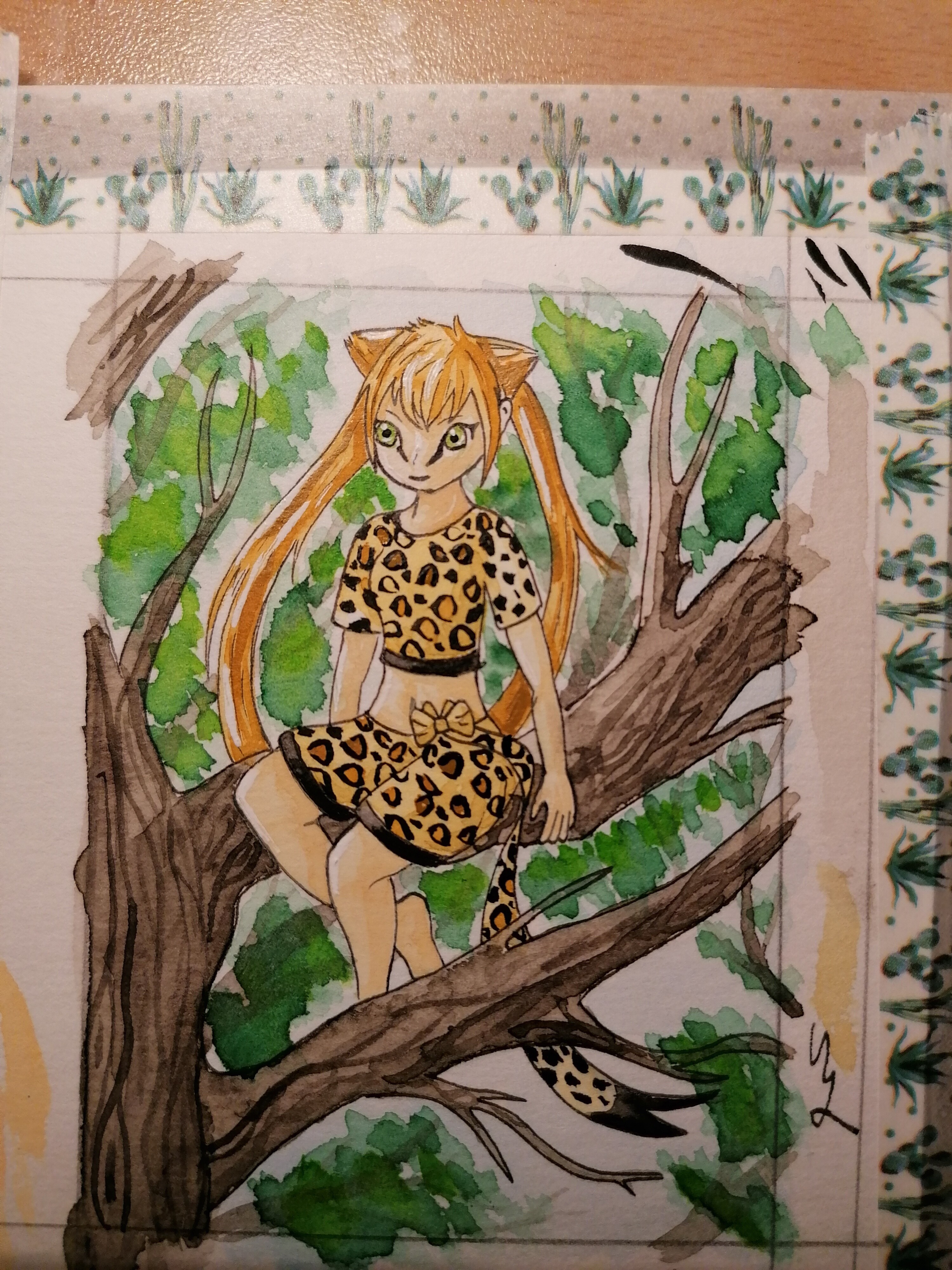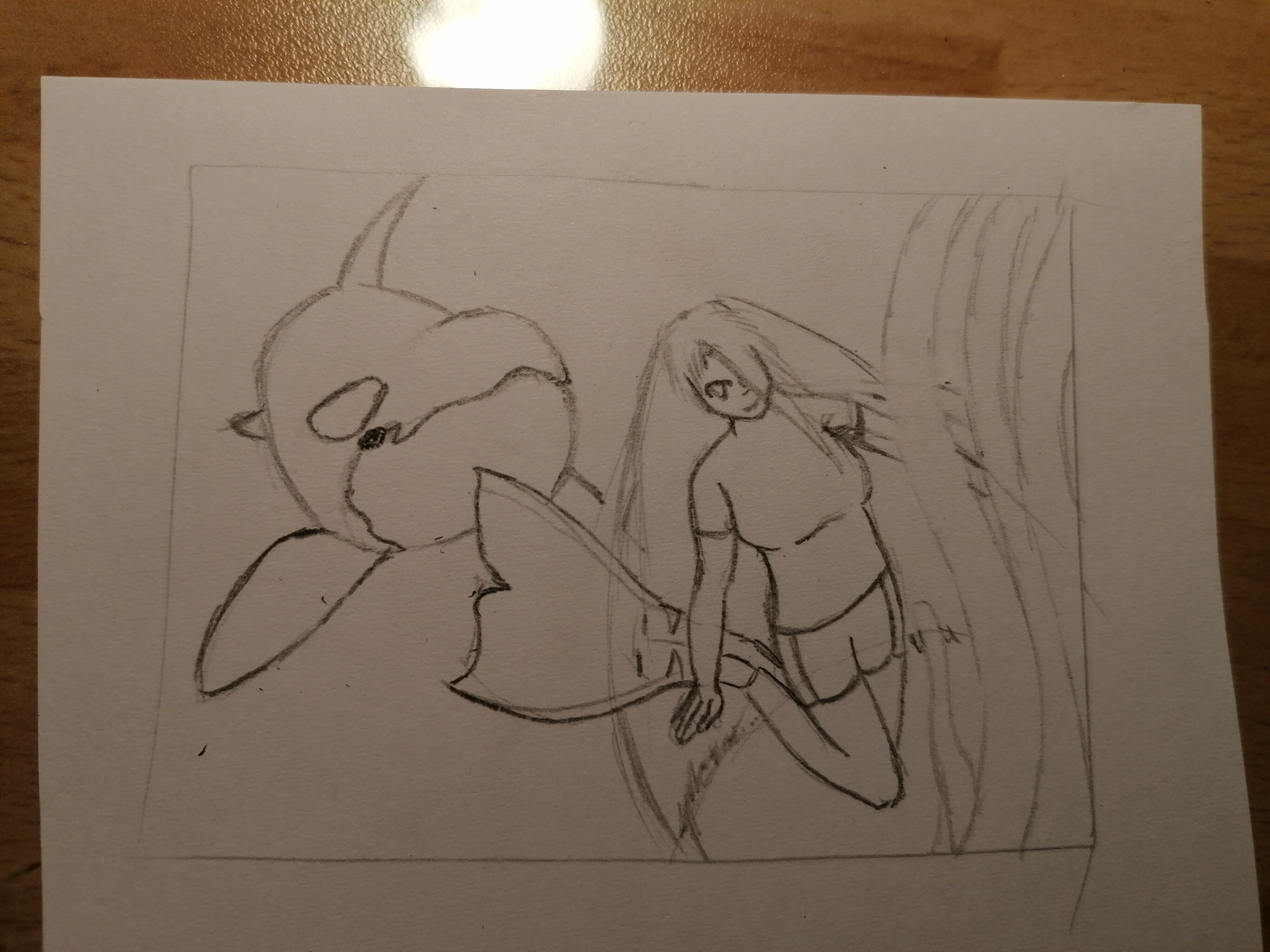 Ich hab hier noch 2 sehr grobe Skizzen. Einmal ein Leopardenmädchen beim chillen auf einem Baum und ein Orcamädchen beim Apnoetauchen