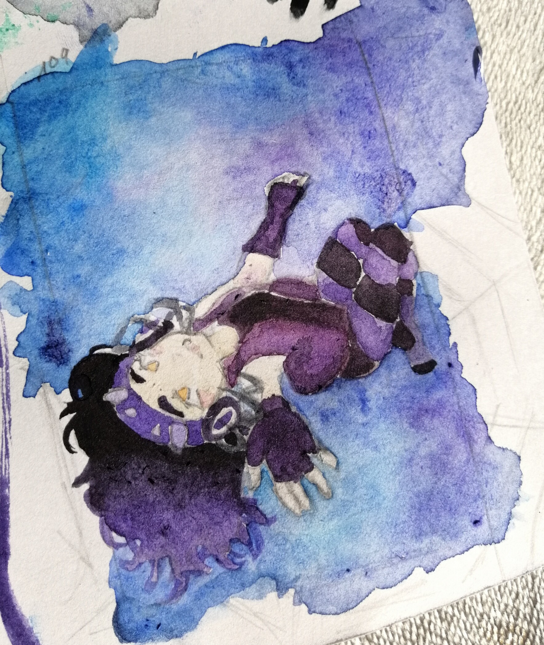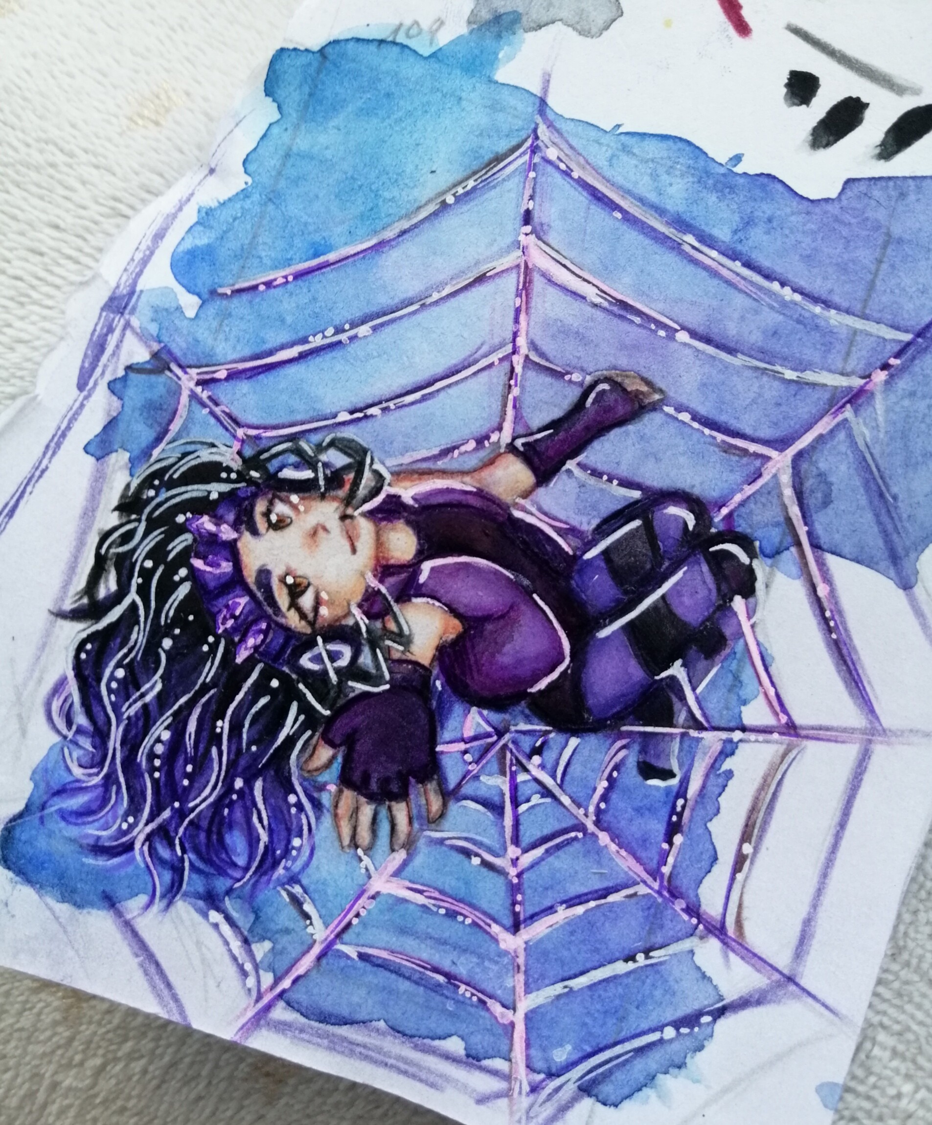 Hättet ihr irgendwelche Ideen für den Hintergrund? Ich bin mir echt nicht sicher ob ich noch dunkle Grashalme oder Bäume im Hintergrund hinzufügen soll, da ich mir dachte, dass sich das Spinnenmädchen im Wald befindet… Jedoch möchte ich das Bild nicht ruinieren, weswegen ich fragen wollte, ob der Farbverlauf auch in Ordnung wäre. Das Spinnennetz wird so oder so noch hinzugefügt.