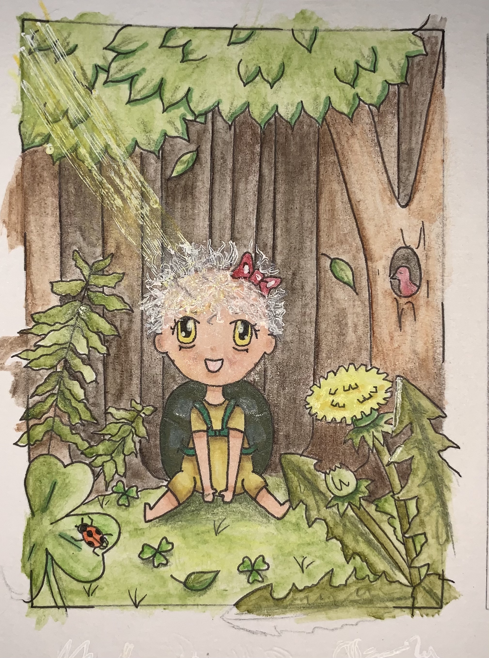 Bei der Karte fehlen jetzt nur noch Nachbearbeitungen mit weißem gel und ihre Haare werden noch weißer.