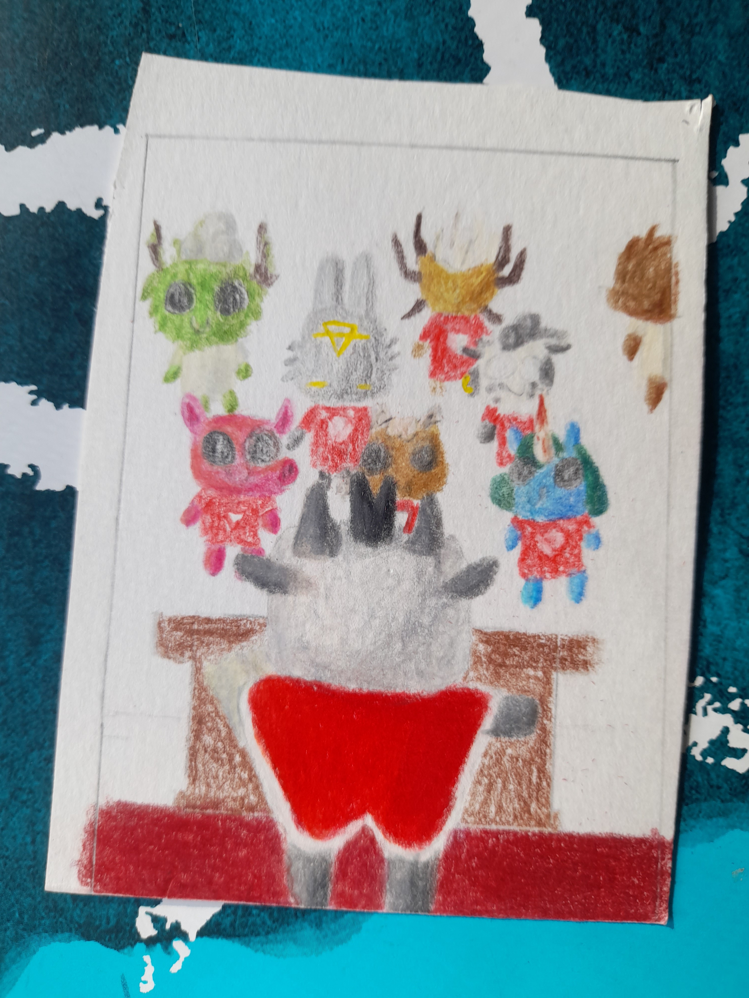 Mit meiner nächsten karte bin ich etwas unsicher. Ich habe mich für Ooblets entschieden. Das Spiel ist sehr sehr farbenfroh, hat aber keine Schattierungen. Um meine Karte dem Stil anzupassen,habe ich ebenfalls keine Schattierungen gemacht. Ganz ohne Lines sah es aber total unfertig und völlig platt aus, weswegen ich wenigstens weiße Lines gemacht habe.