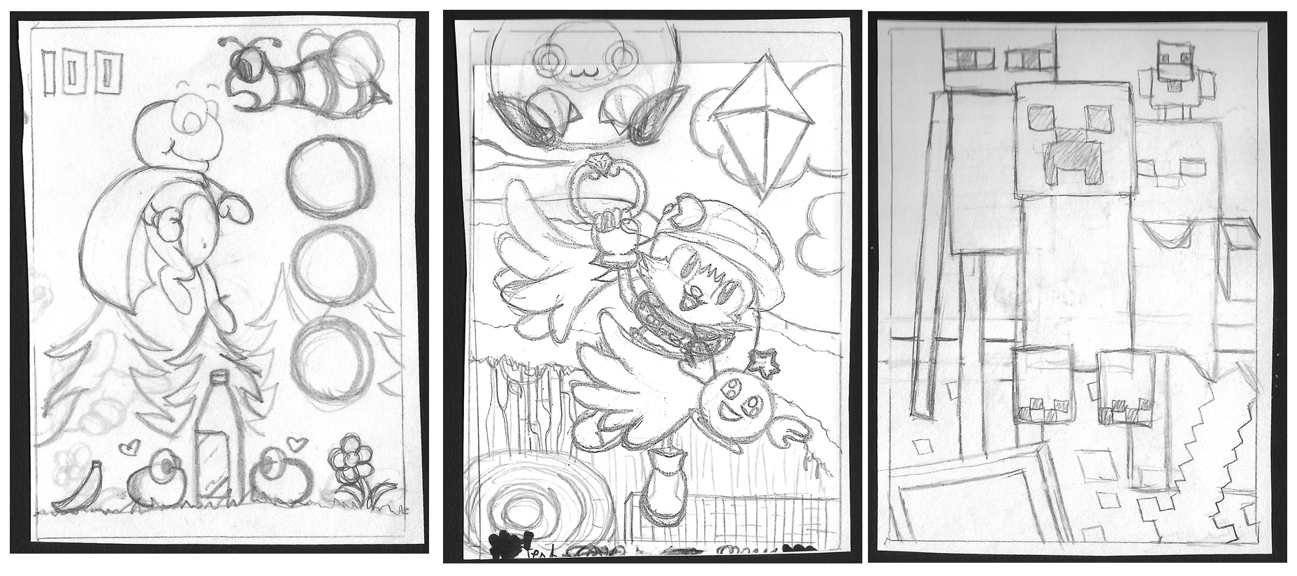 So, es ist geschafft. Die Anmeldung ist raus und möchte schon mal die Skizzen zeigen, die schon vor einer Weile entstanden sind. ^-^ Die dritte ganz rechts ist noch ungewiss, ob ich sie schaffen werde. Also da hängt noch ein Fragezeichen dran. Die erste ganz links ist schon fertig und die in der Mitte bekommt gerade ihre Koloration. ^-^