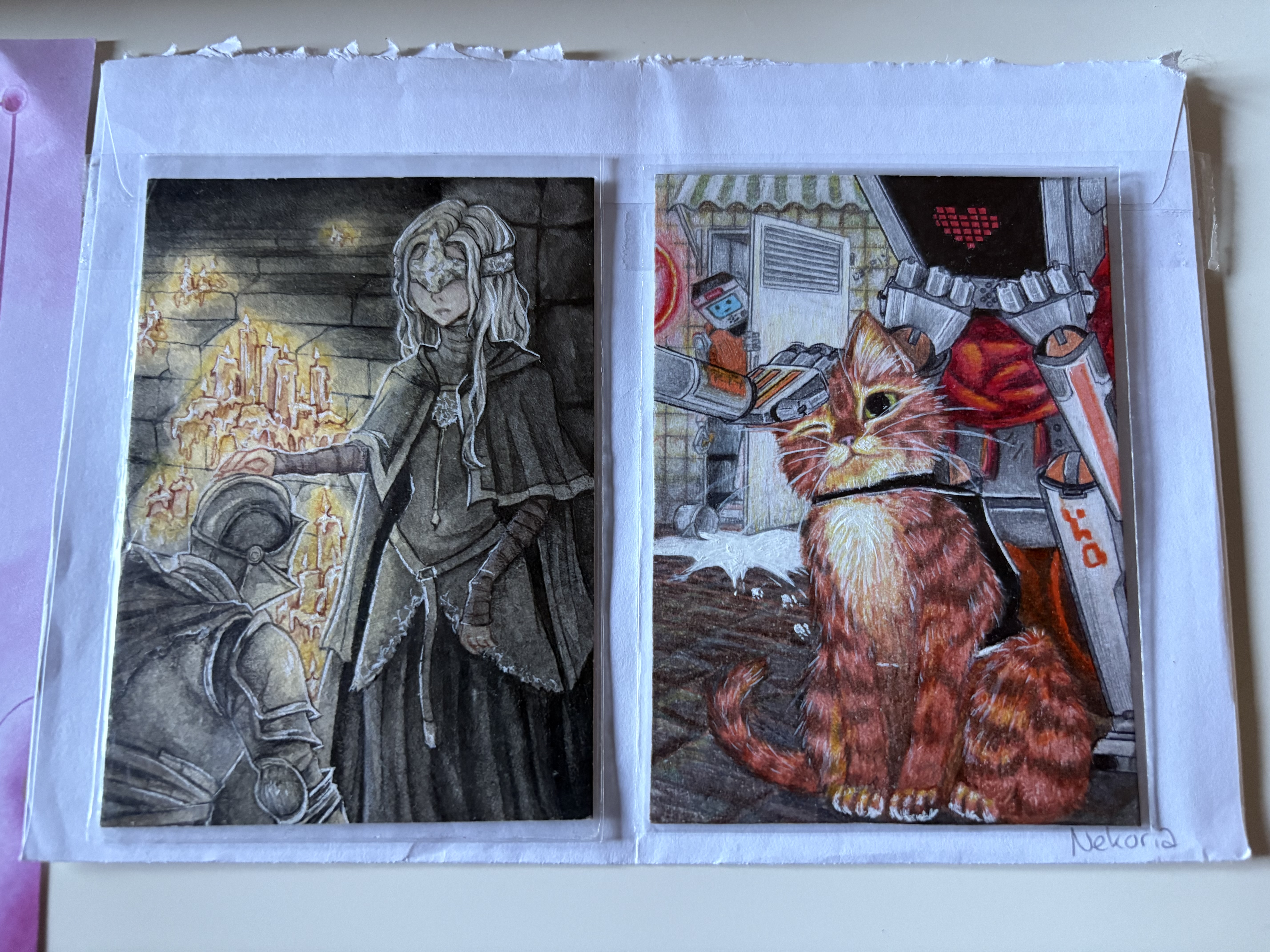 und zu guter Letzt die karte von @Klesk die mich wirklich überrascht hat, ich kenne das spiel gar nicht, ich bin von der color und der Aufmachung doch recht begeistert und frage mich was für Farben du benutzt hast? ich freue mich jedenfalls sie nun mein eigen nennen zu dürfen.