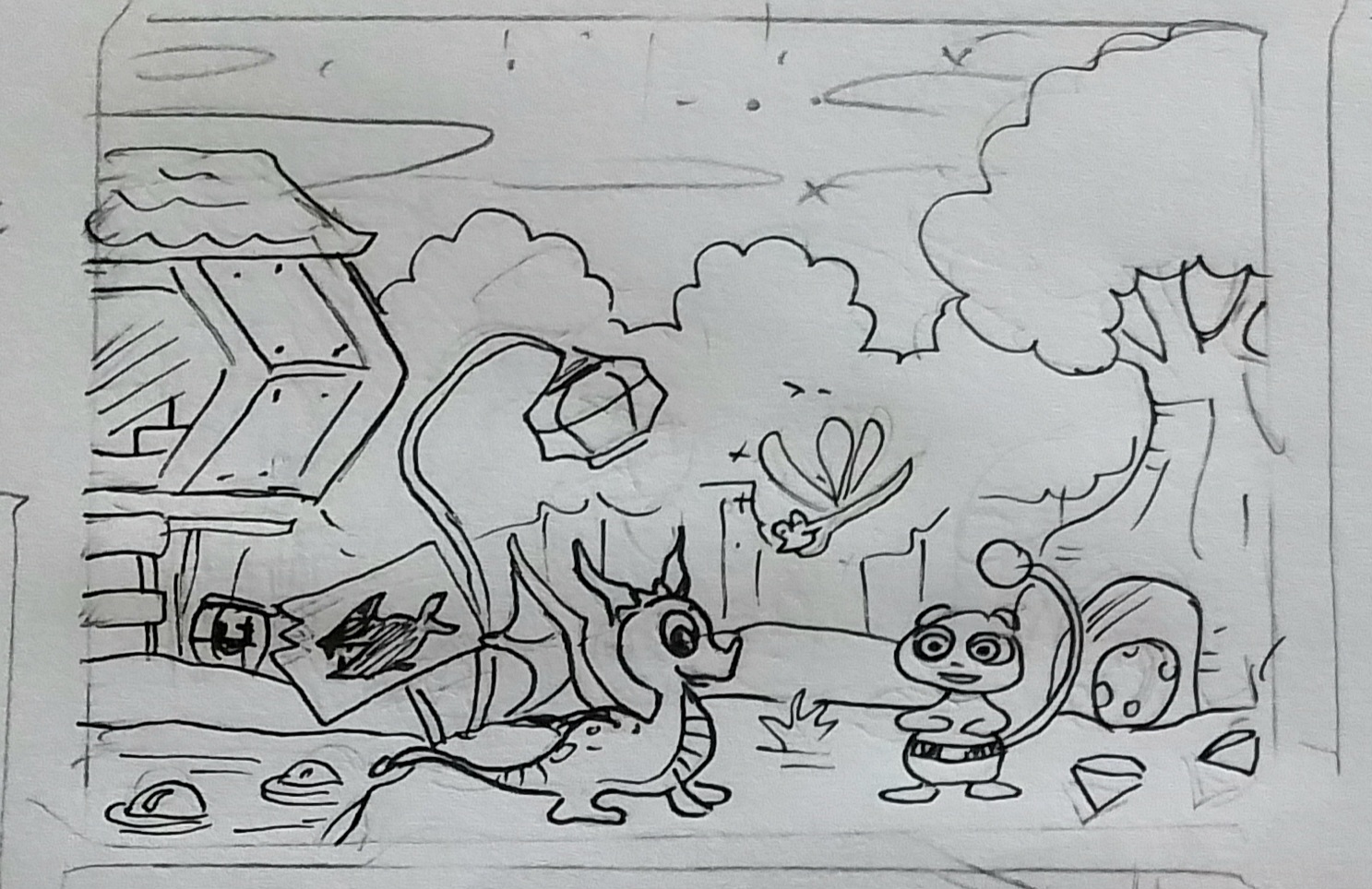 Ich habe mal etwas grob skizziert zu Spyro 3. <3 Ich habe das Spiel früher sehr oft gespielt :) und hier ist eine Skizze zu Spukende Sümpfe, die Atmosphäre fand ich dort so toll. ^^