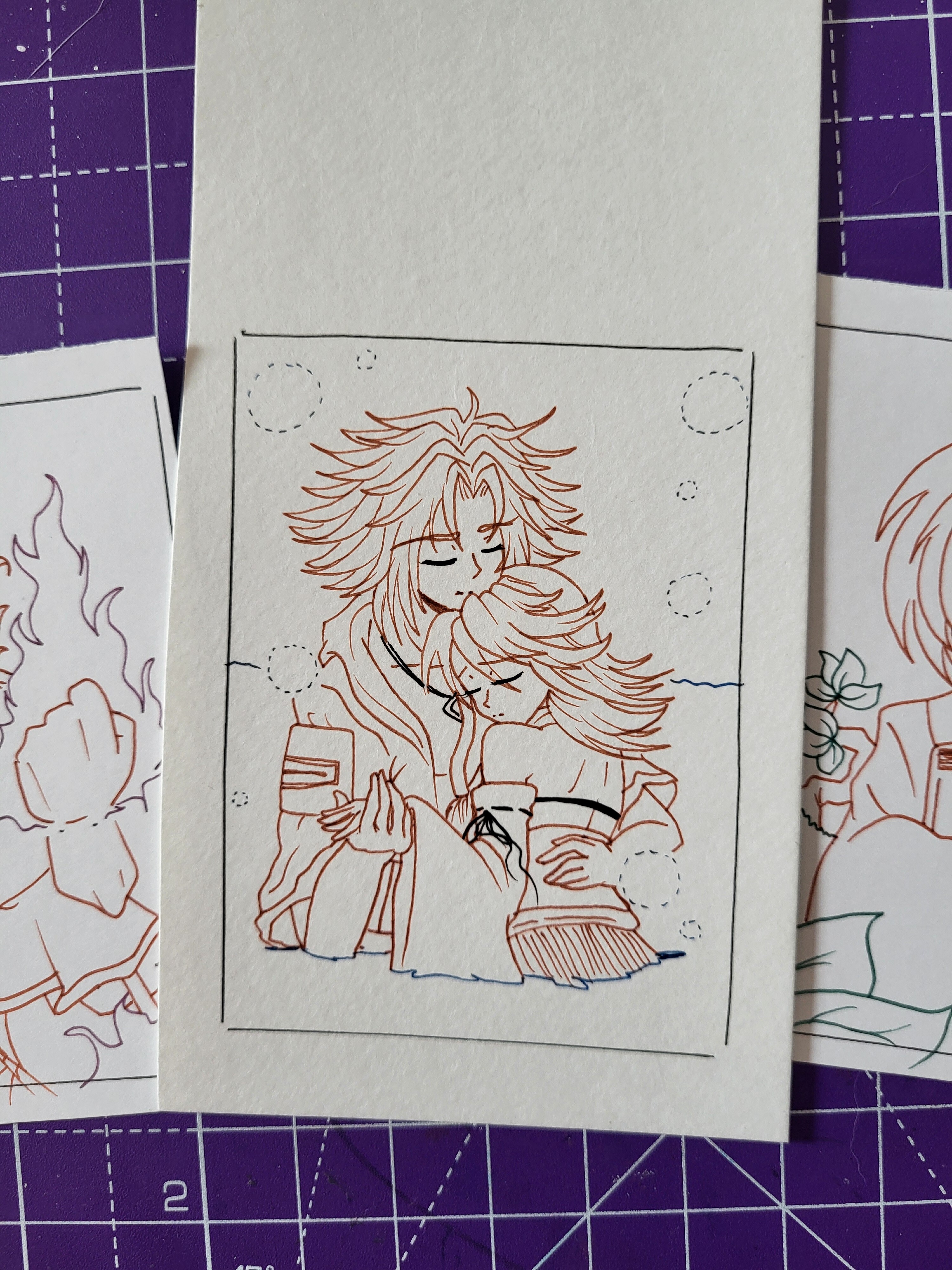 Mit outliner ziehen von Final Fantasy X bin ich fertig und morgen geht’s mit Coloring los😁 Bin irgendwie auf Kakao-Karte Fieber😚