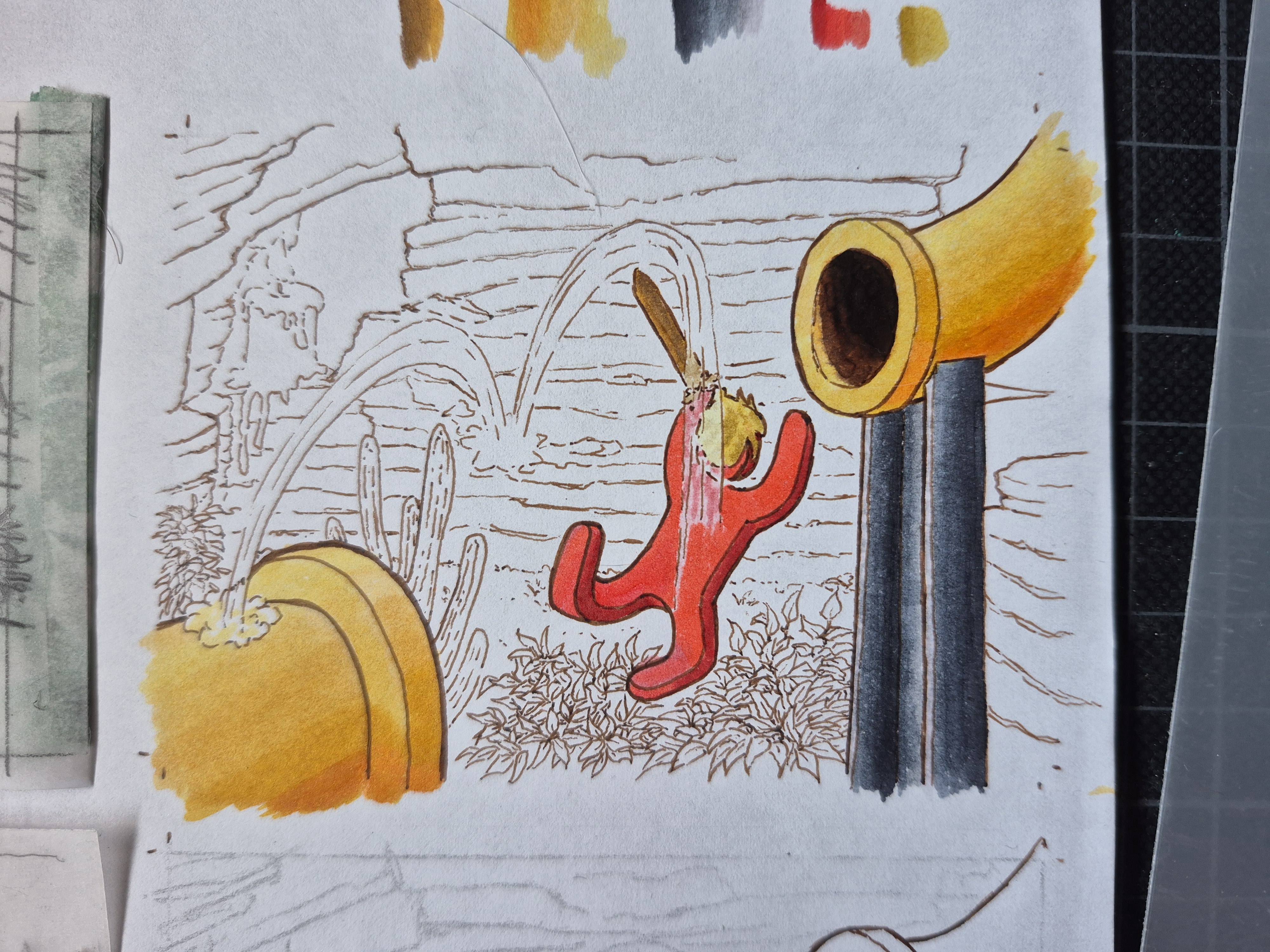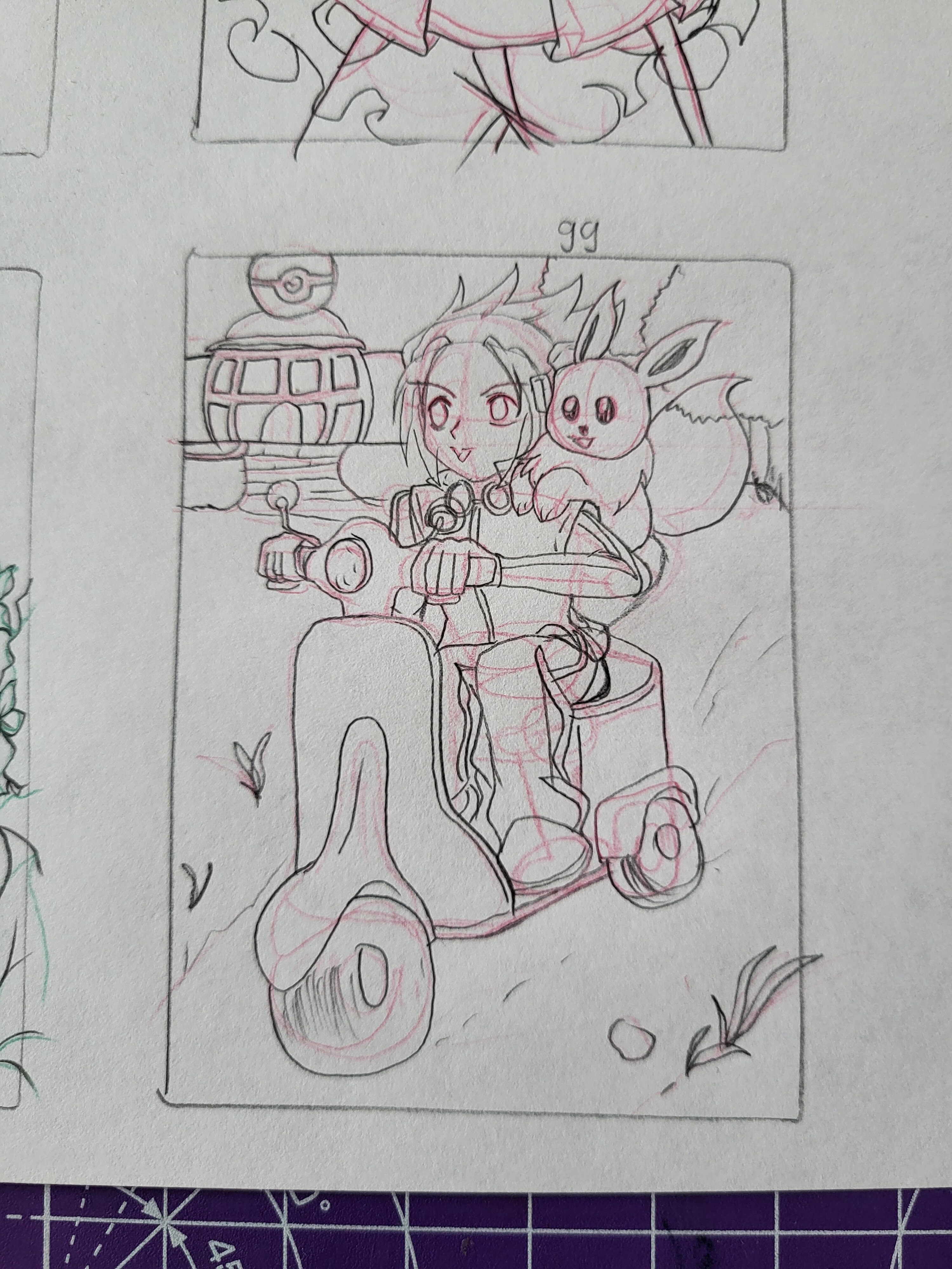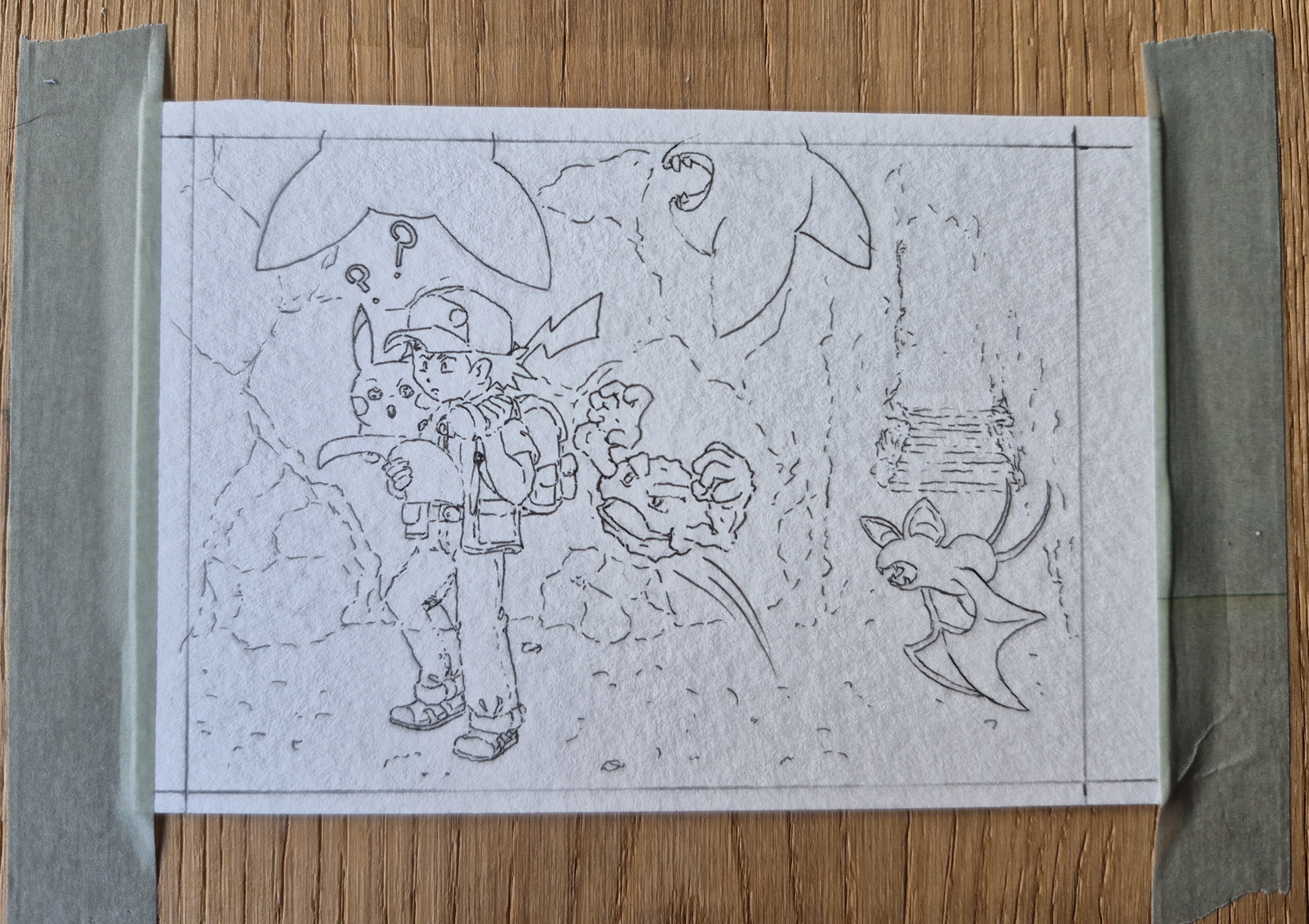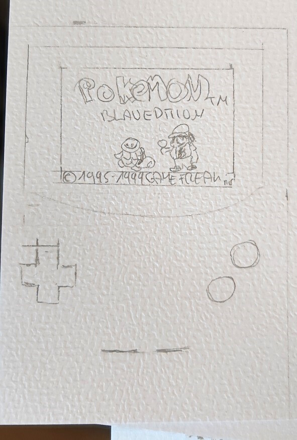 Da fehlt natürlich noch Farbe und die richtige Ausarbeitung… Ich wollte eine Karte malen, die ein Gameboy ist, wo man grade die blaue Pokemonedition startet. Allerdings ist alles abgezeichnet und naja…
