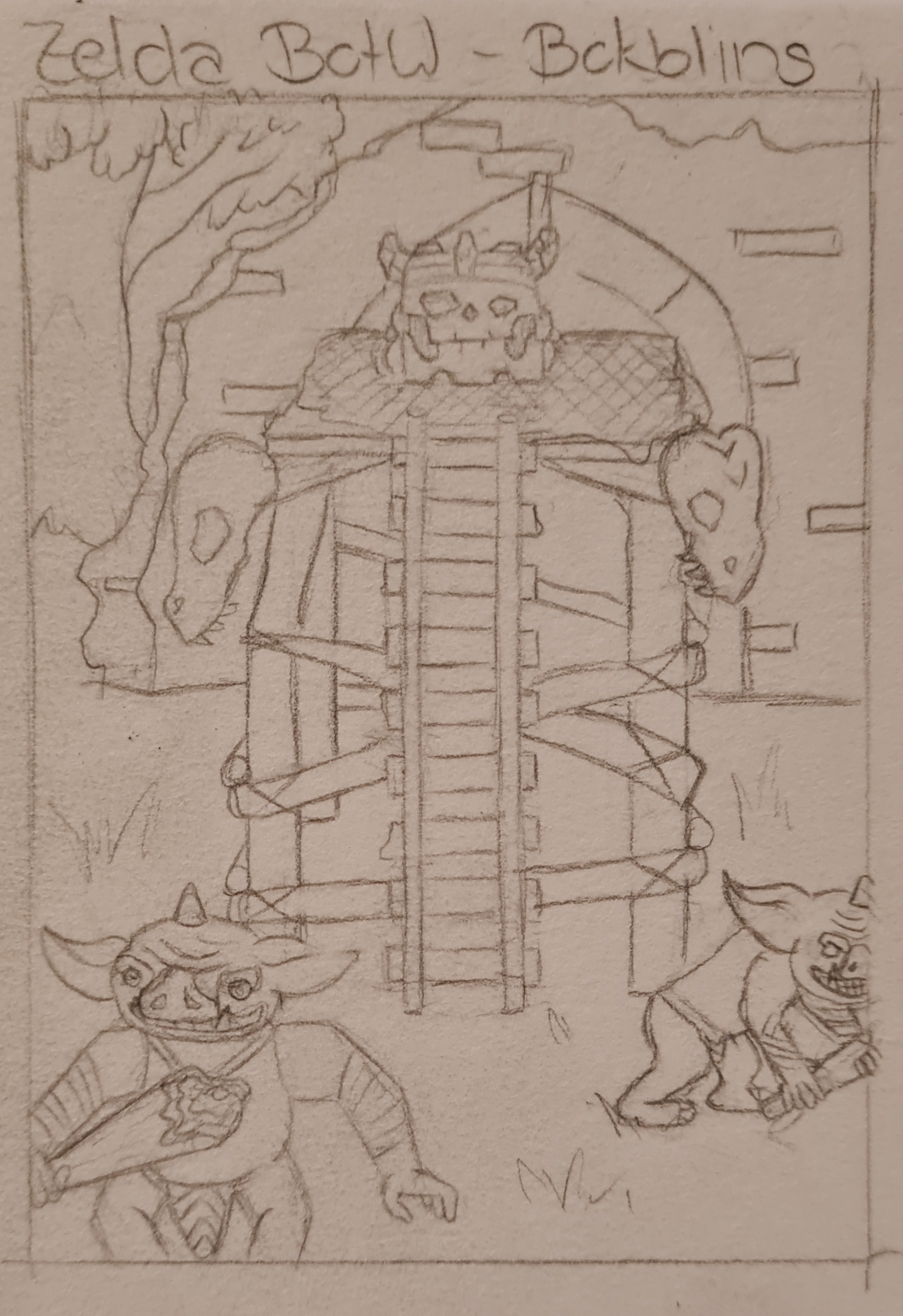 Und die zweite Skizze wäre zum Spiel Zelda Breath of the Wild. Ein paar Bokblins die ihre Schatztruhe bewachen