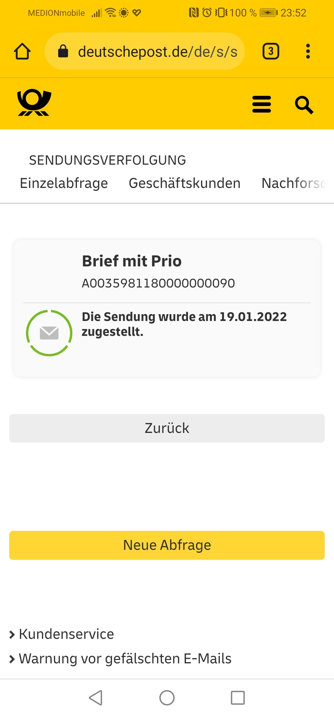 EDIT: Brief war schon längst angekommen. Ich war nur verpeilt!