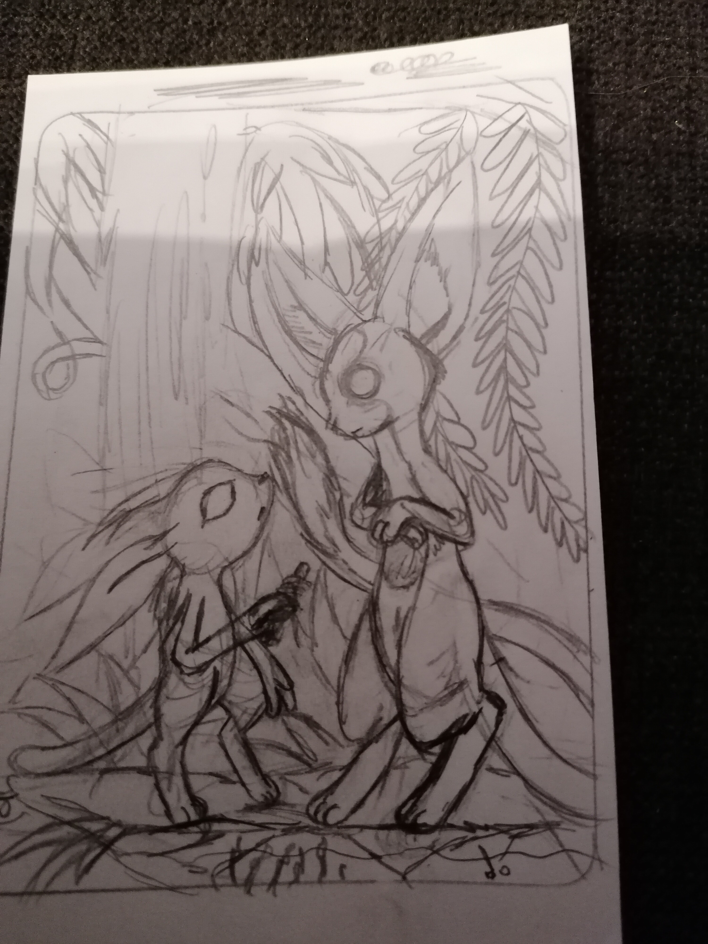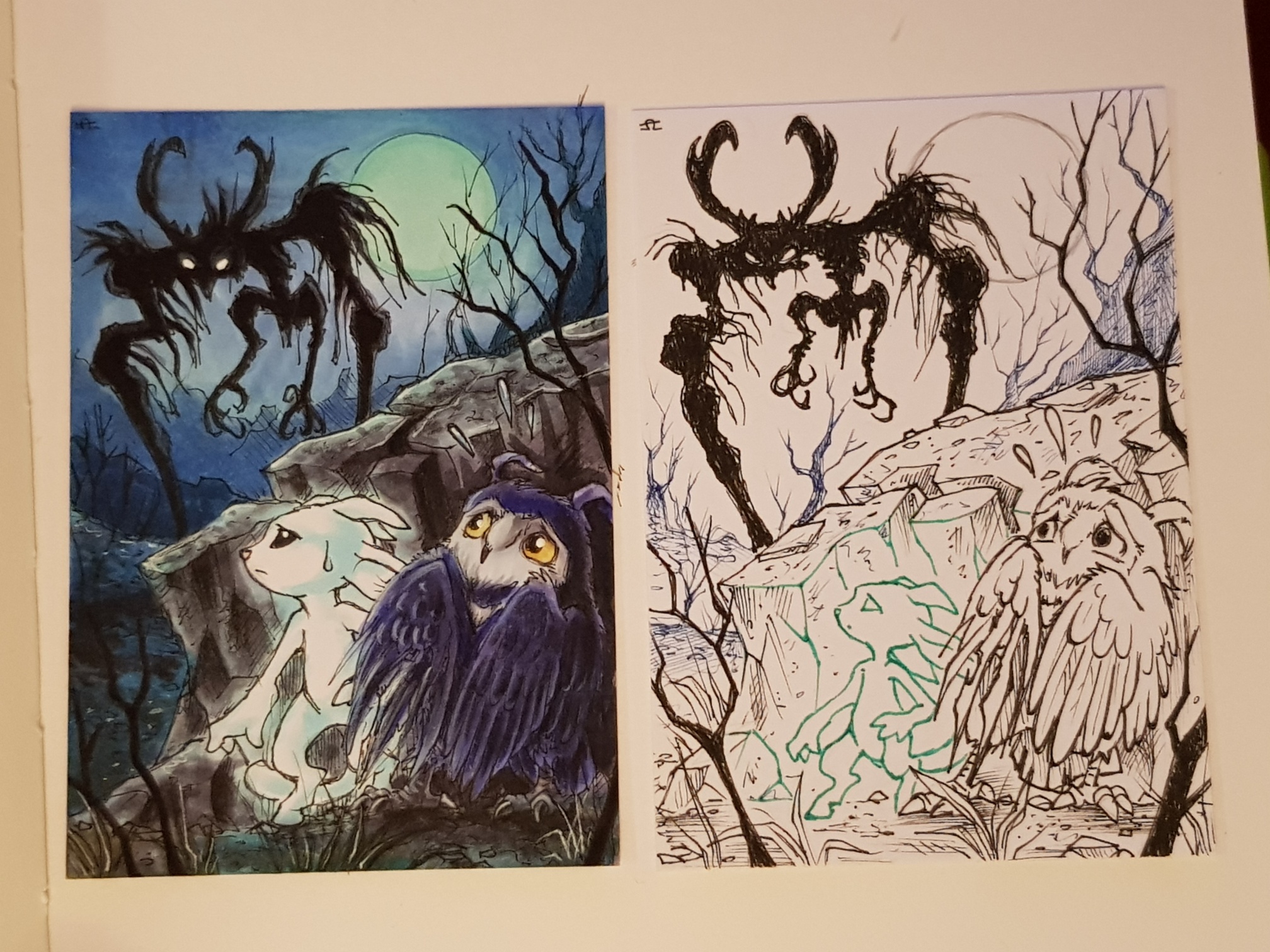 Ui, cooles Motiv, wenn auch beängstigend, wenn man mit Ori und Ku mitfiebert! Die andere Skizzen sehen aber auch toll aus. Bin gespannt, was es am Ende wird :D