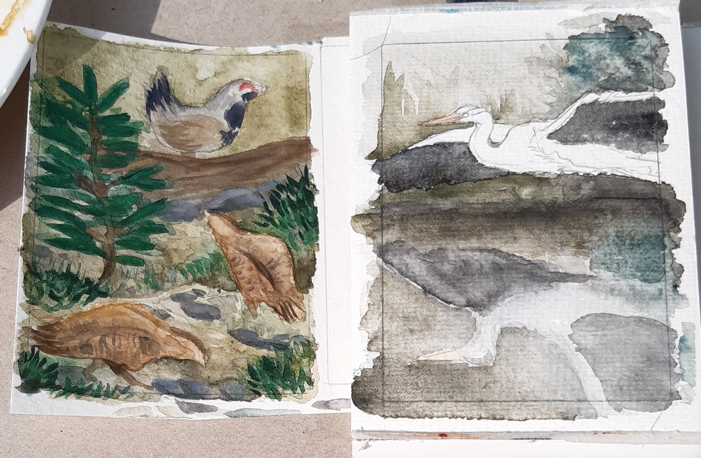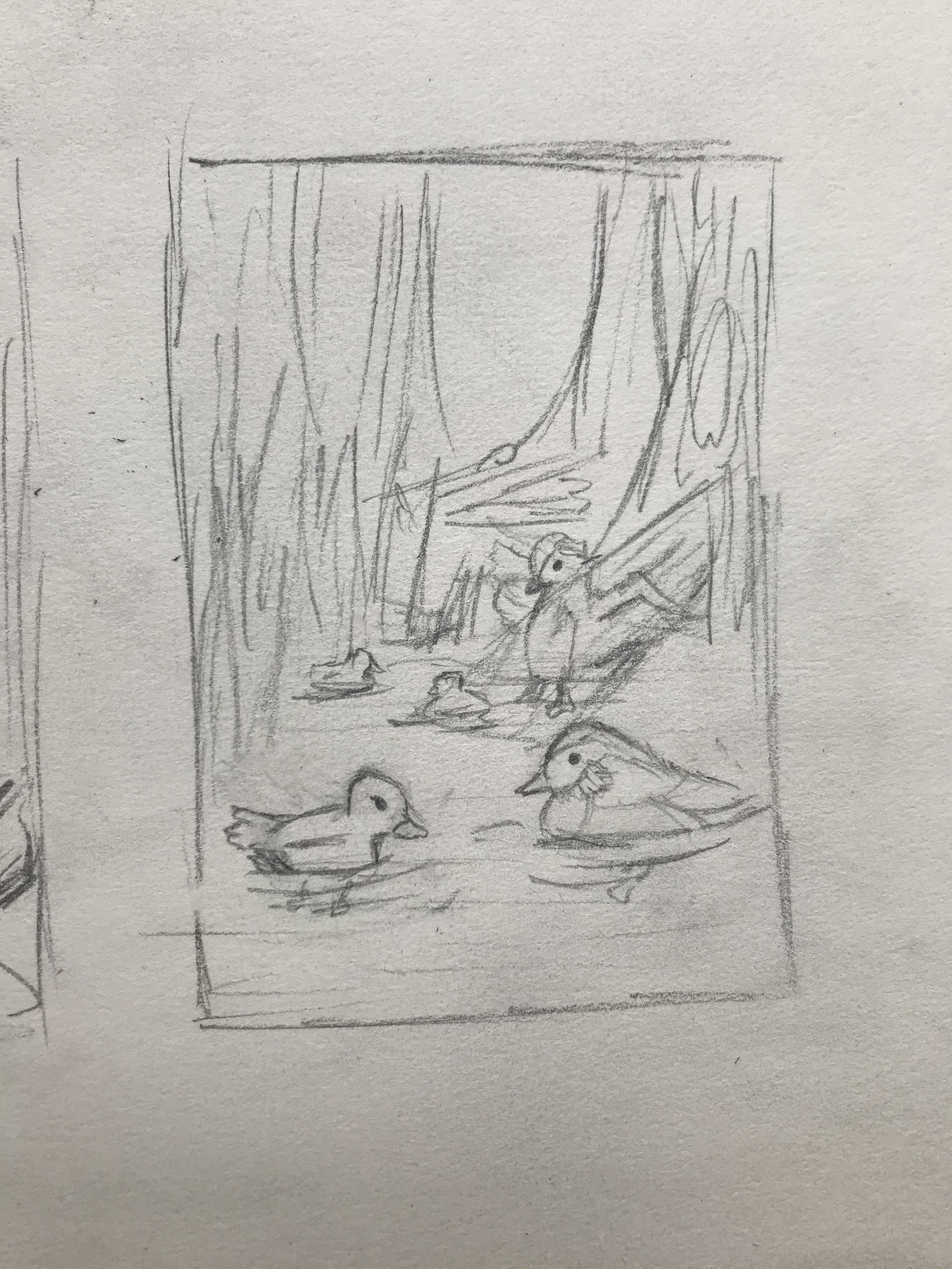 Die Skizzen sind schon sehr schön. Die Mandarinenten finde ich besonders spannend, da ja hier auch das Landschaftliche auch gut in Szene gesetzt werden würde mit den Bäumen und Gräsern.