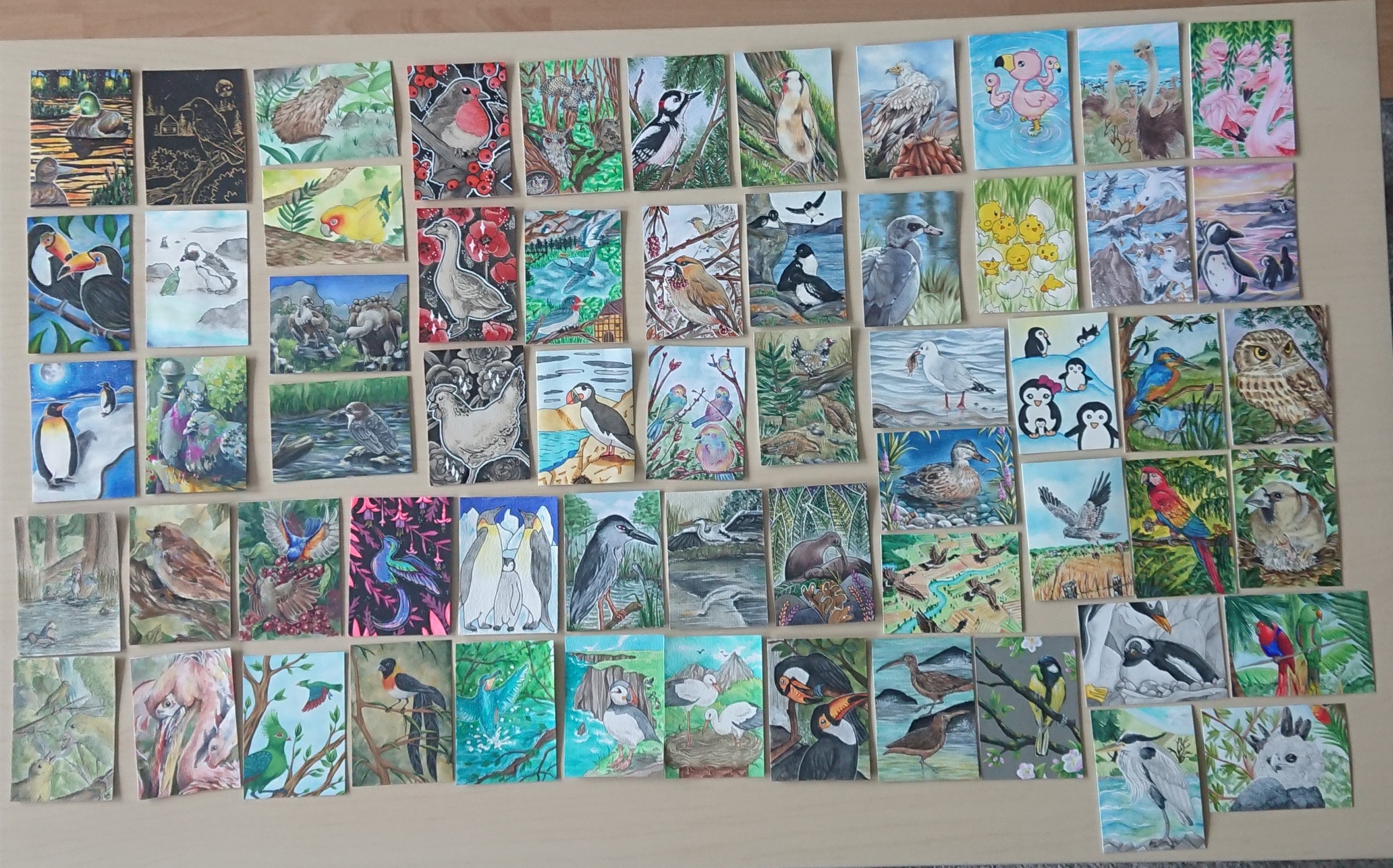 Wie schön, dass noch so viele neue hübsche Karten in Arbeit sind. <3 Ich finde auch die neue Version des Papageientauchers gut gelungen. Die Eulen sind auch toll, besonders süß ist die kleine, die ganz schüchtern aus der Baumhöhle guckt, so süß! Die Karte mit den Stockenten und den Lichtern hat es mir besonders angetan. Schade dass die Meise nicht die richtigen Maße hat. ^^