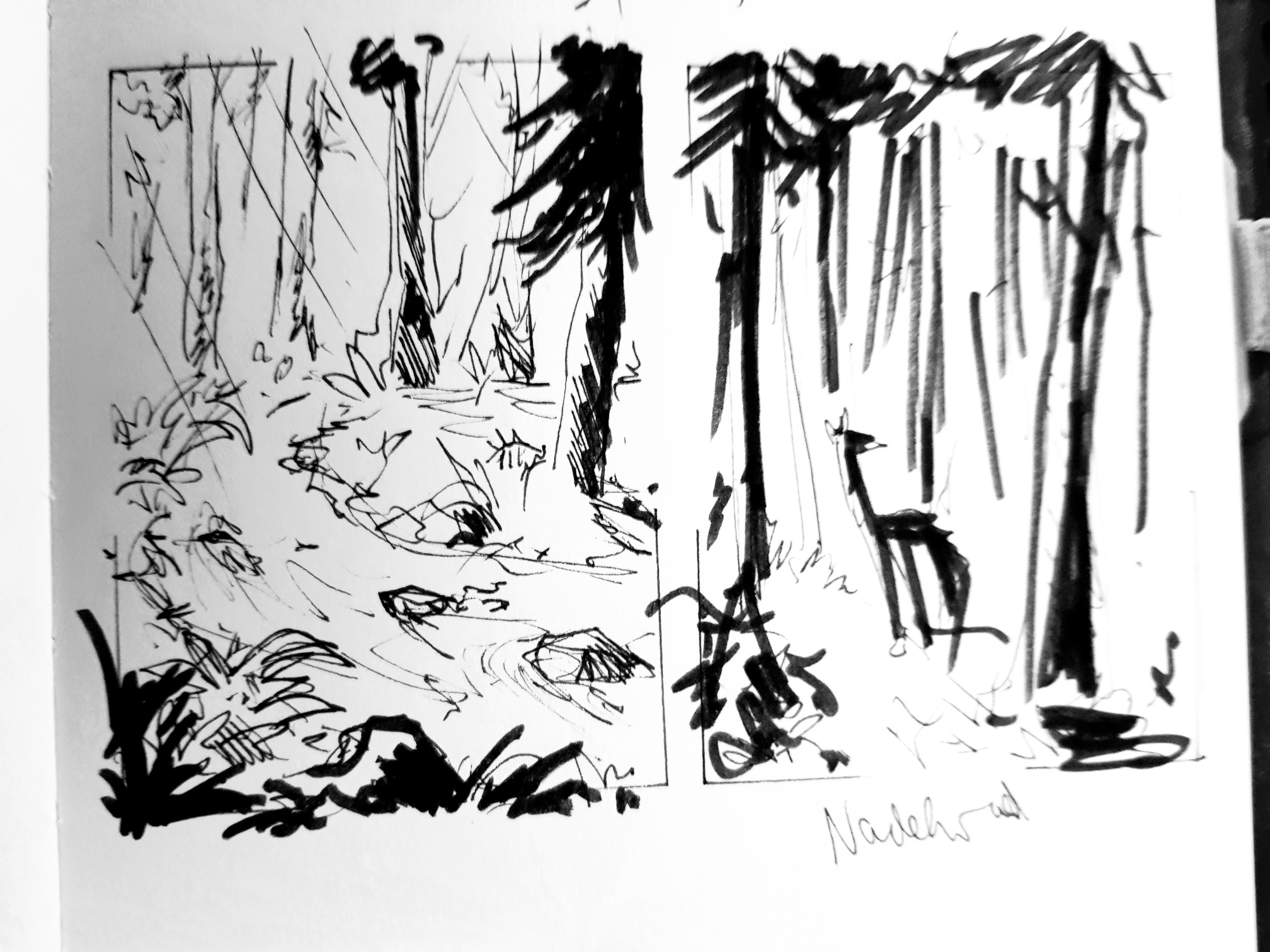 Sehr schöne Skizzen :D Die verschiedenen Waldelemente sind toll kombiniert und schön abwechslungsreich ^^