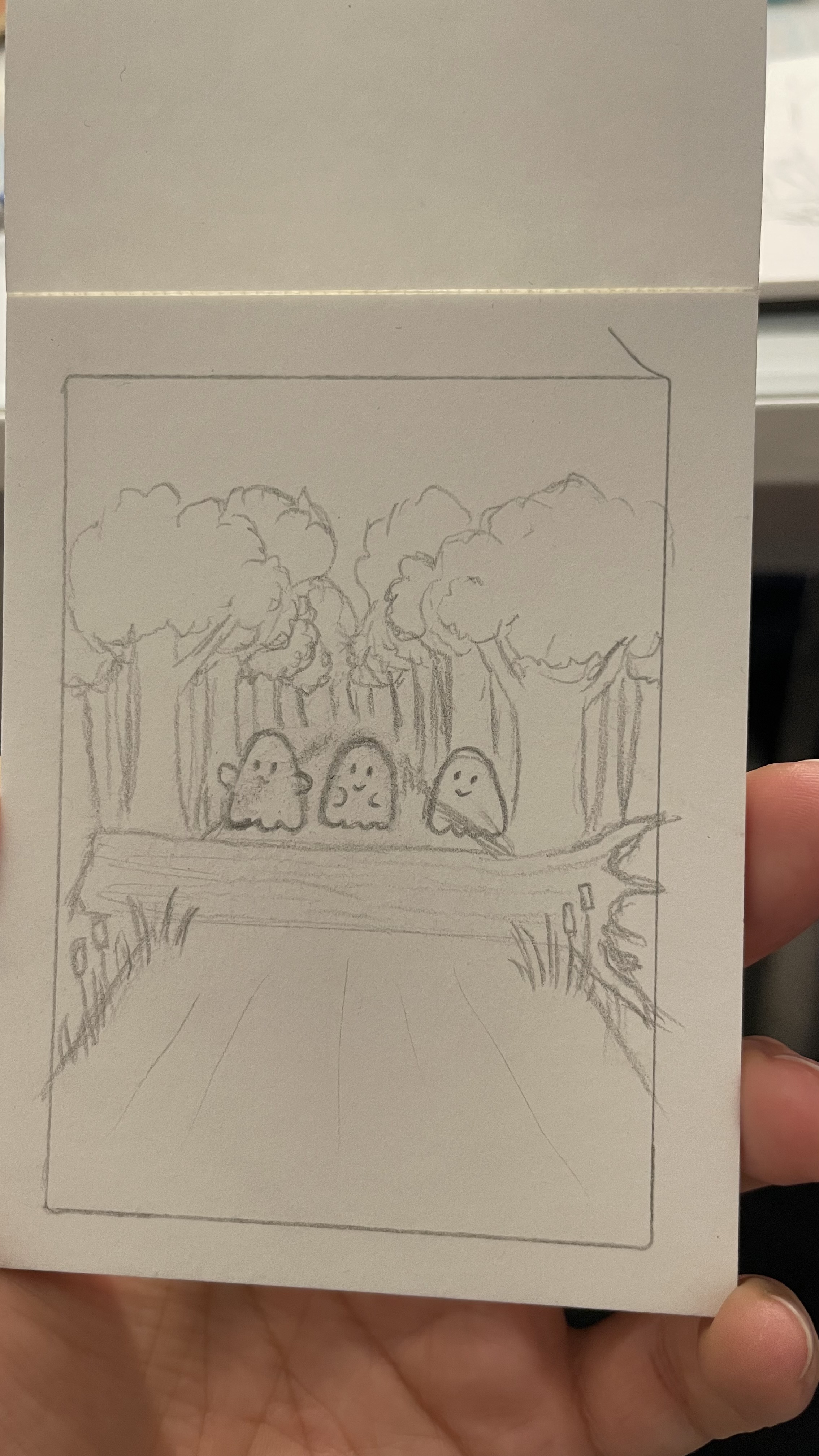 Ich sitze noch an meiner zweiten und dritten Karte. Das wäre meine dritte Skizze ^^ eine kleiner Geisterwald