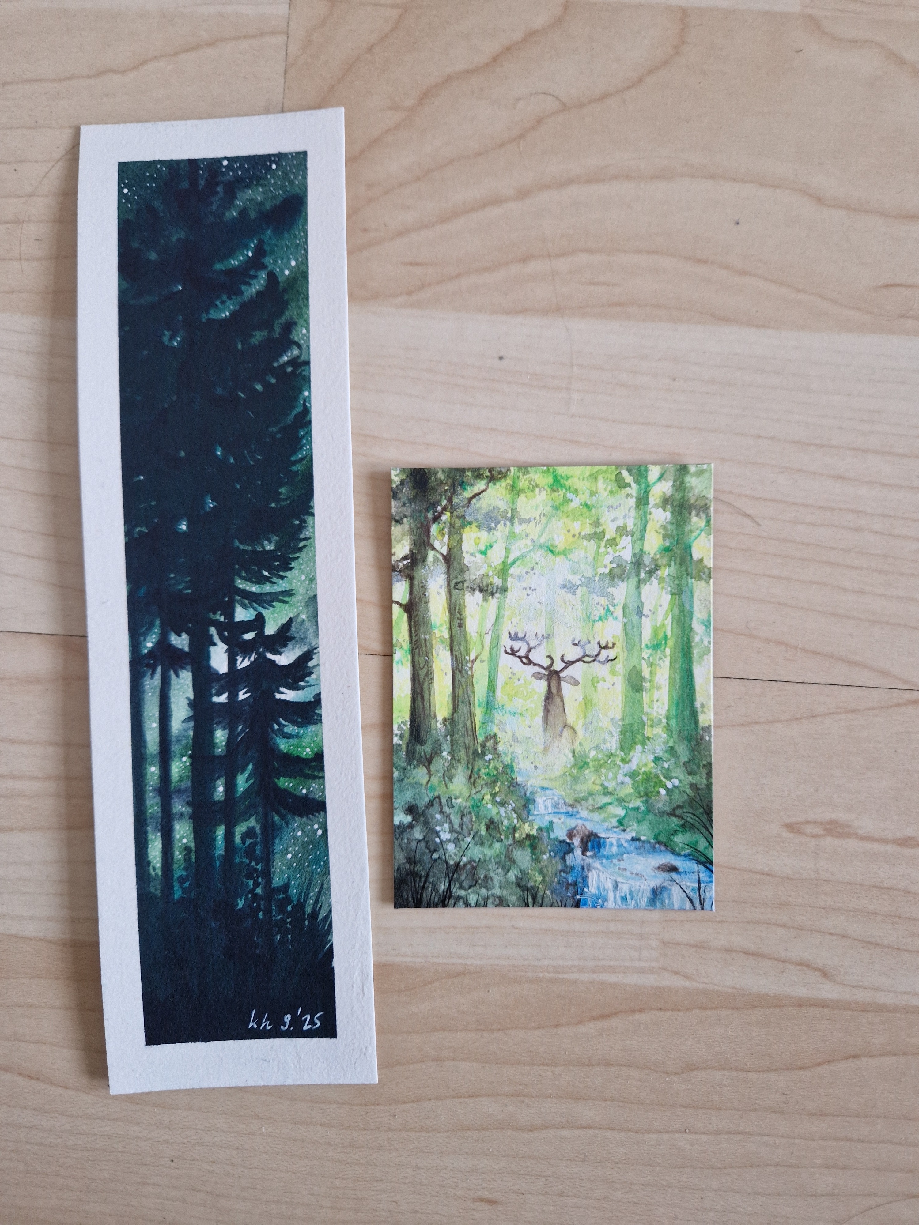 Für den rechten Wald würde ich ein paar winzige “m” - förmige Vogelsilhouetten einfügen, quasi Krähen im Flug in weiter Ferne. Das fände ich schön.