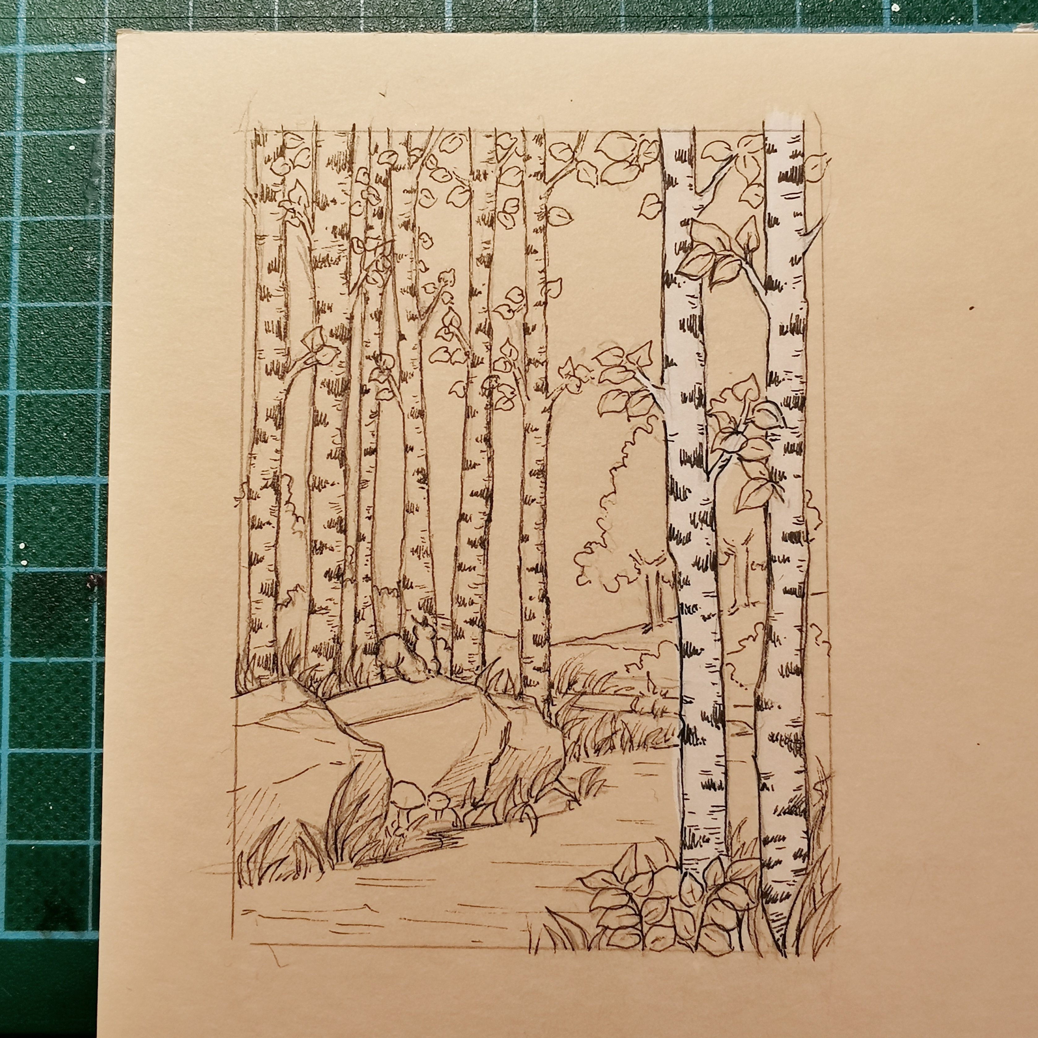 Ich finde die Karte auch sehr schön und würde vorschlagen, dass Du vielleicht noch etwas ganz eigenes mit einbringst, dass sie dann deutlich von der Vorlage unterscheidet. Vielleicht ein paar schöne Pilze an den Bäumen, Lichtstrahlen, ein paar Äste auf denen ein Vogel sitzt.