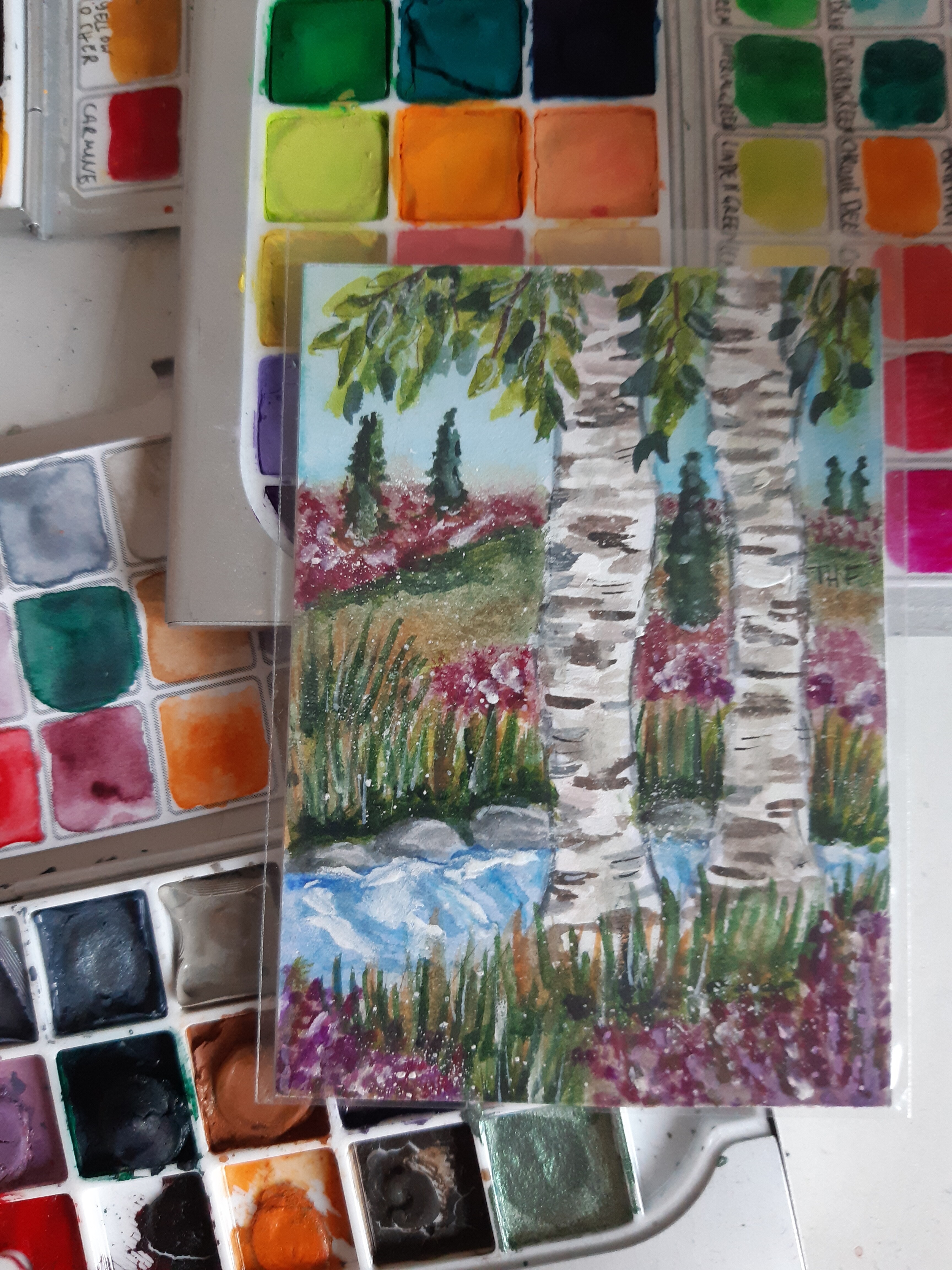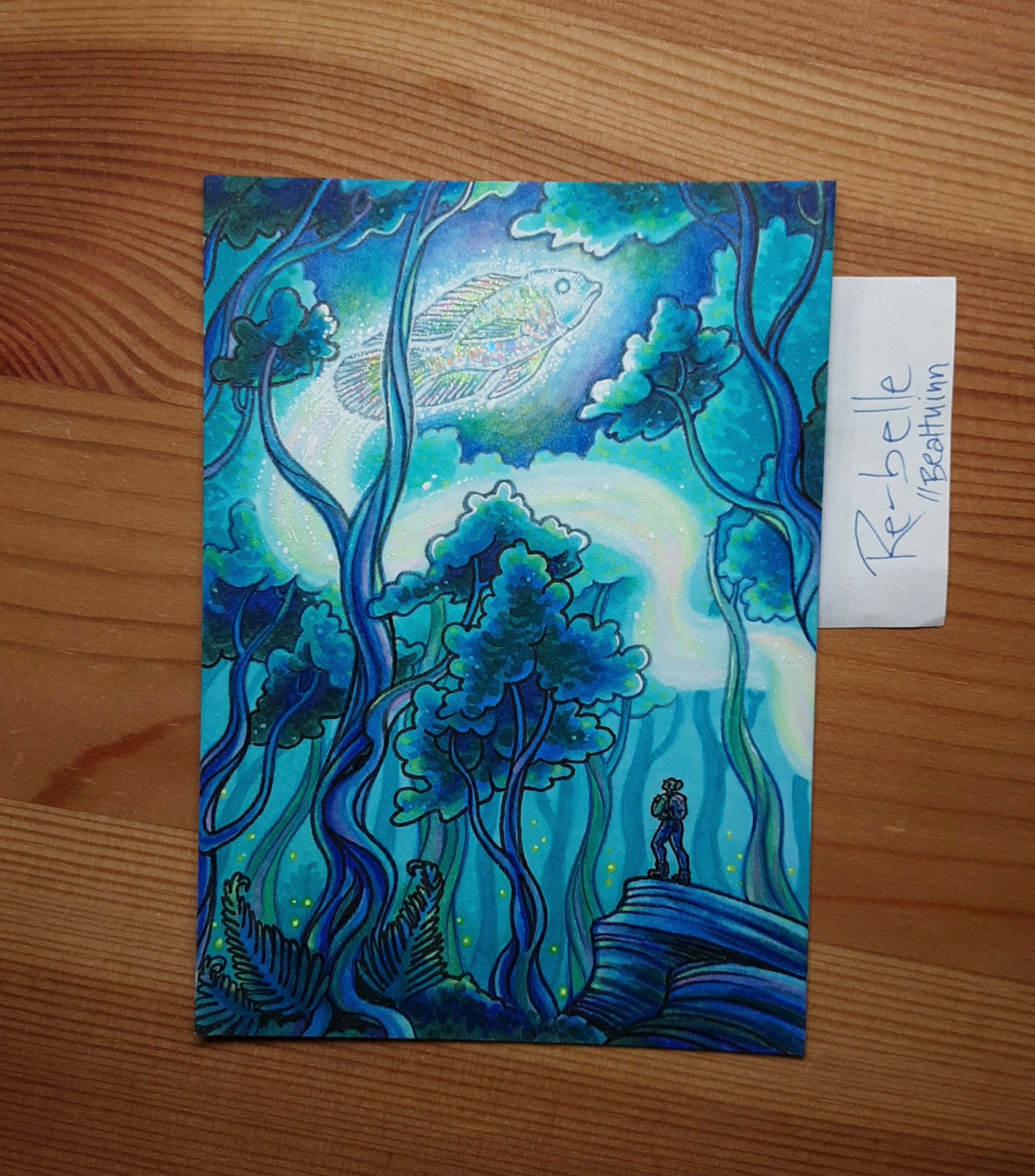 Hier mein aktueller Stand für meine zweite Karte. Ich bin noch unerfahren mit Acryl. Einige Stellen werde ich noch überarbeiten. Wollte mir aber vorab schonmal ein Feedback abhören, insbesondere weil ich mich sehr stark an eine Vorlage gehalten habe, wobei das Original nicht mir gehört: