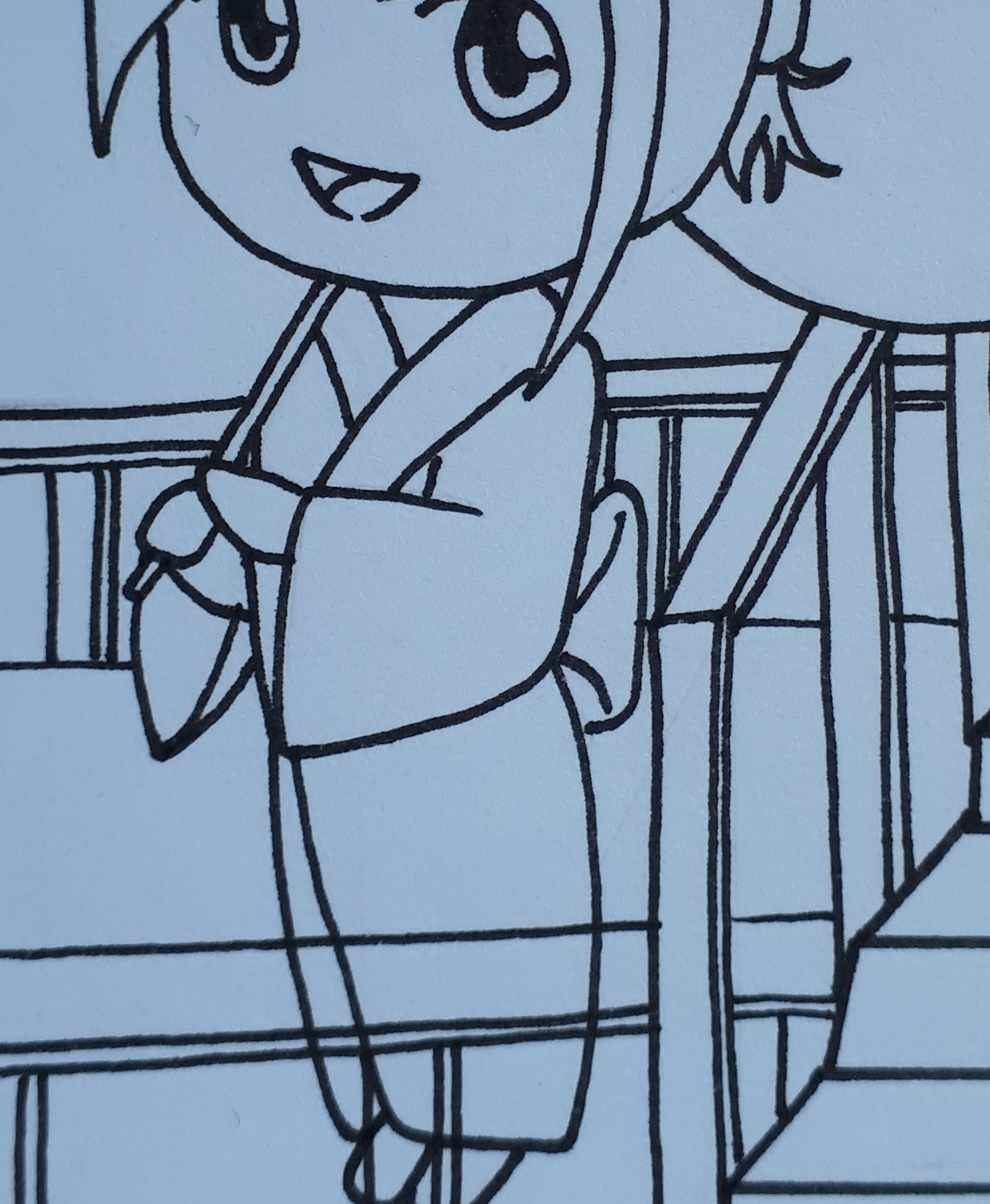 Ich bitte darum, dass die Oulines neu gezeichnet werden. Einfach wenn kein Leuchttisch vorhanden ist vor das Fenster halten und durchpausen. Denn Deckweiß ist für mich keine qualitative Lösung.