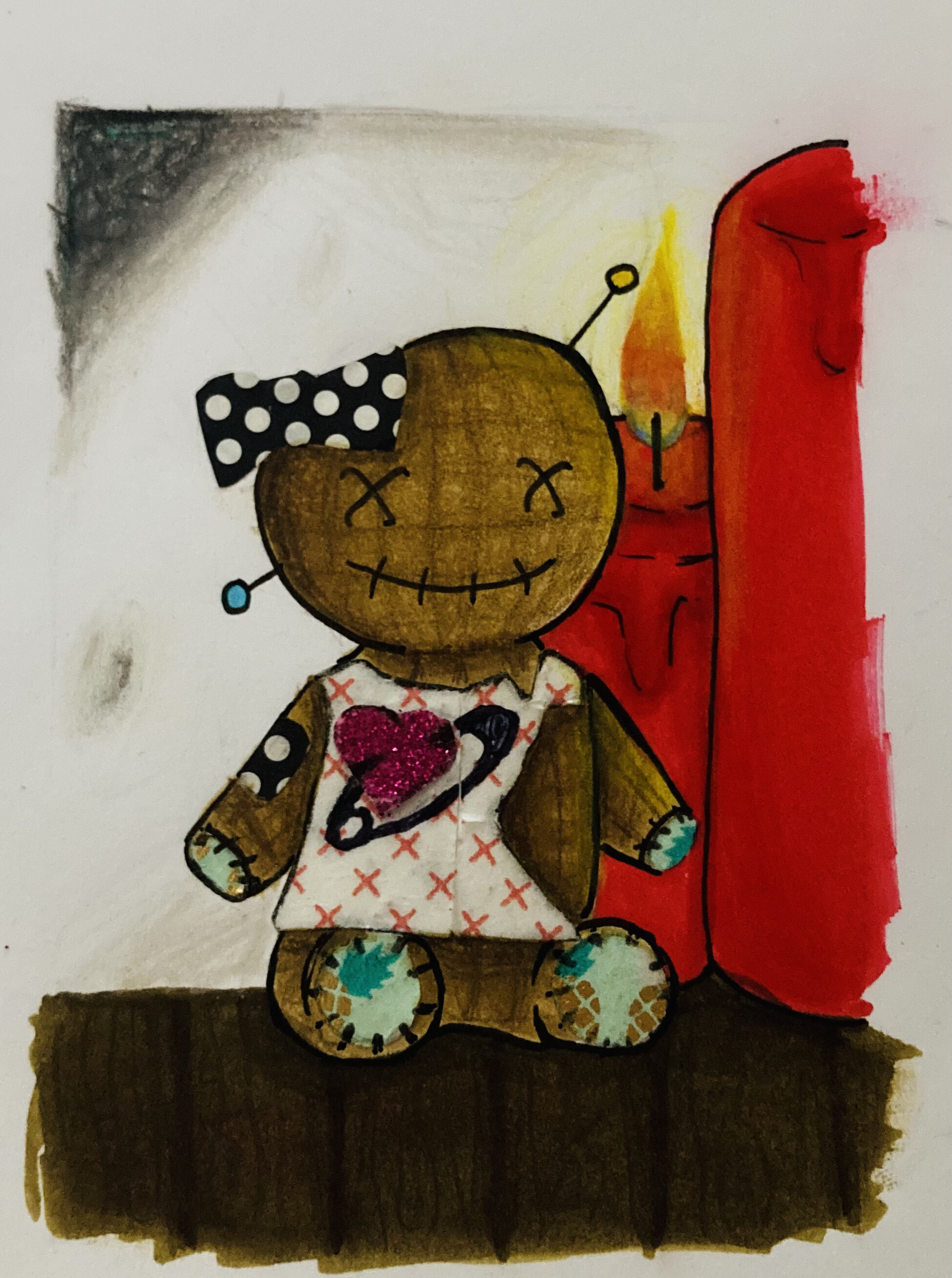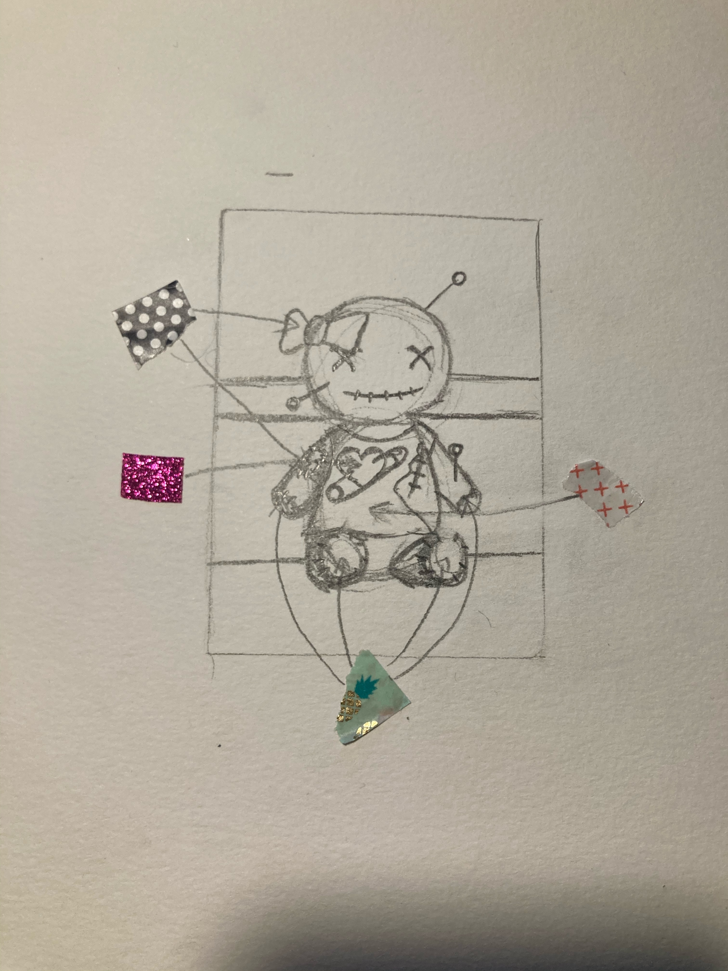 Hier ist die Skizze für meine zweite Karte! Ich hoffe sie gefällt euch! XD Die Idee kam mir als ich den Song Dollhouse von Melanie Martinez gehört hab UwU