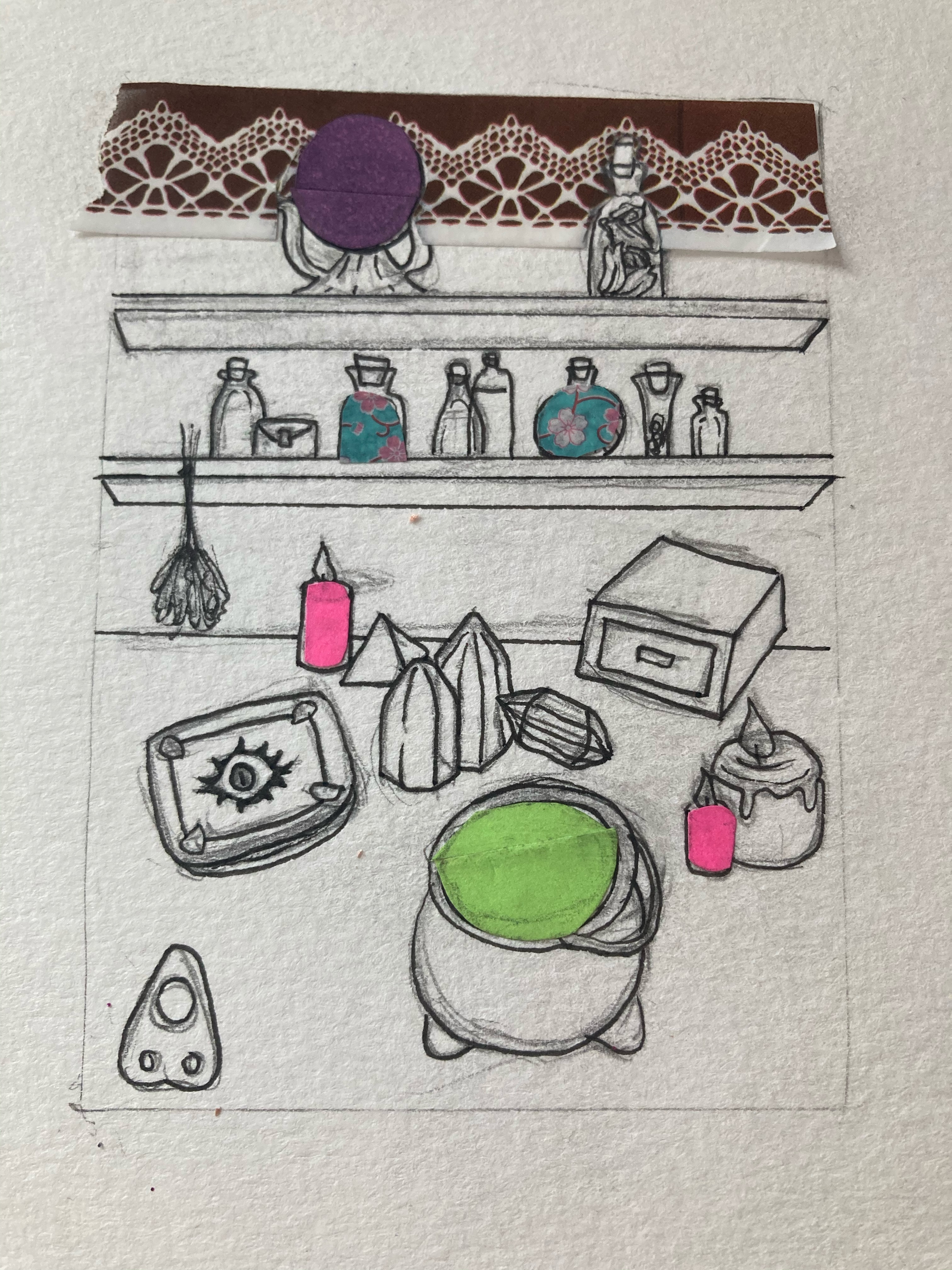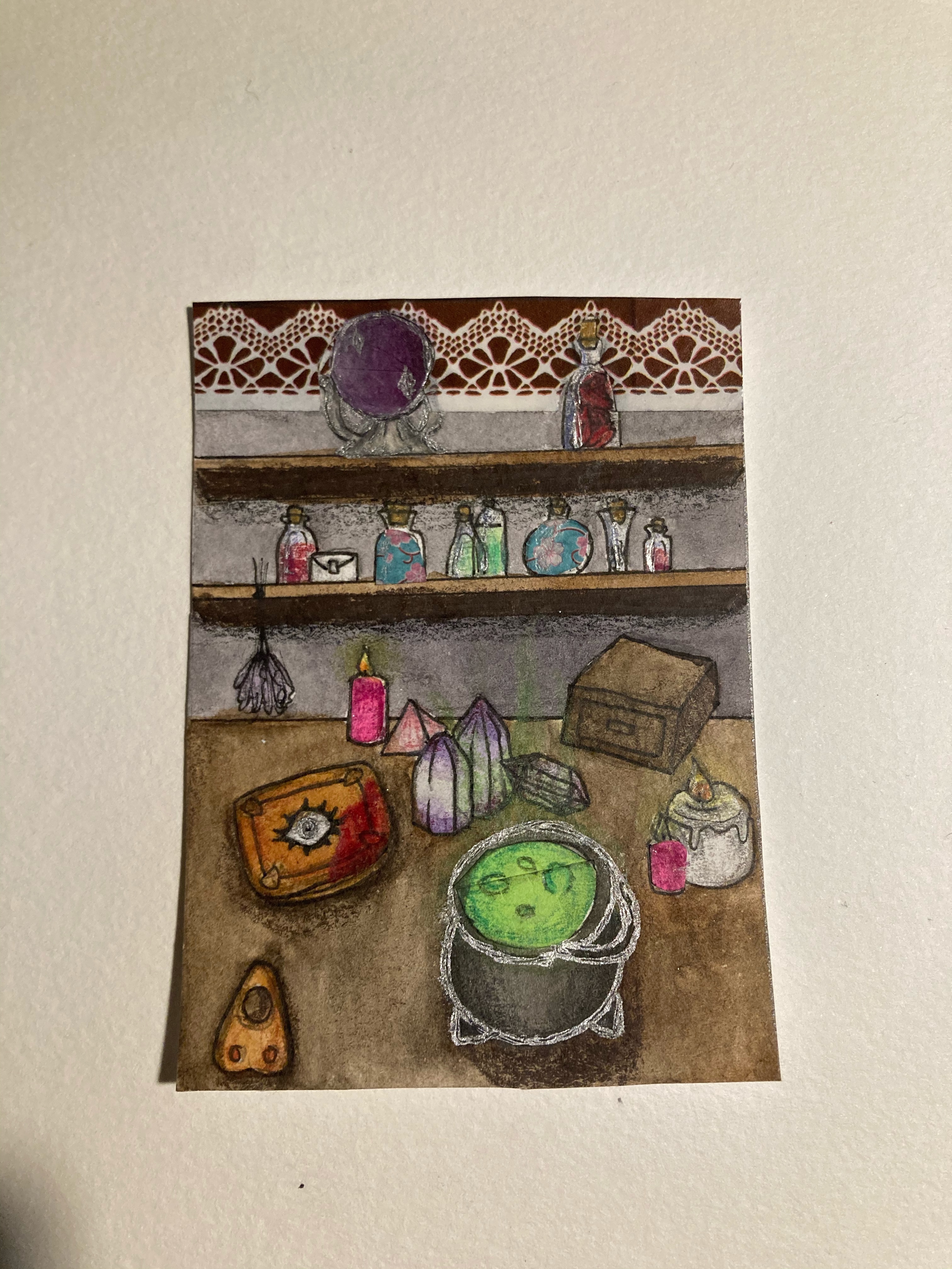 Hier ist meine fertige Witch-table Karte <3 Die Weihnachtsbaum Karte mochte ich nicht, dewegen werde ich mir für meine 2. Karte etwas neues einfallen lassen XD Ist die Karte so okay? UwU