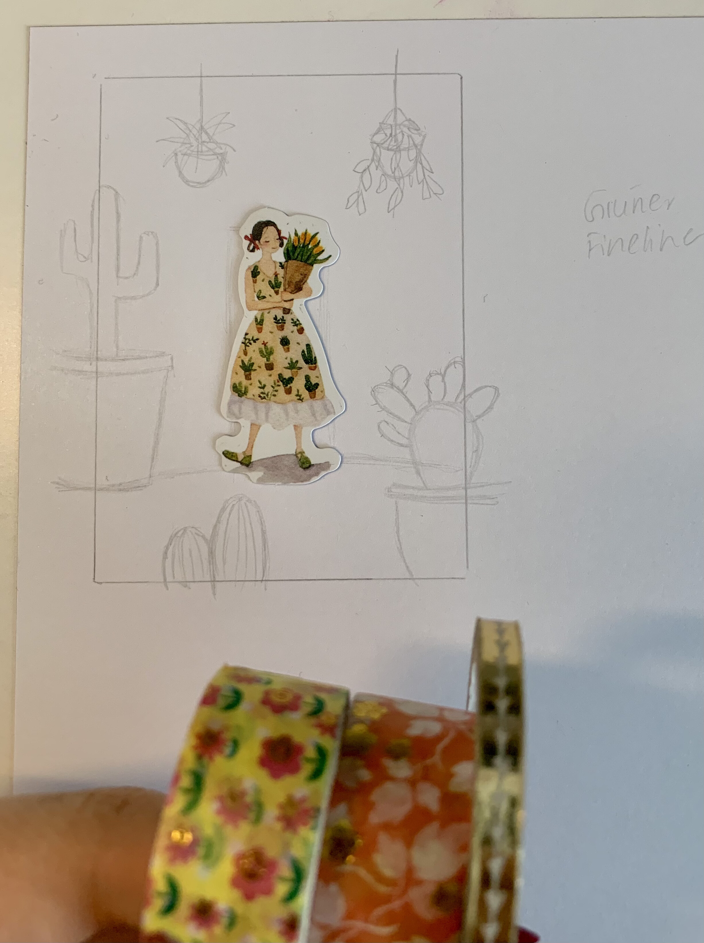 Heute Nachmittag ist mir spontan eine Idee gekommen und ich musste sie einfach direkt umsetzen. Das Mädchen in der Mitte ist eine Art Sticker, welchen ich mal bei einem Tausch bekommen habe. Da ich Kakteen total toll finde ist das Motiv ein wenig in die Richtung gegangen. Verwendet habe ich 3 Washi-Tapes. Ich hoffe sie ist okay so?