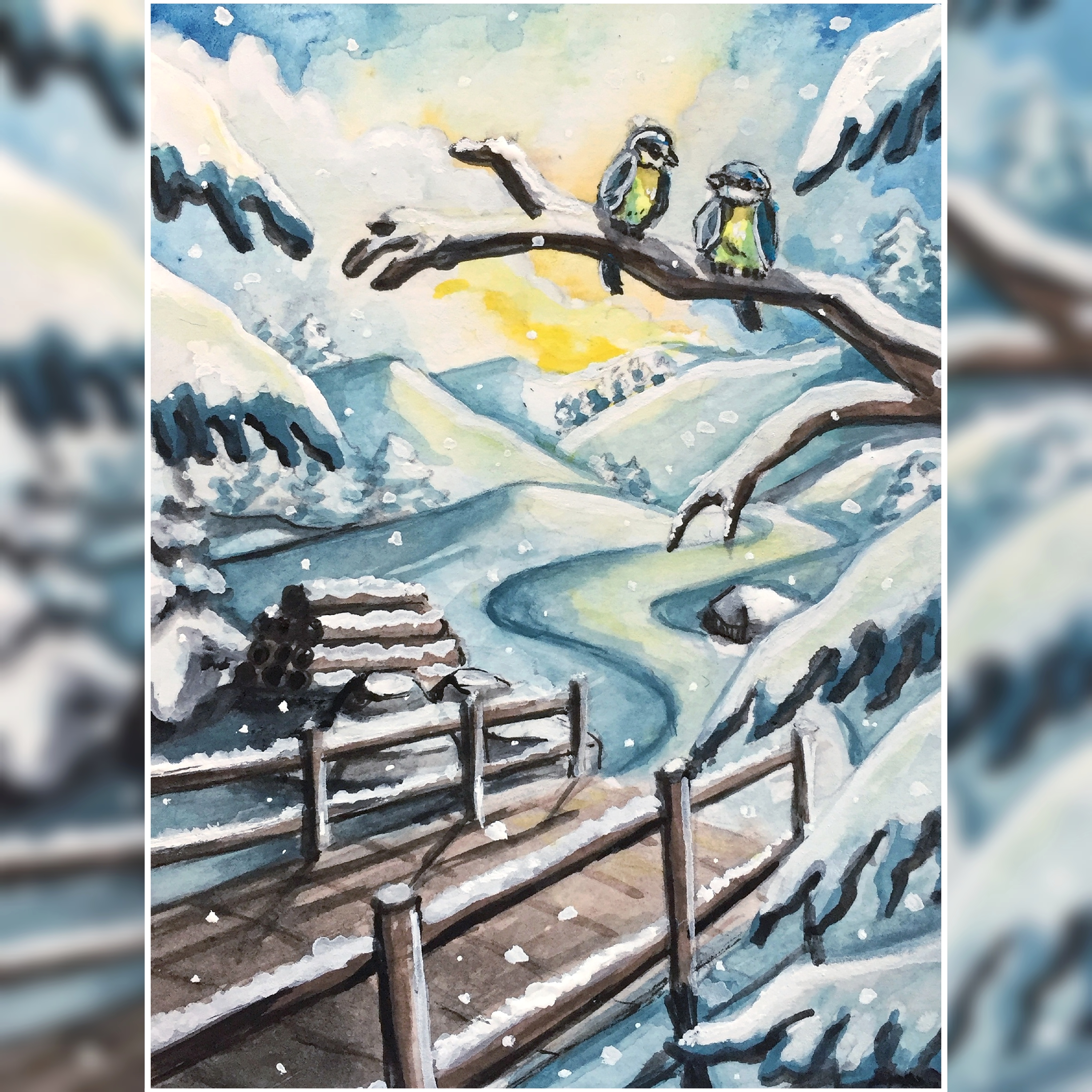 Die Winterlandschaft ist eher minimalistisch, aber ich musste sie einfach malen. Ich liebe es durch Schneelandschaften spazieren zu gehen.