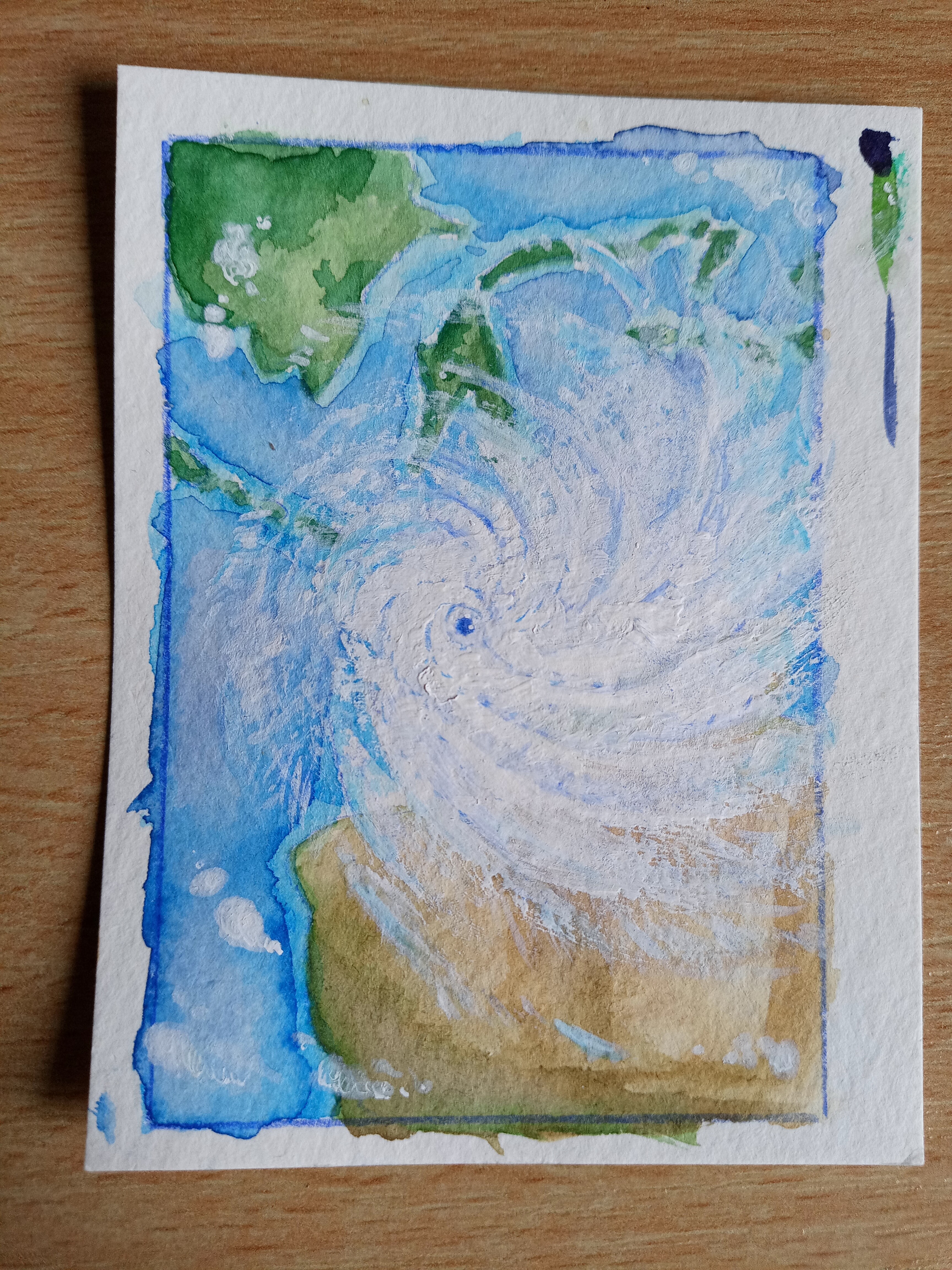 und ein riesiger Willy-Willy über einem Zipfel von Australien und Indonesien, wo ich evtl. noch einen Wettermenschen davor stellen wollte. Breaking News Style. War auch super interessant den Wirbelsturm so zu malen. ^-^