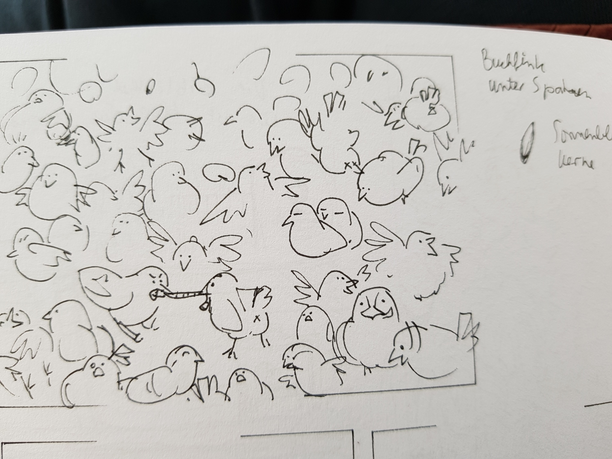 Bibliothek und Buch XYZ ist irgendwo versteckt… Spatzentrupp und dazwischen ein Buchfink (oder anderer Vogel)