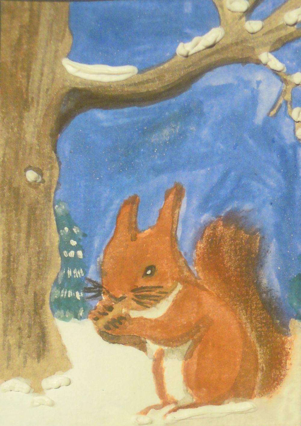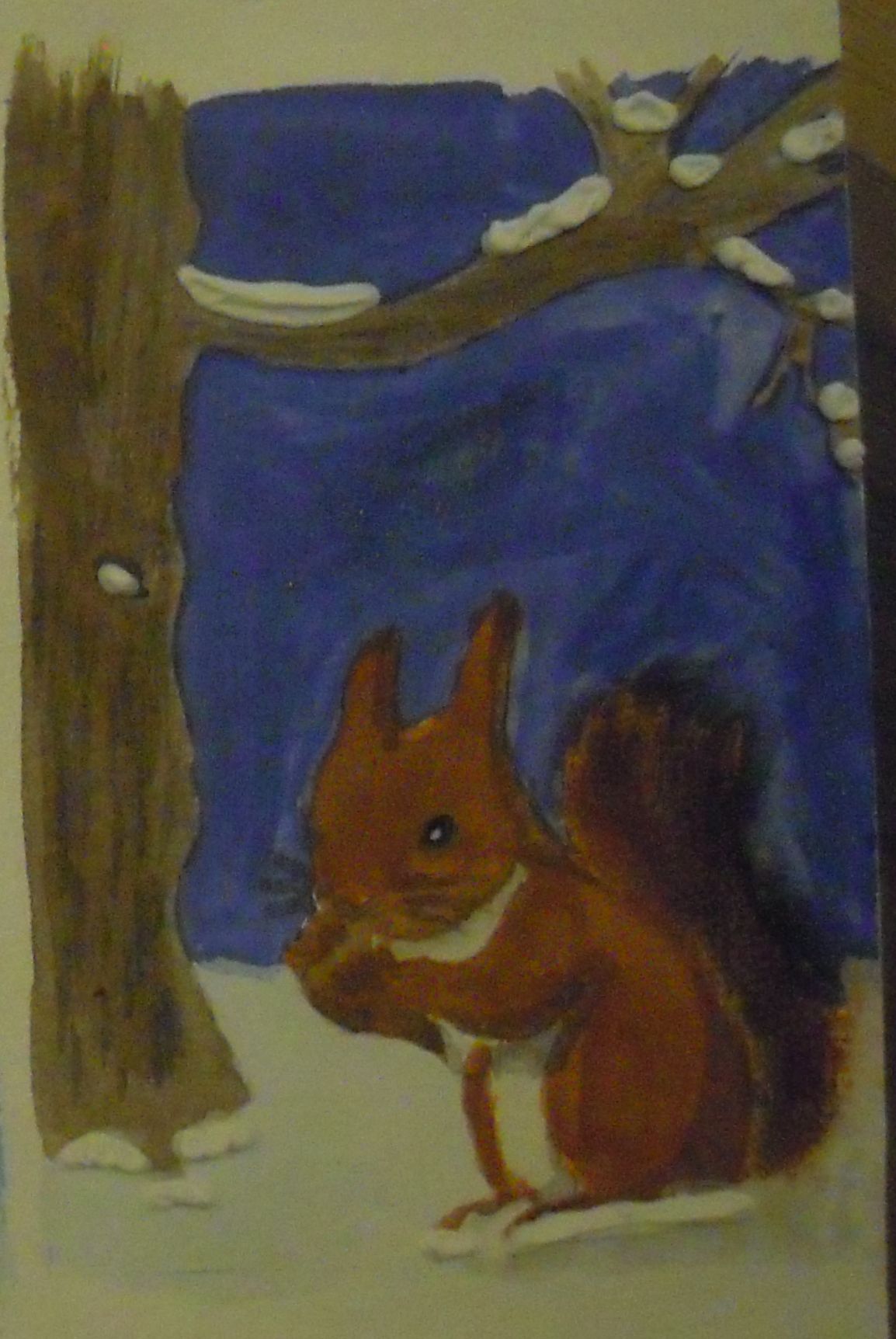 ich könnte mir bei dem Eichhörnchen noch ein paar angedeutete kahle Baumsilhouetten im Hintergrund vorstellen. Momentan wirkt der Hintergrund sehr schneefrei und leer bis auf den schneebedeckten Tannenbaum links.
